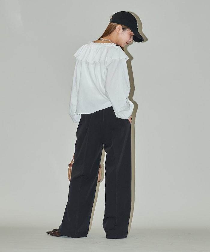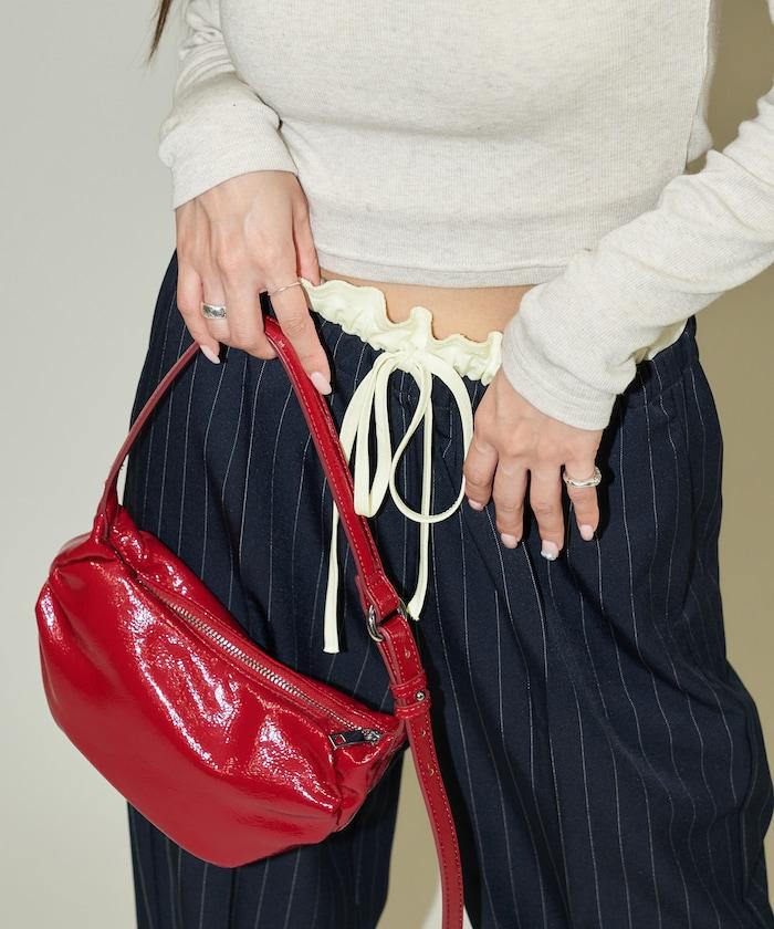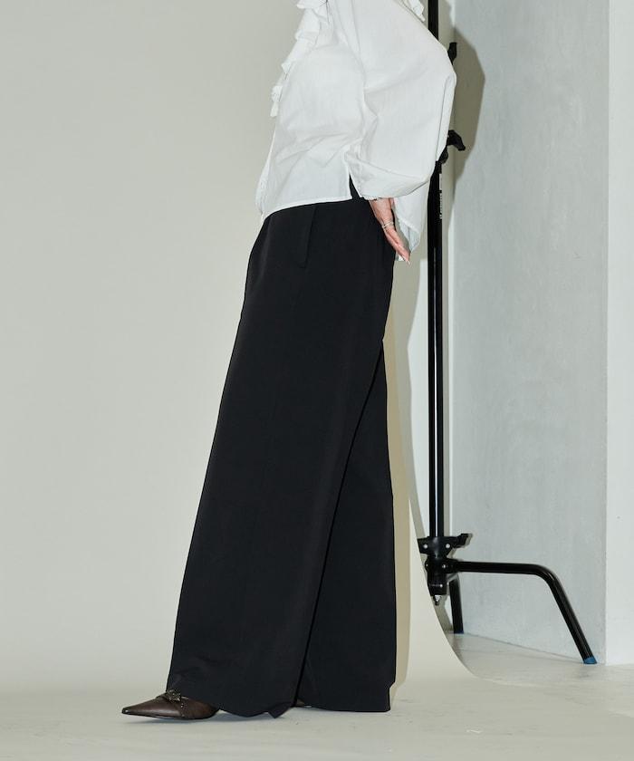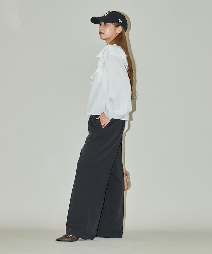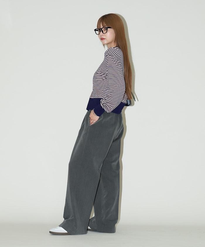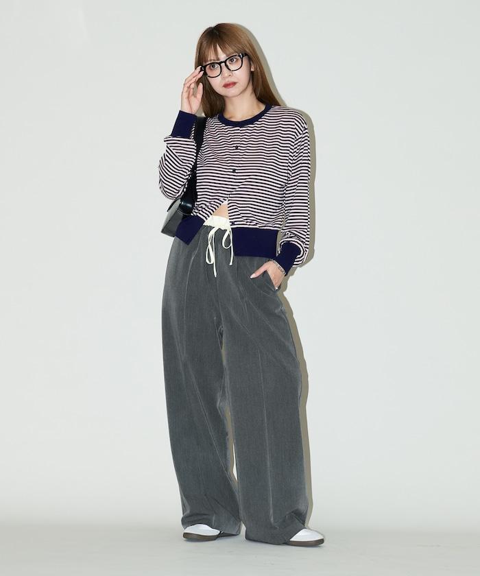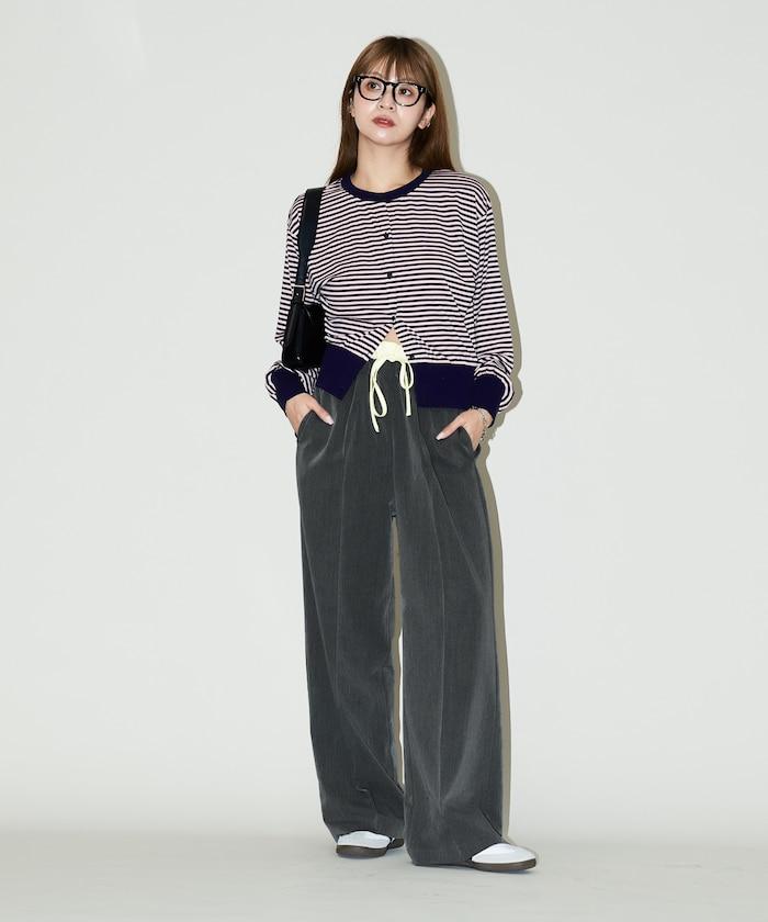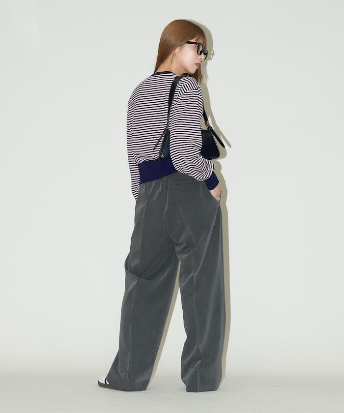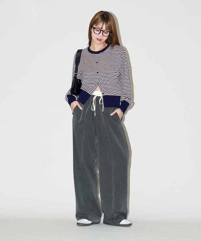 腰部收褶拼接休閒西褲褲子