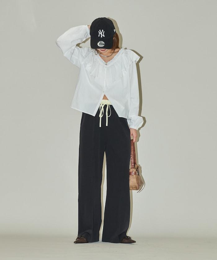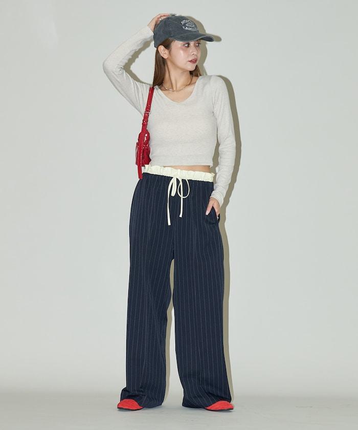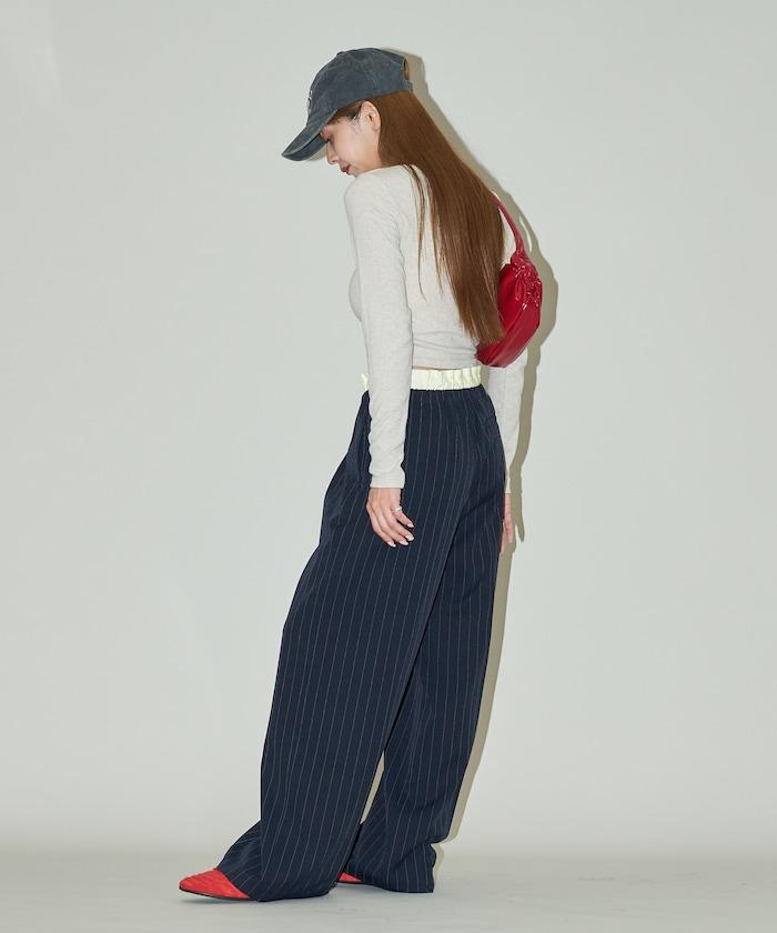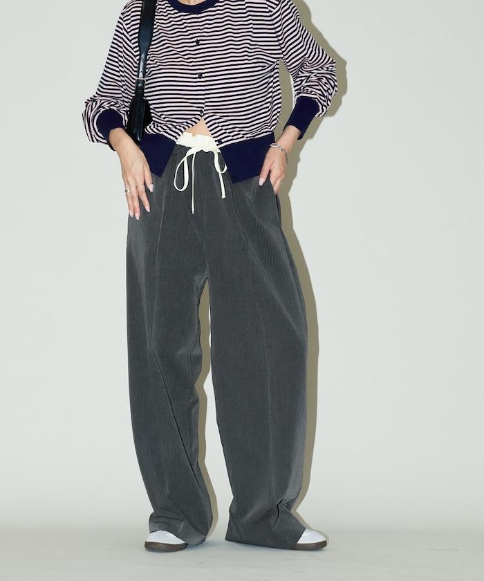 雙腰設計的簡便褲子。