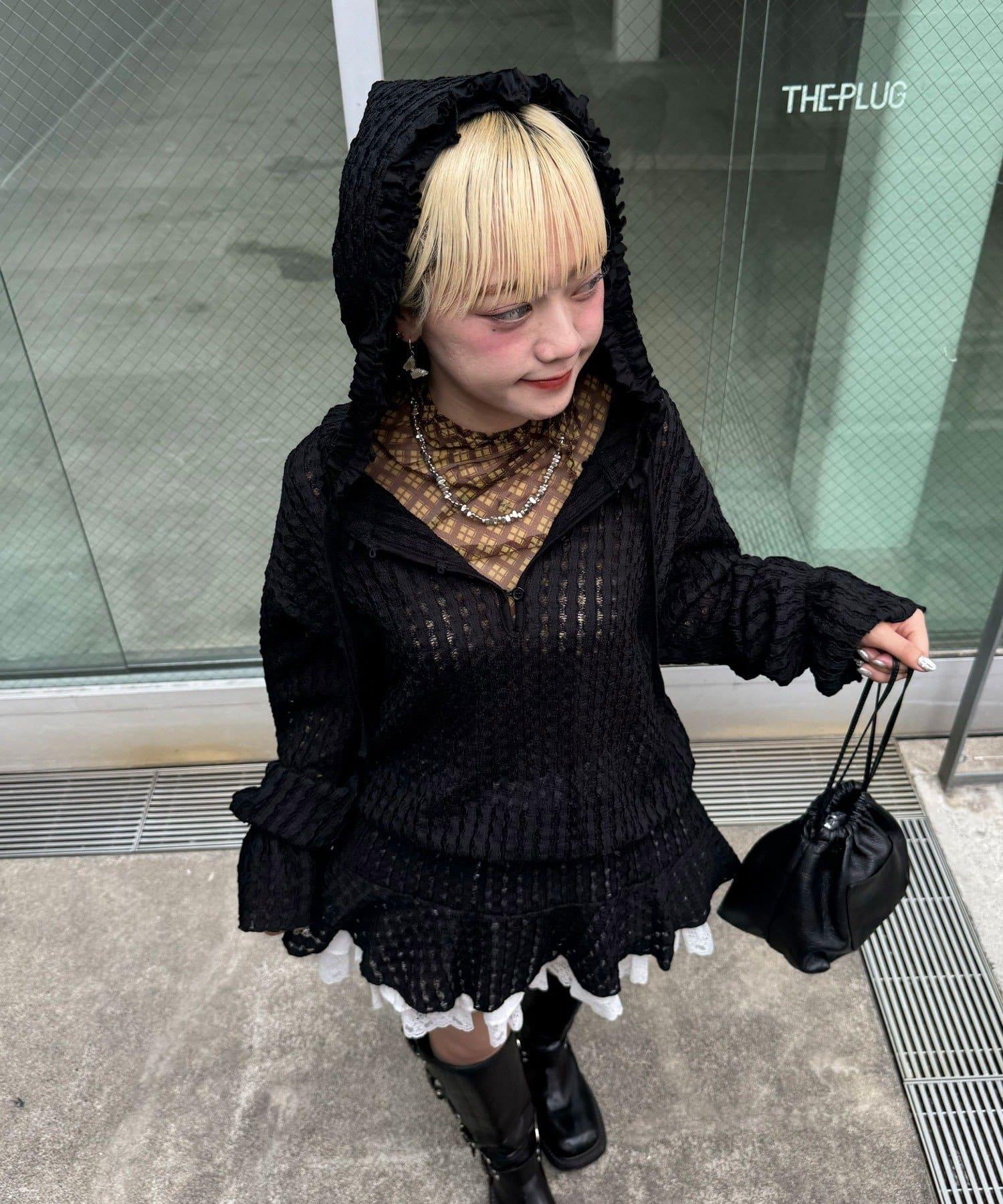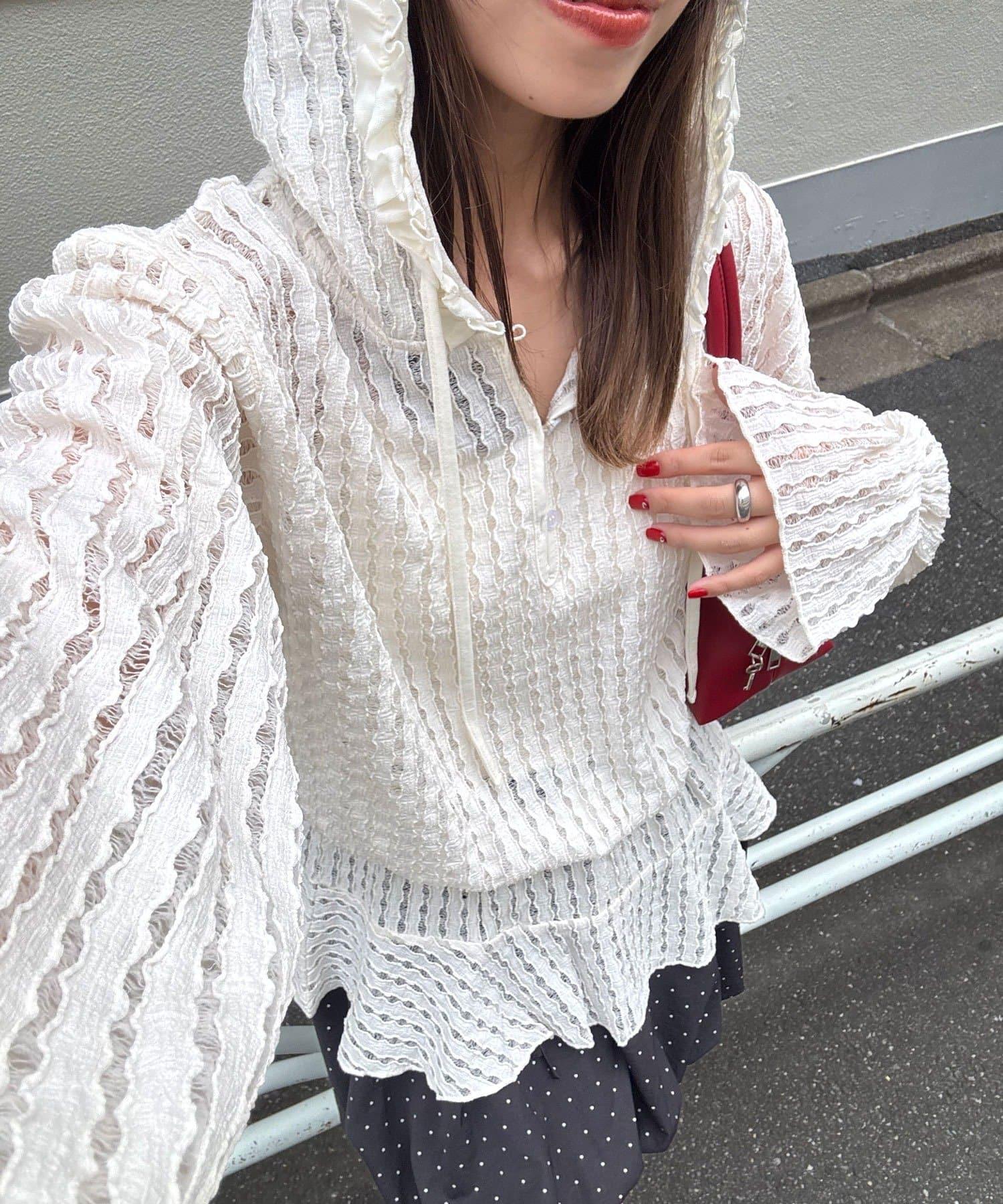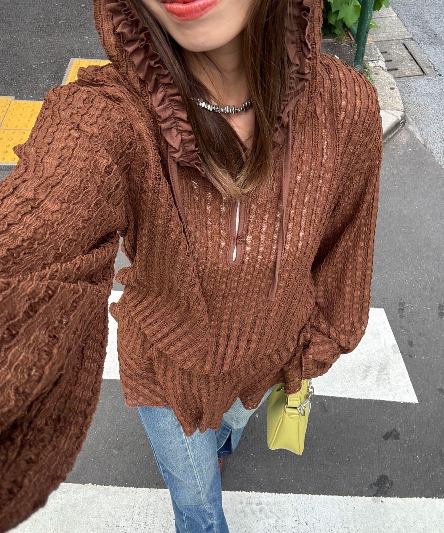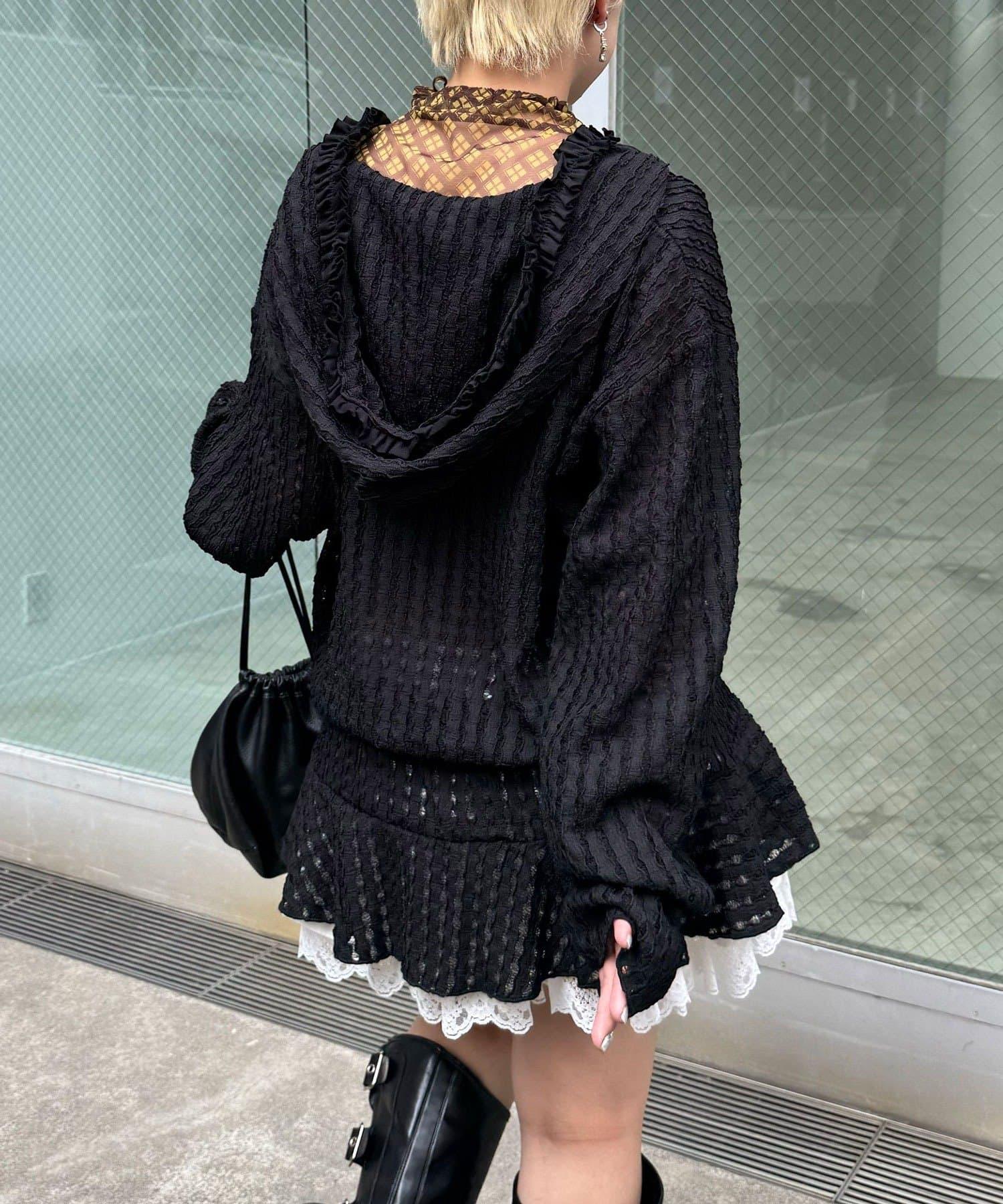 連帽衫腰部收緊,袖子蓬鬆,平衡精緻。