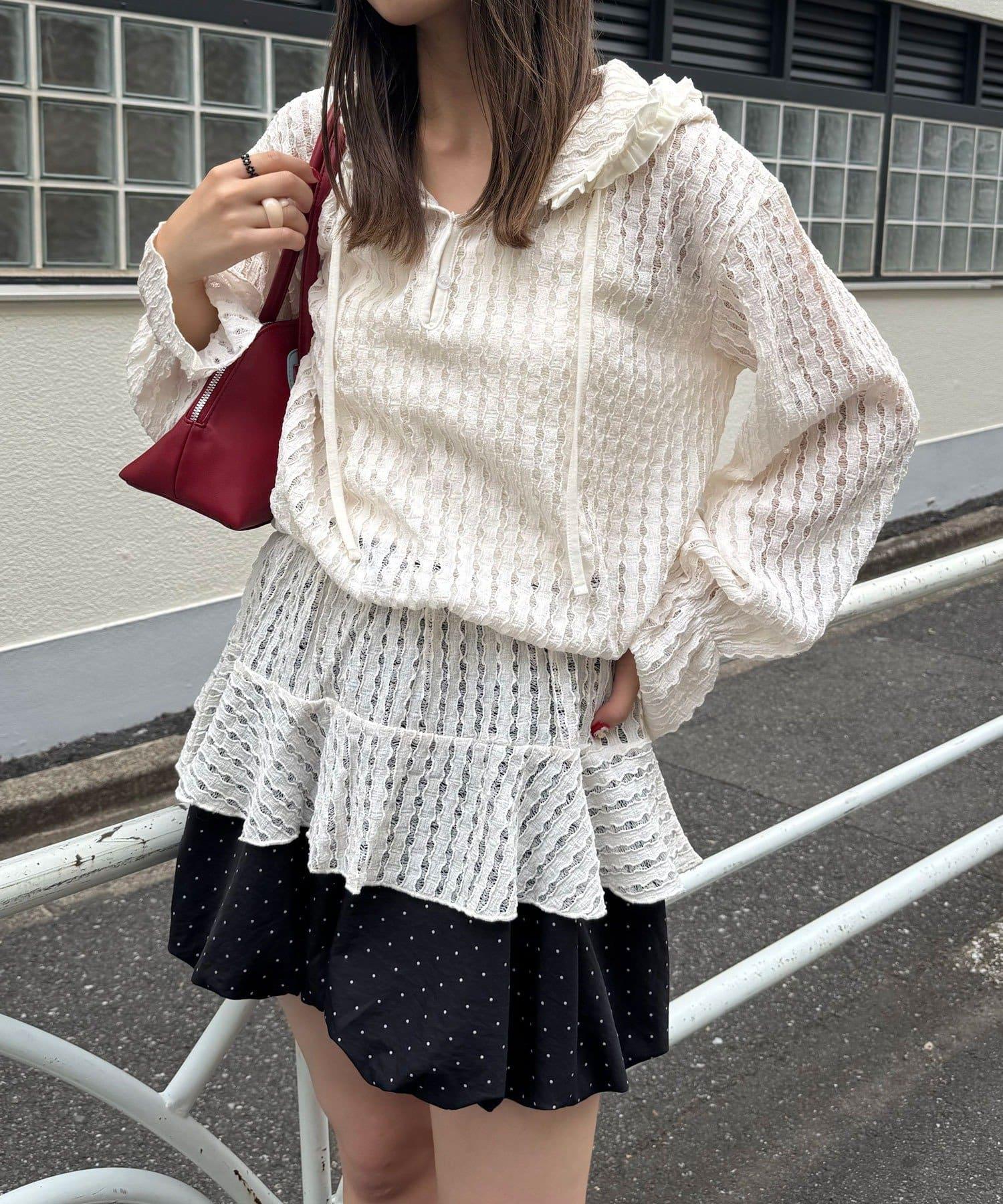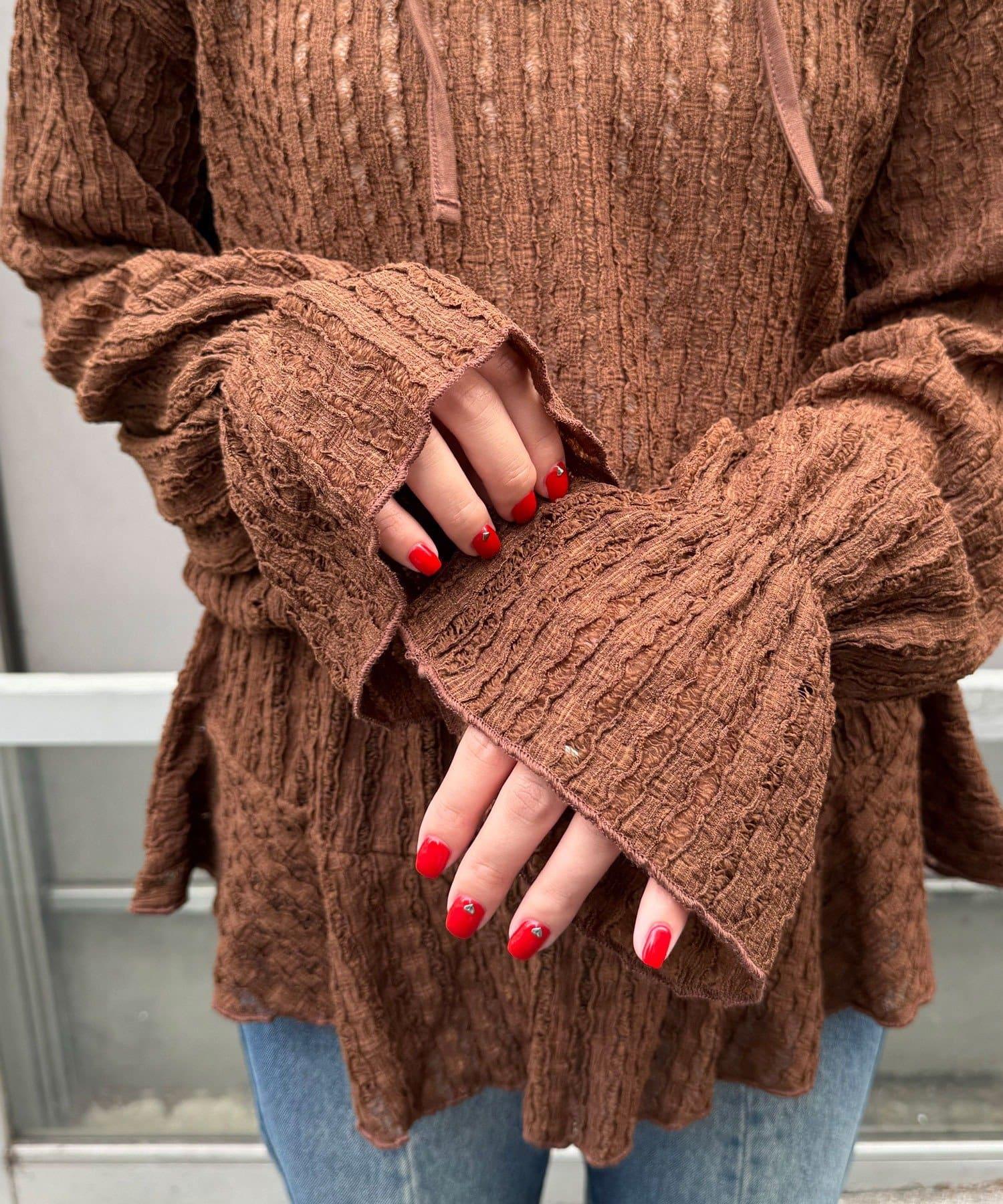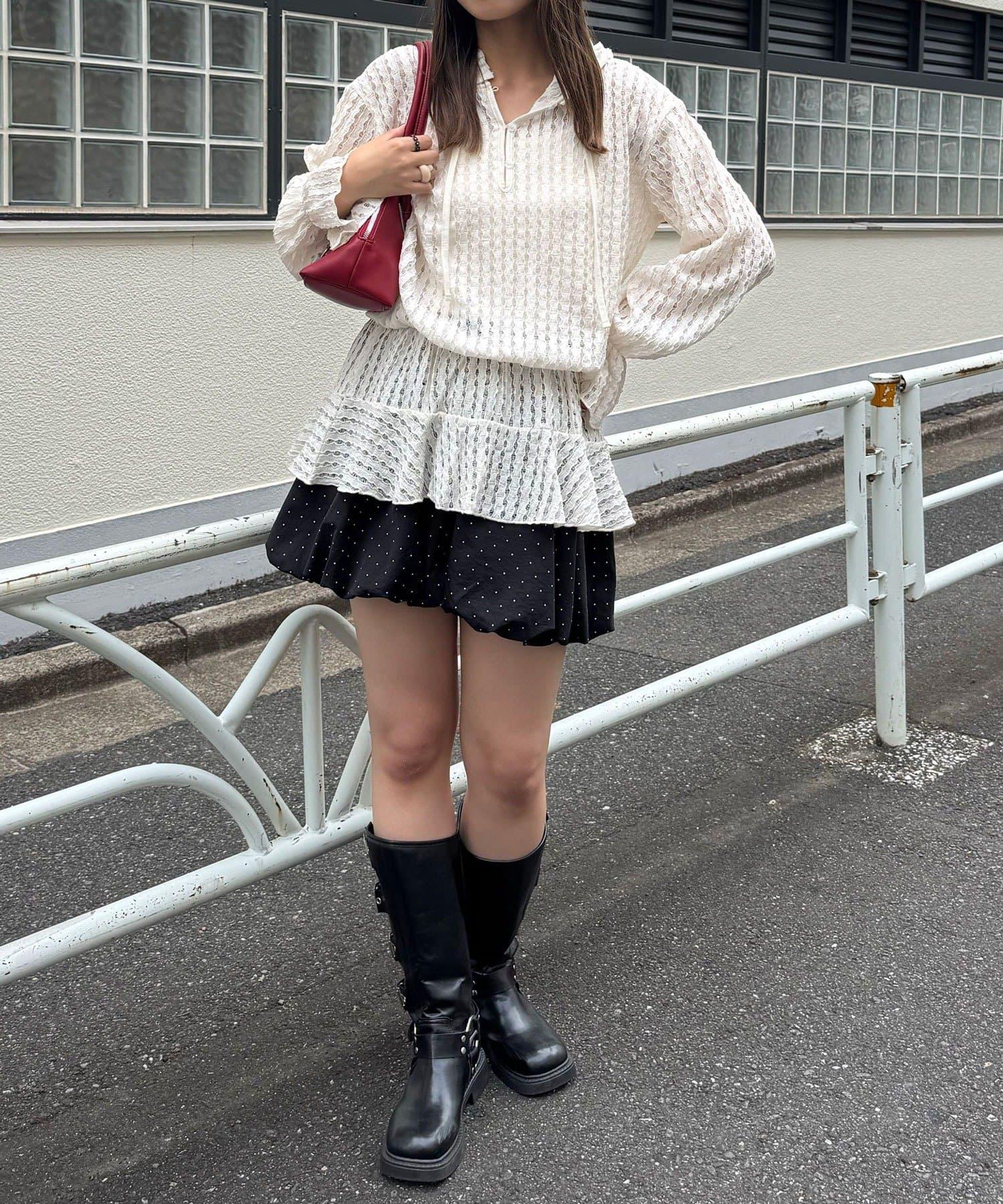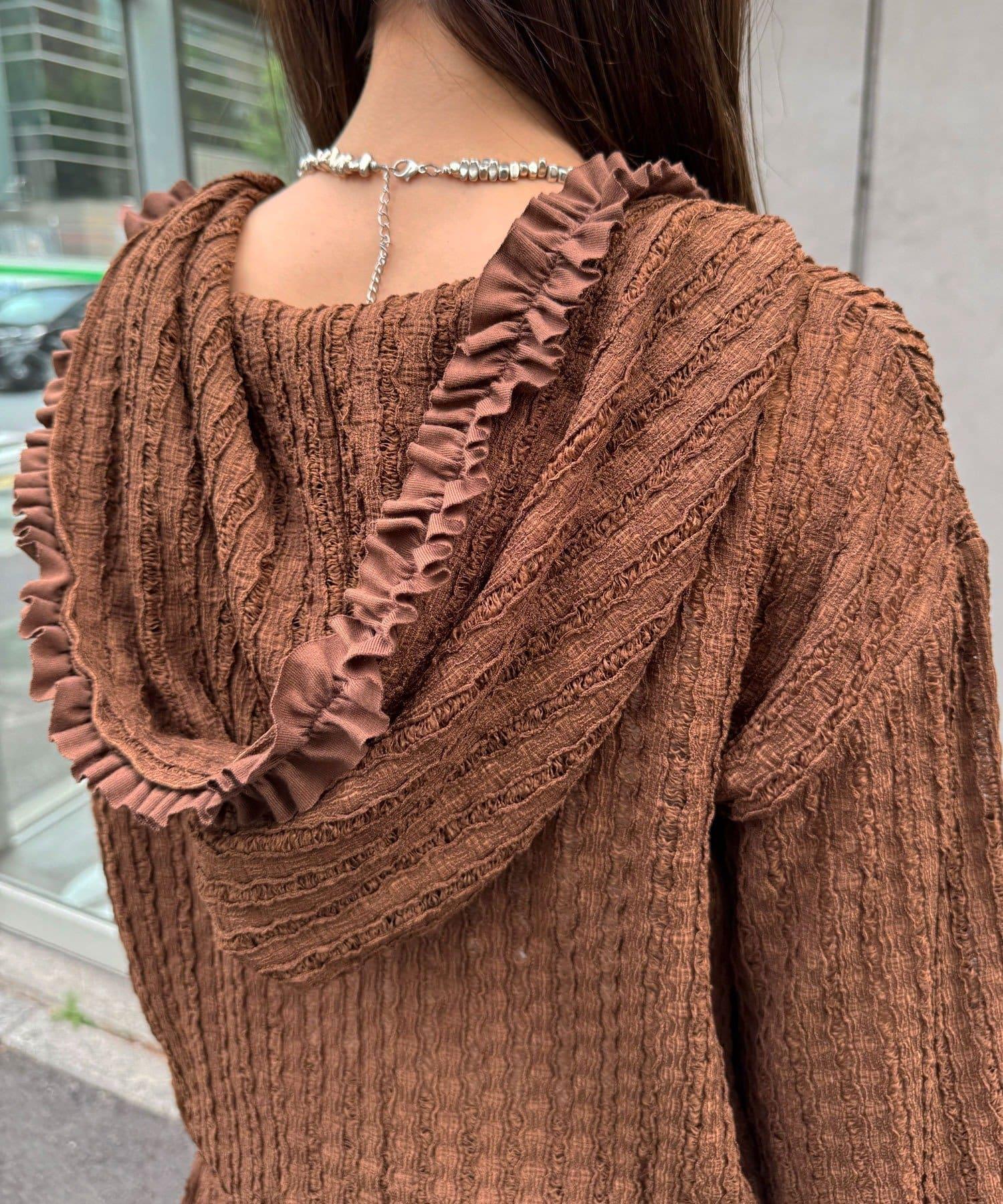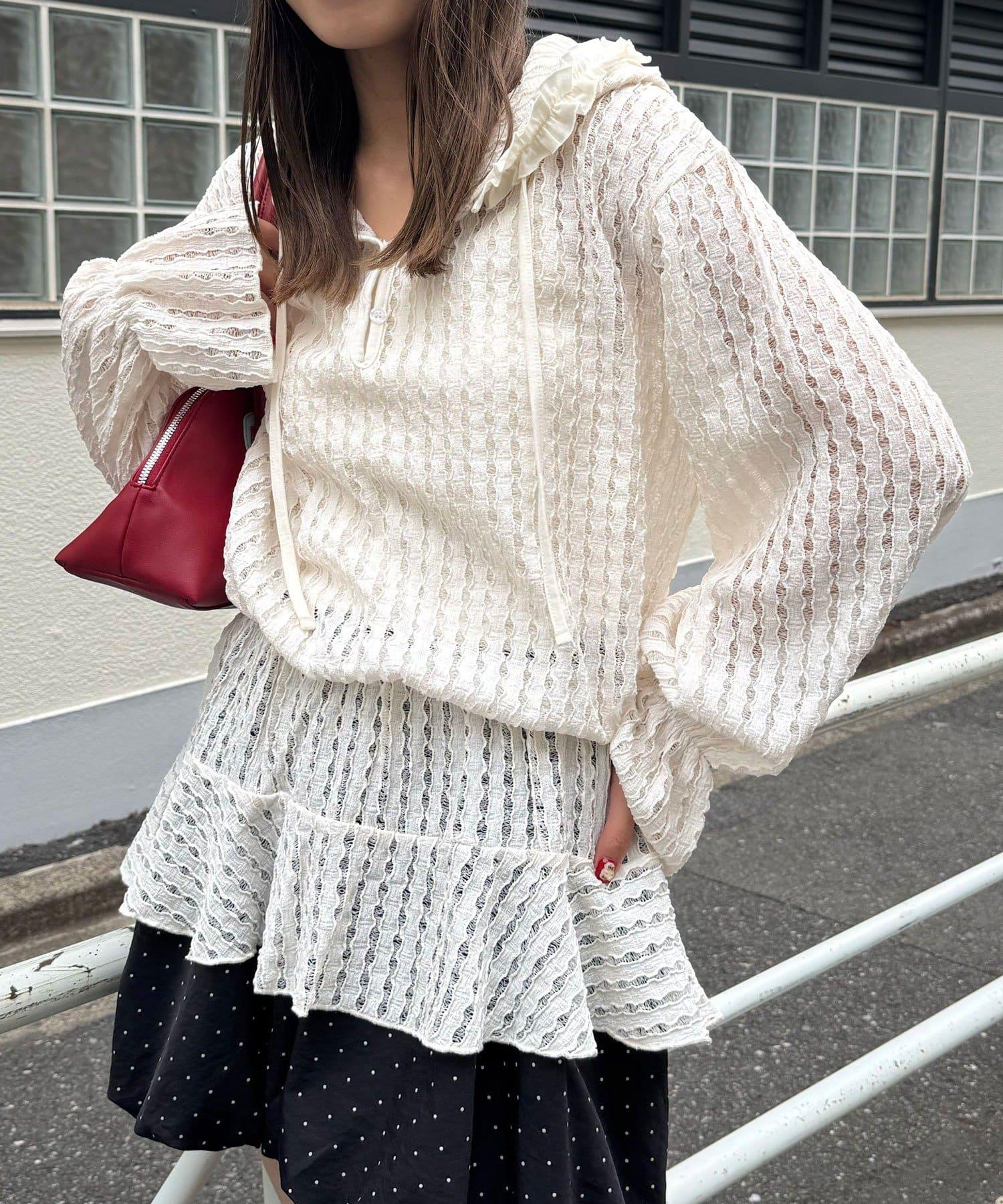 連帽衫腰部收緊,袖子蓬鬆,平衡精緻。
