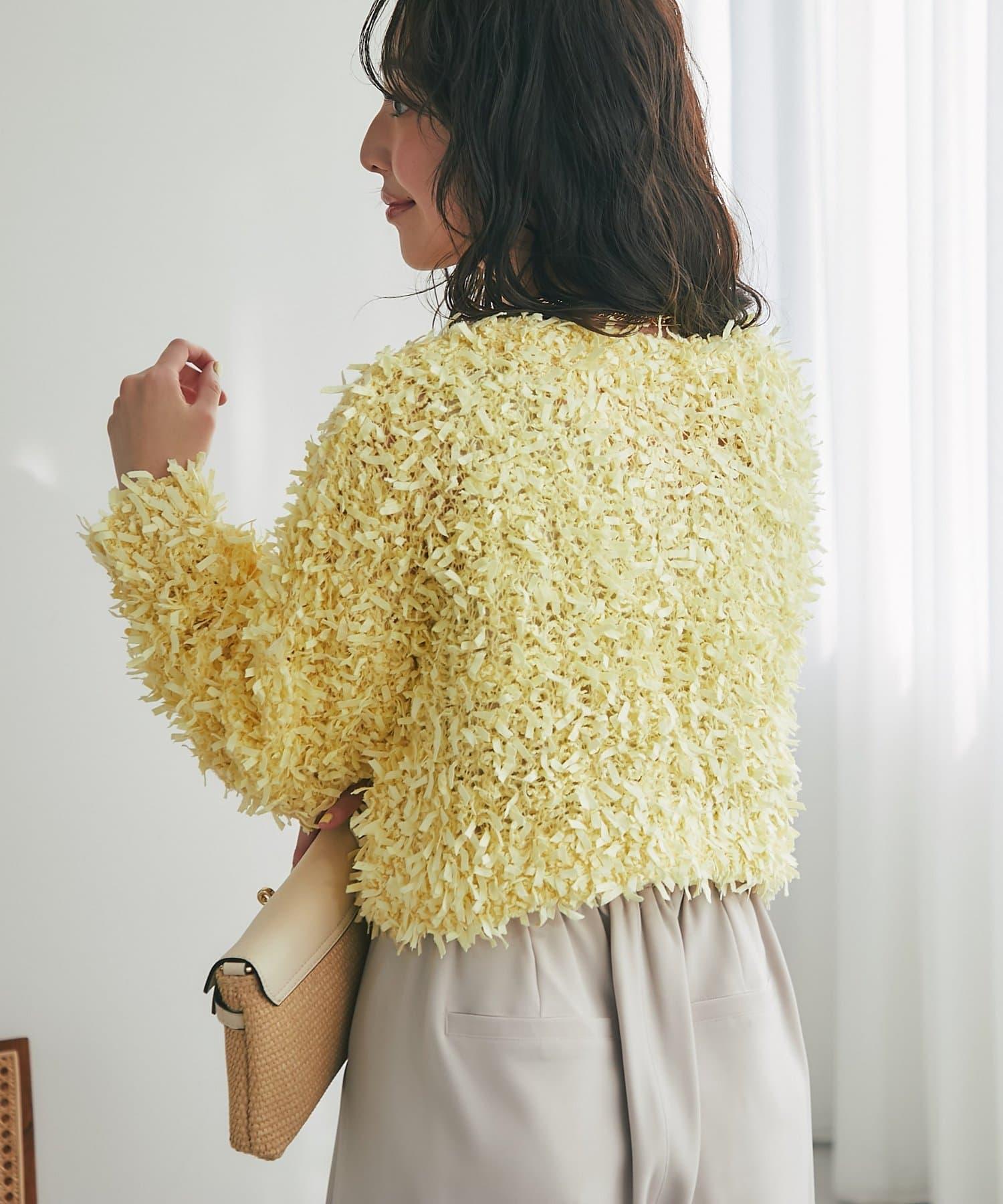 這款雙向開衫擁有膠帶紗獨有的引人注目的立體外觀。