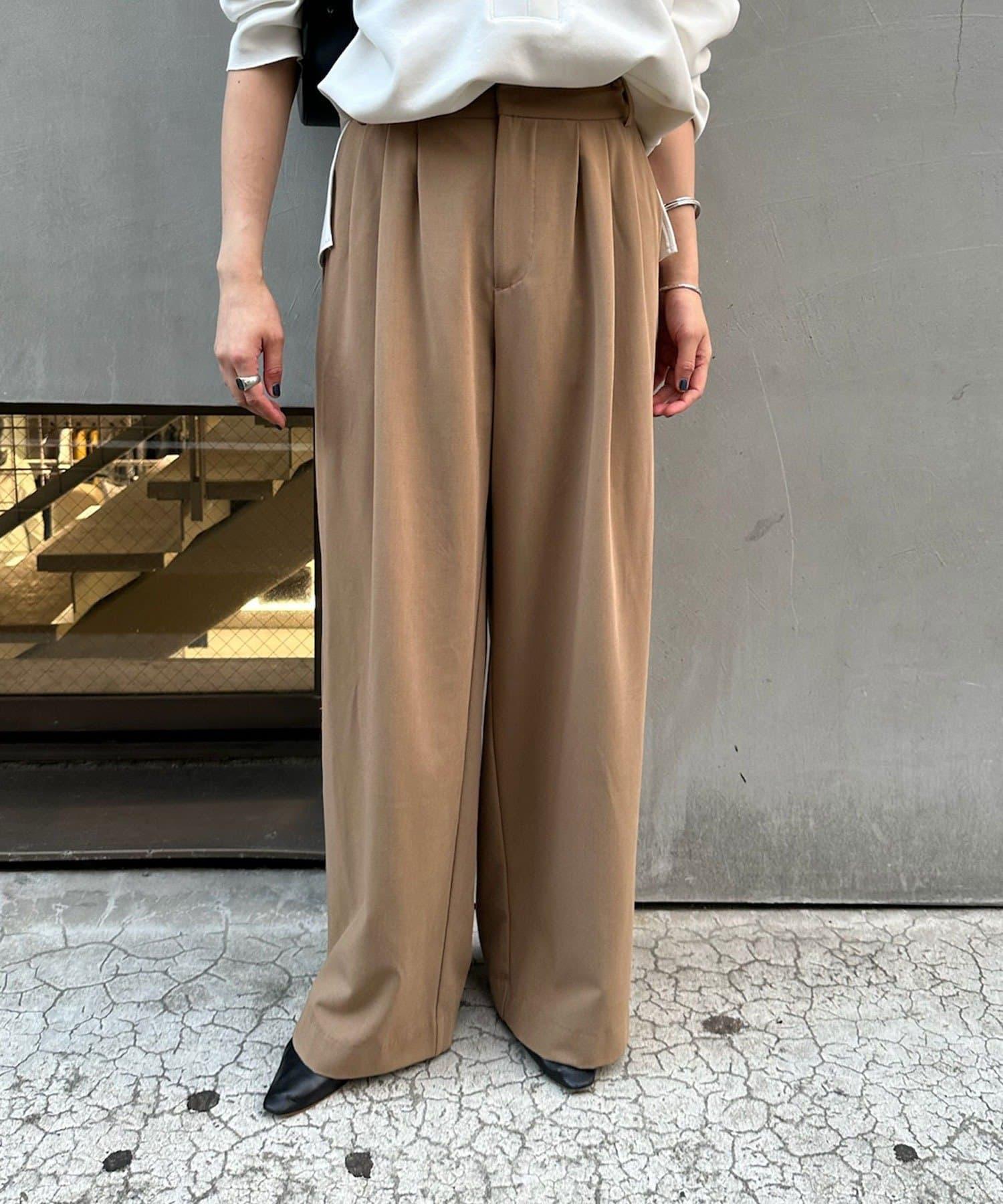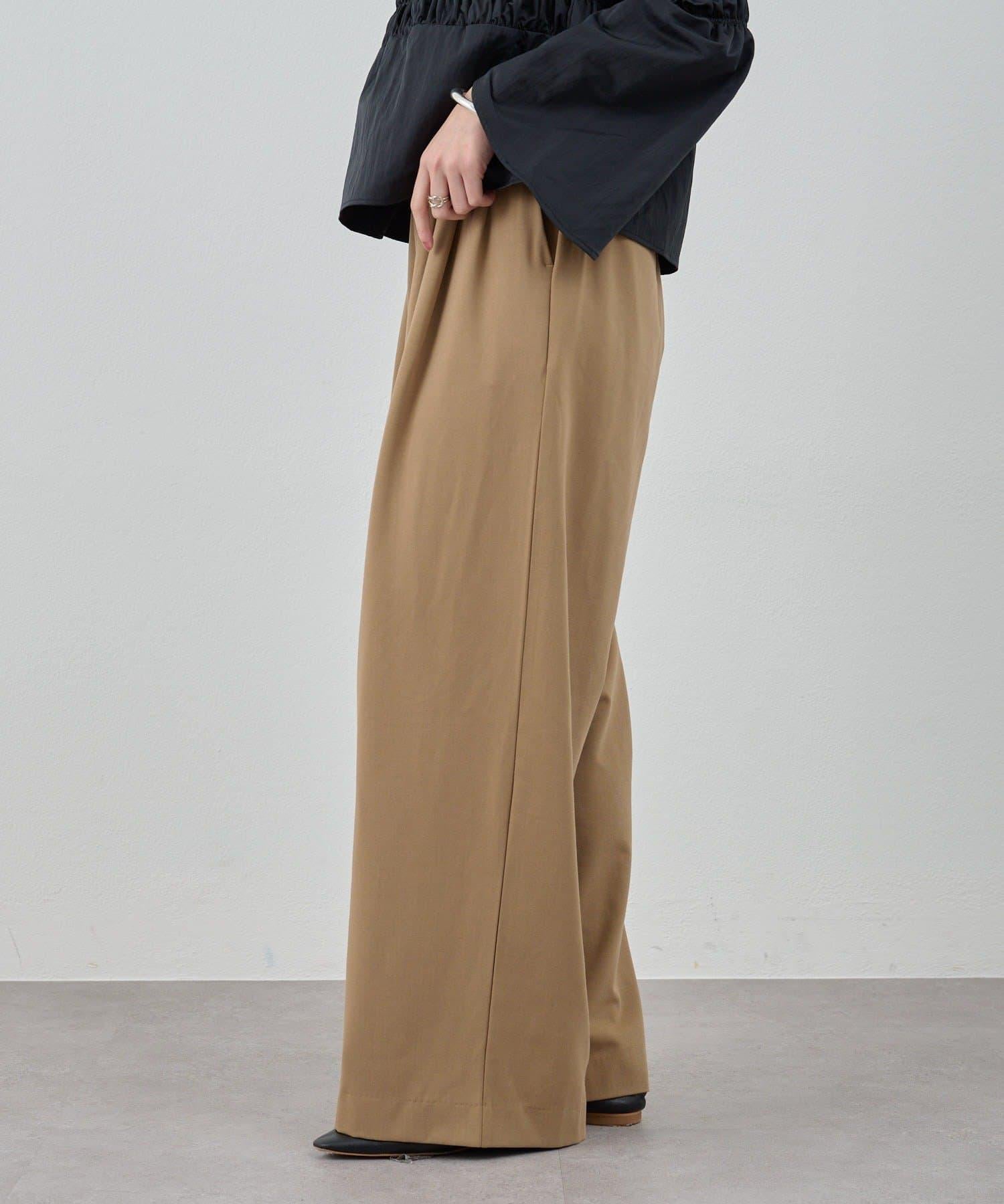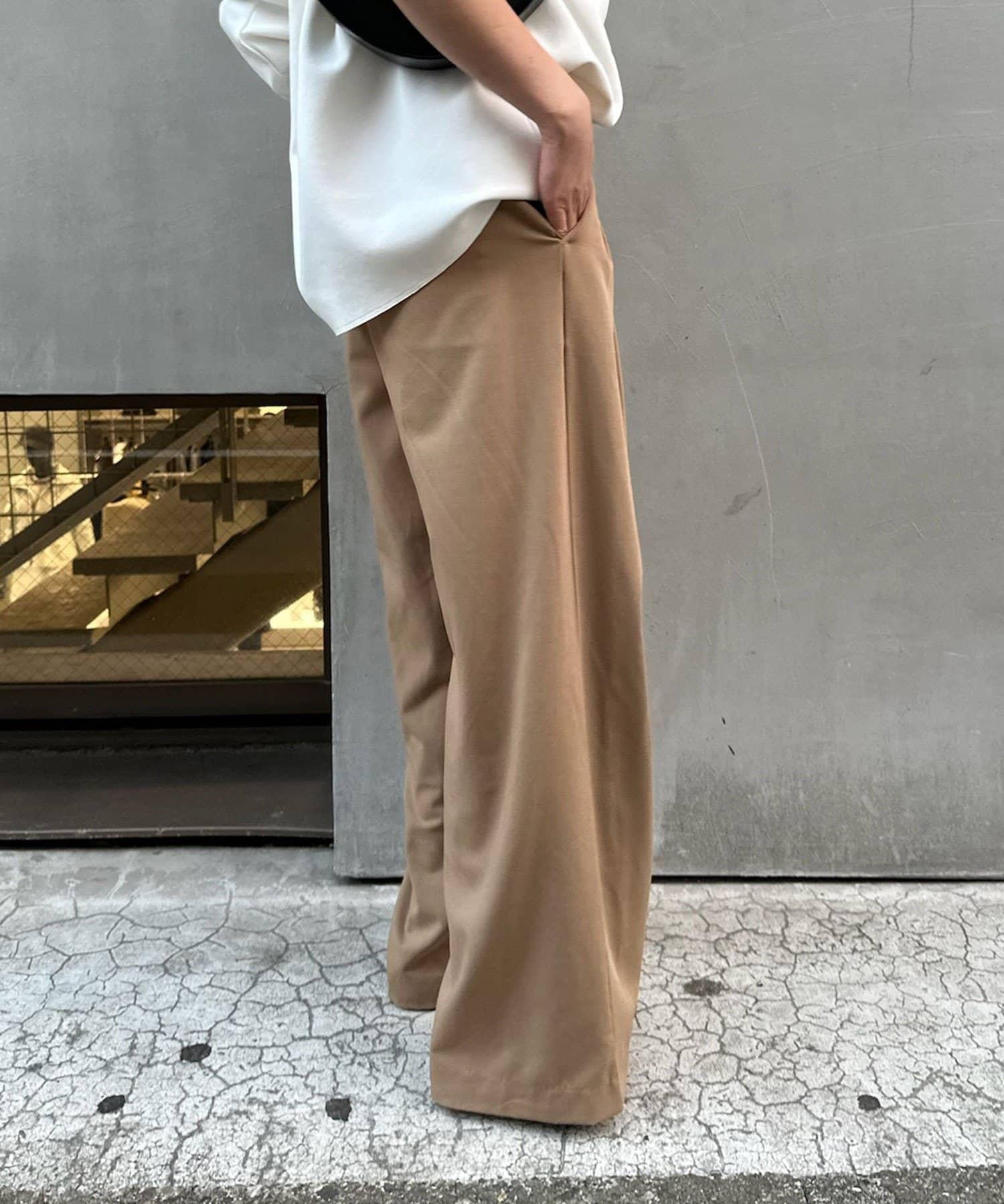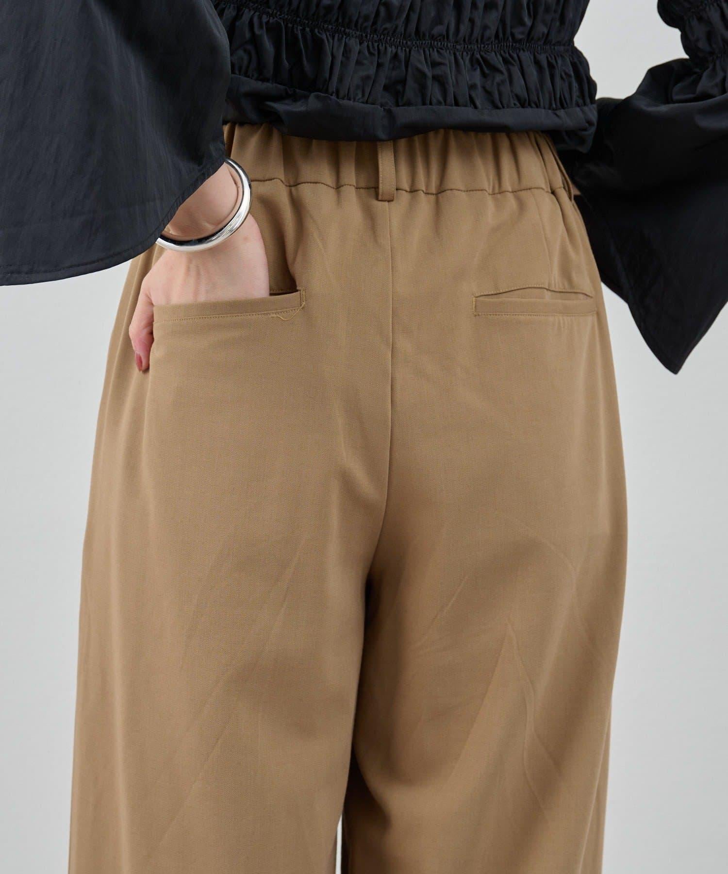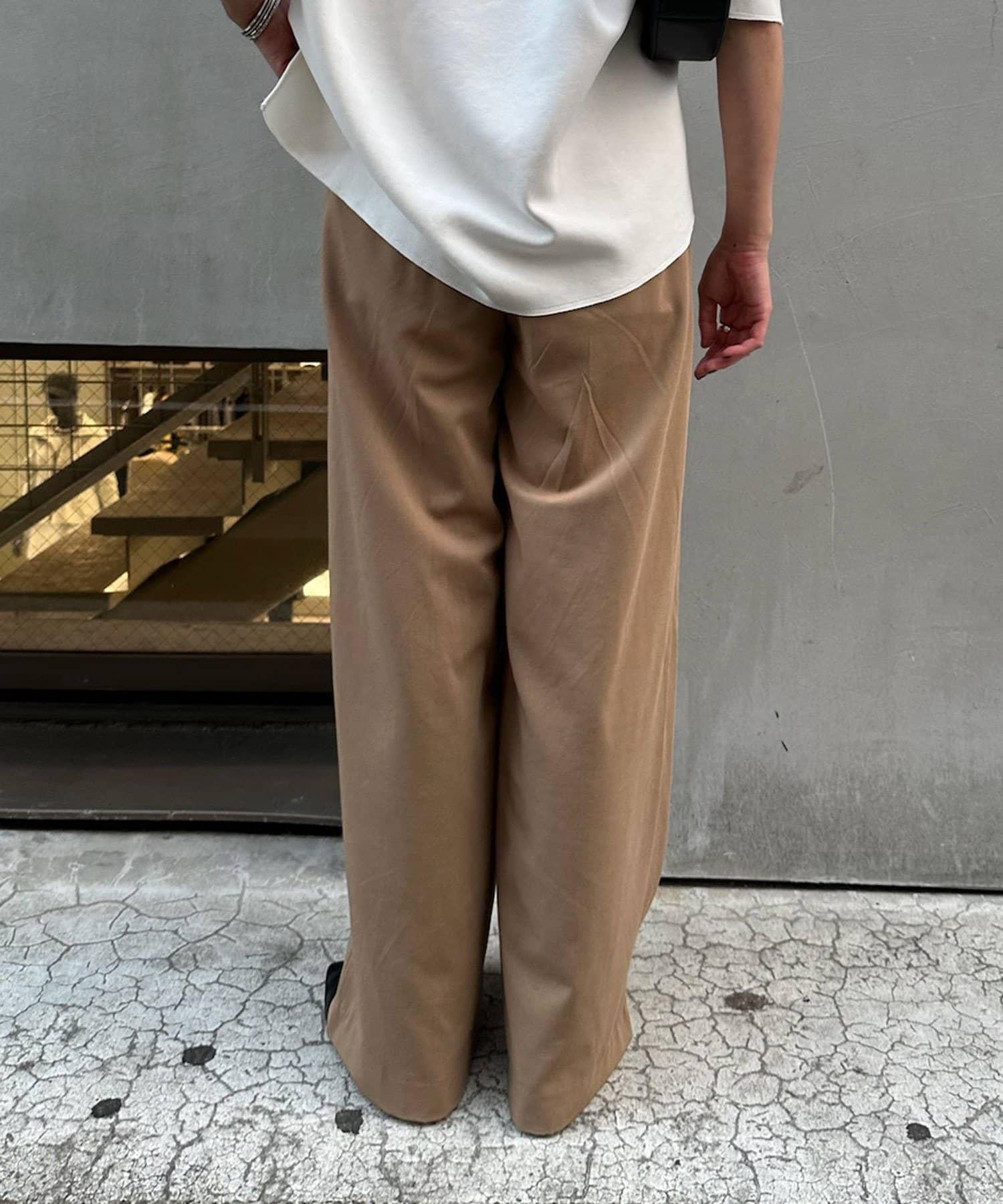 很好地遮住腰部。具有美腿效果的褶襉長褲。