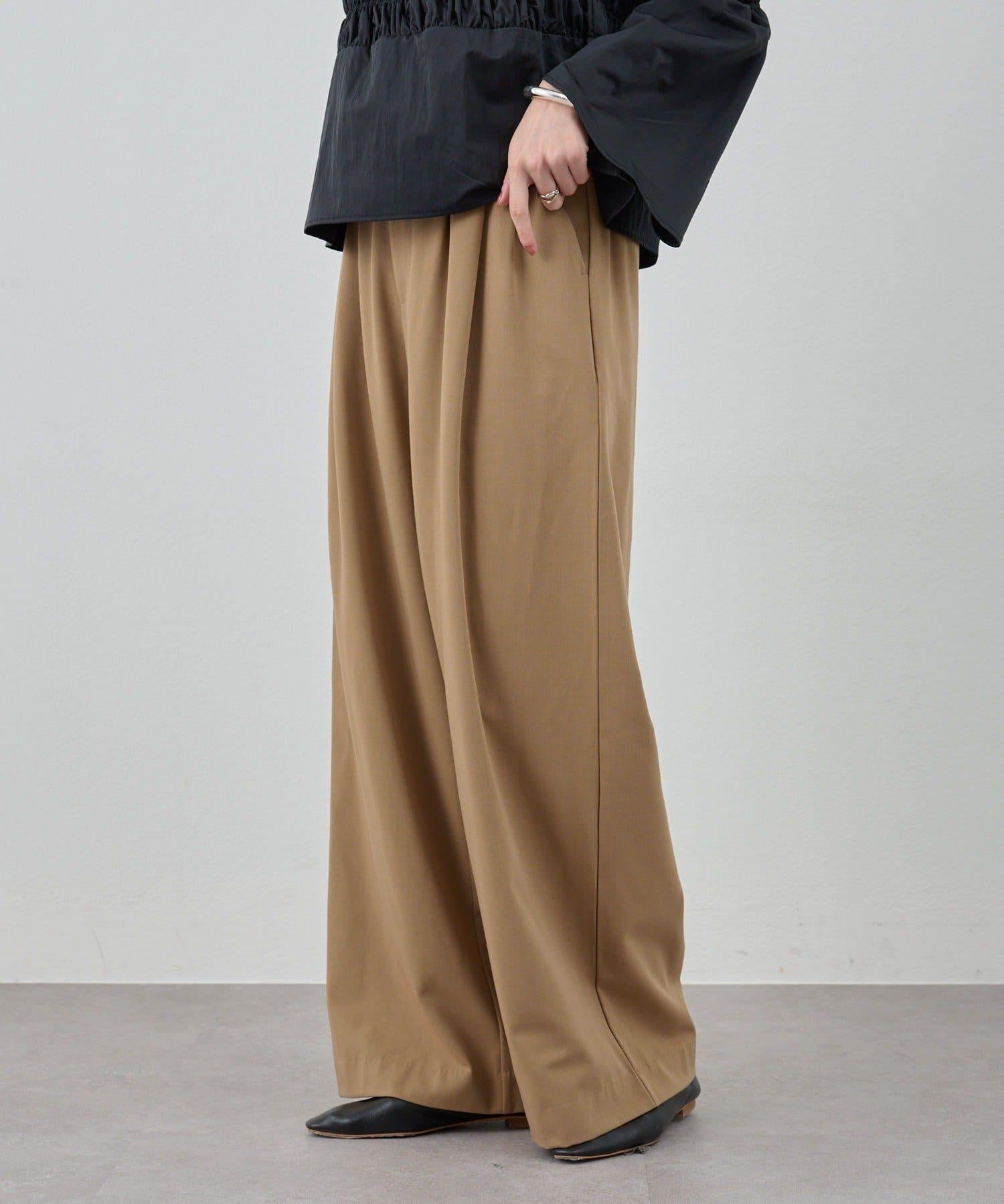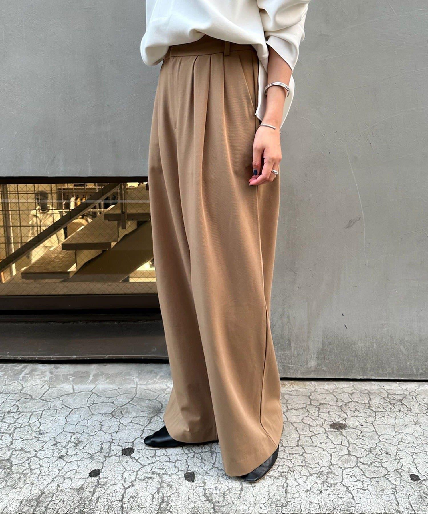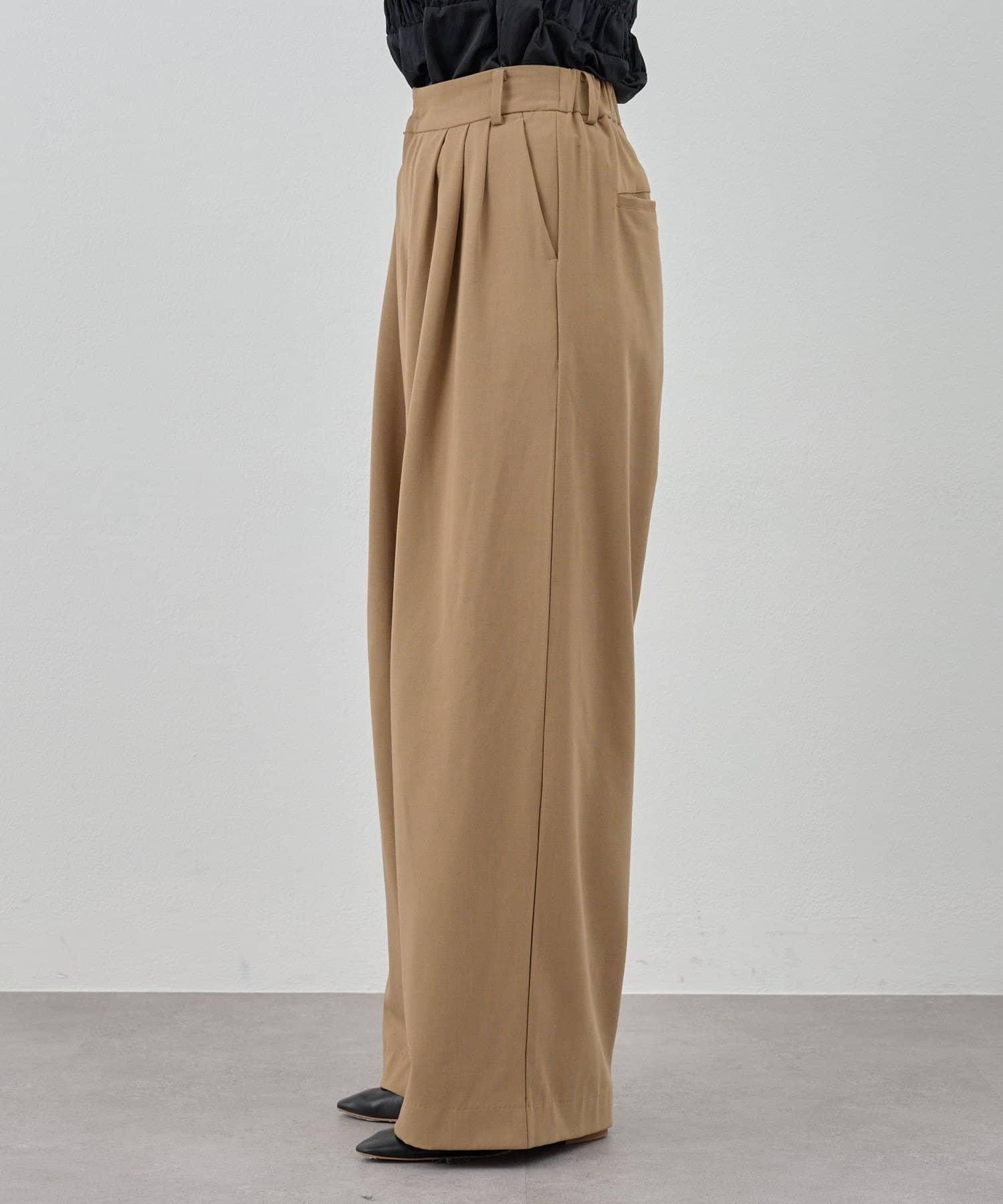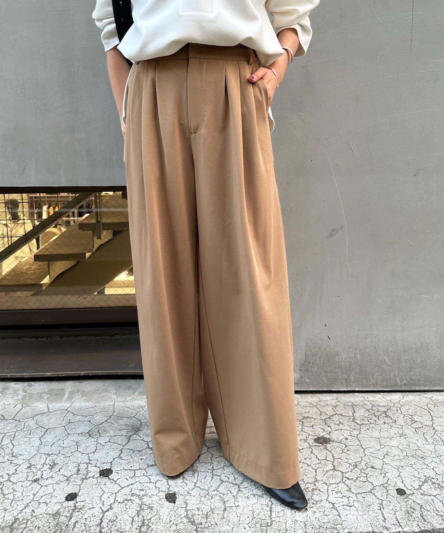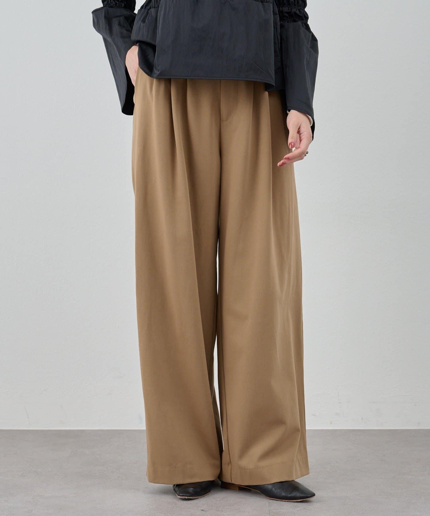 很好地遮住腰部。具有美腿效果的褶襉長褲。