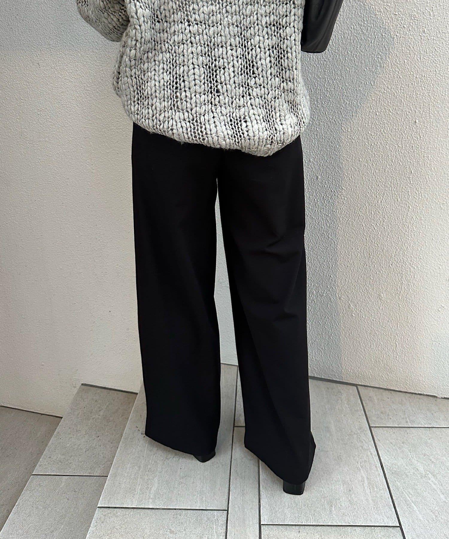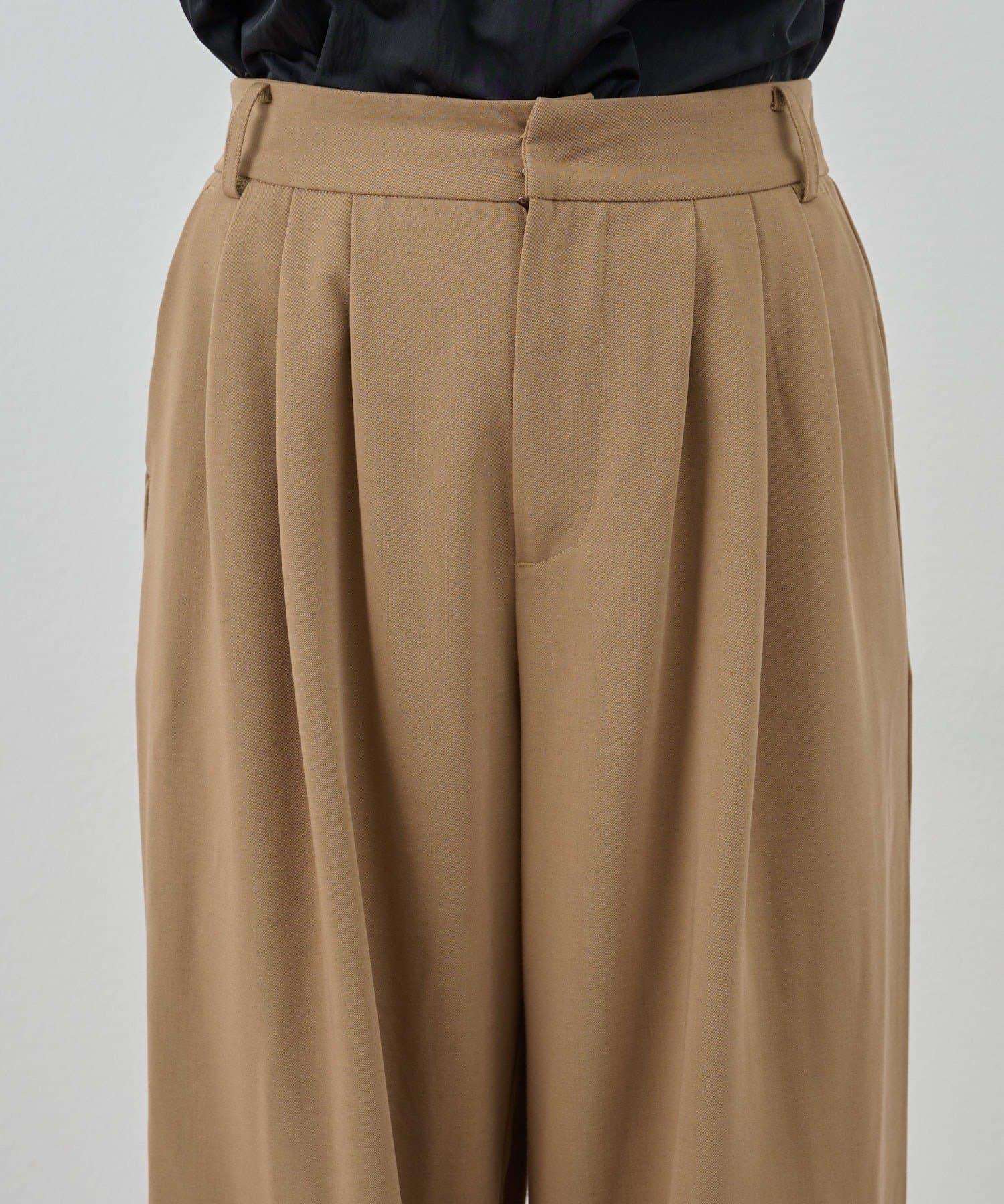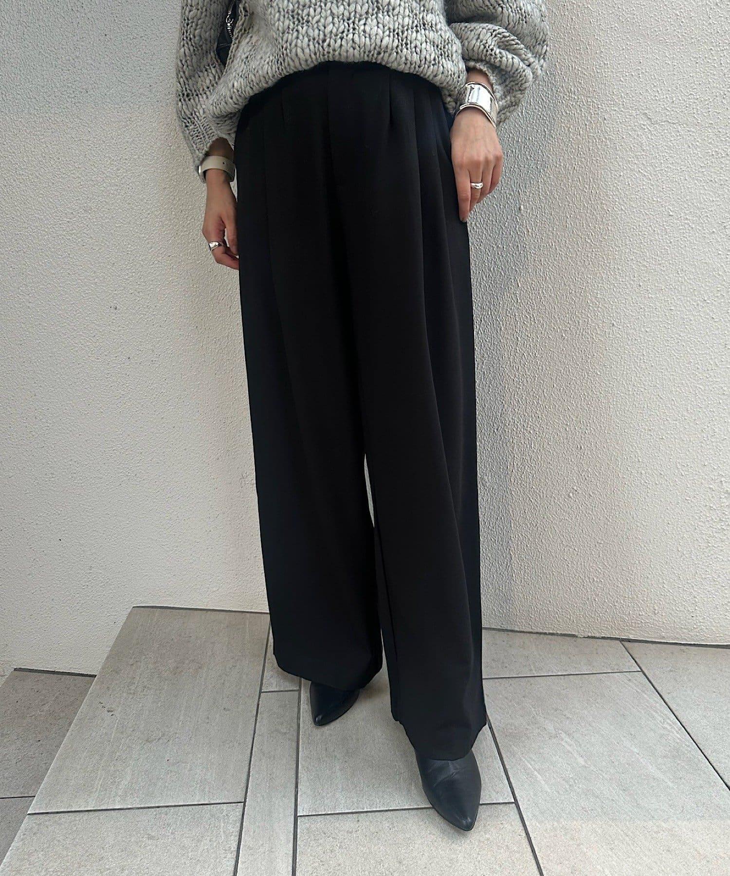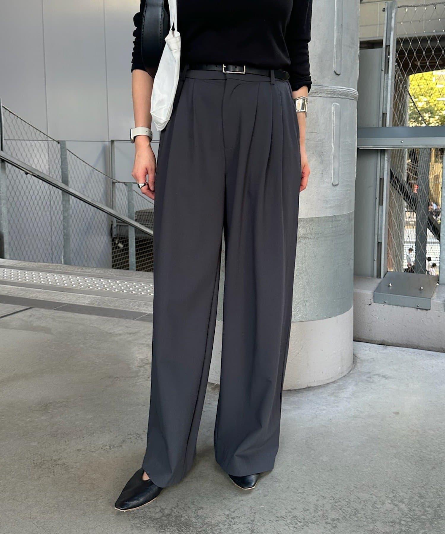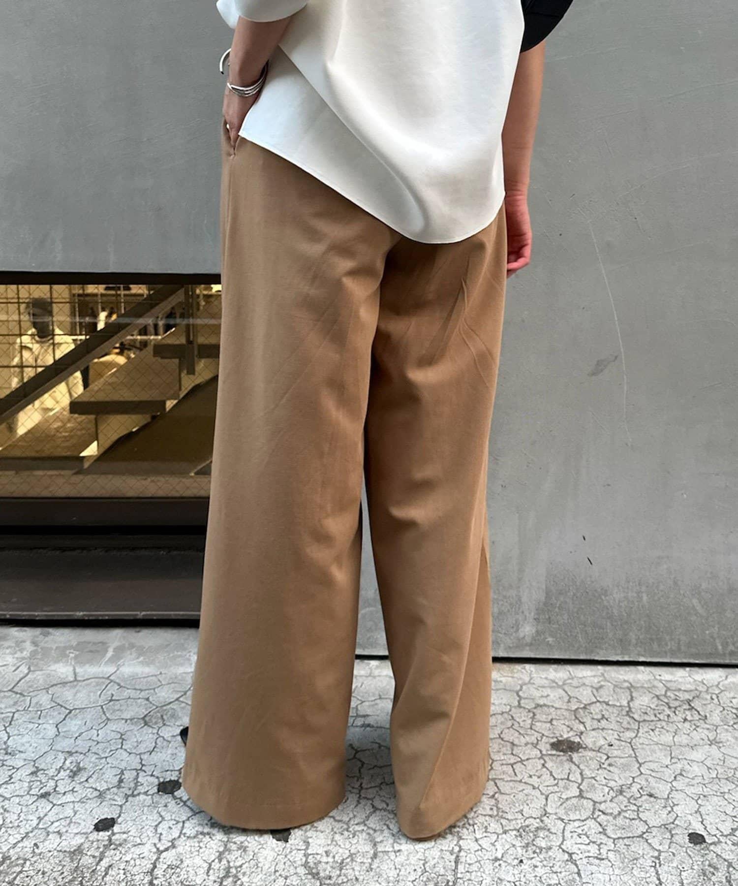 很好地遮住腰部。具有美腿效果的褶襉長褲。