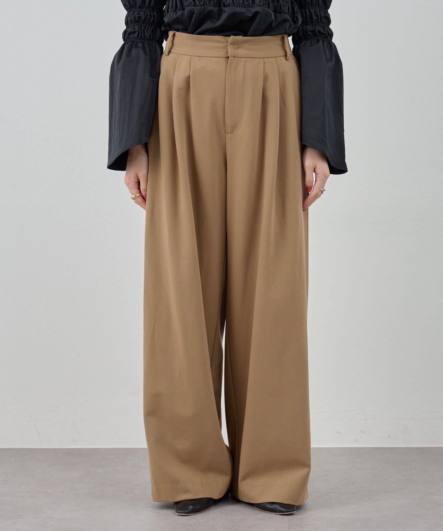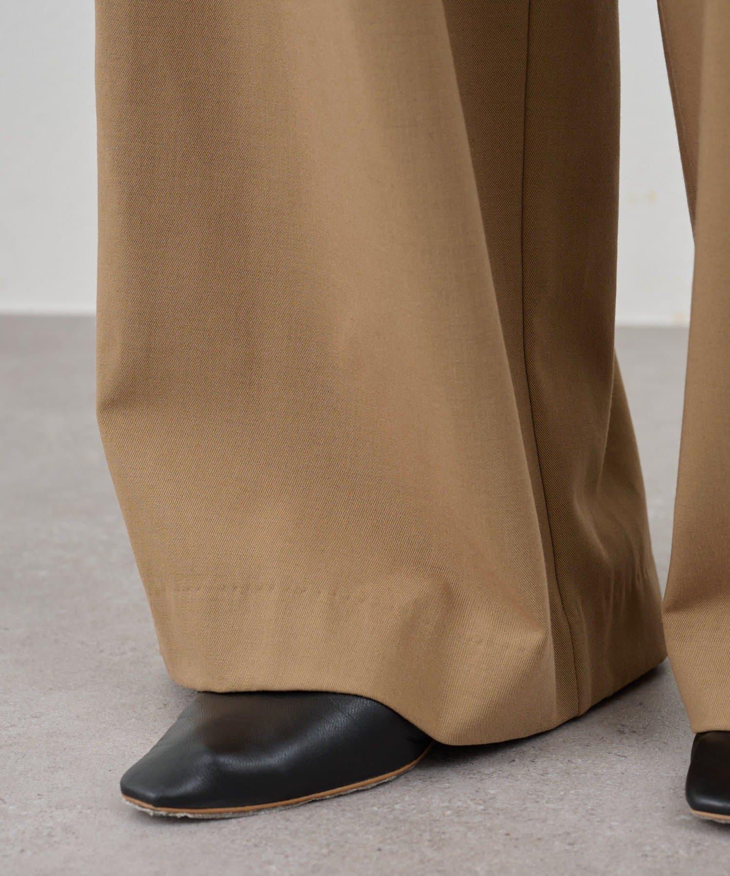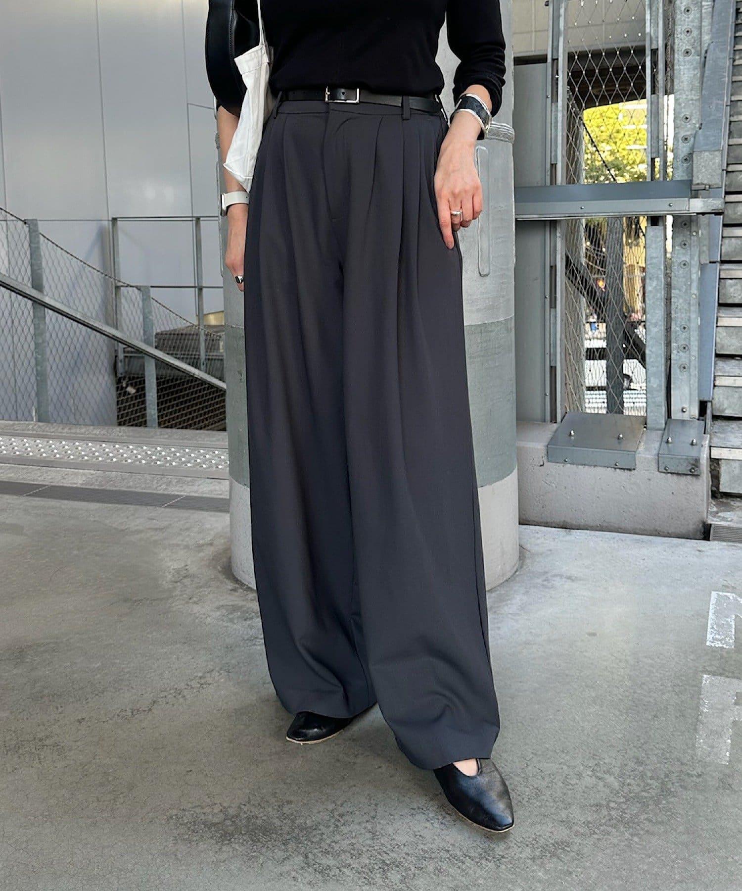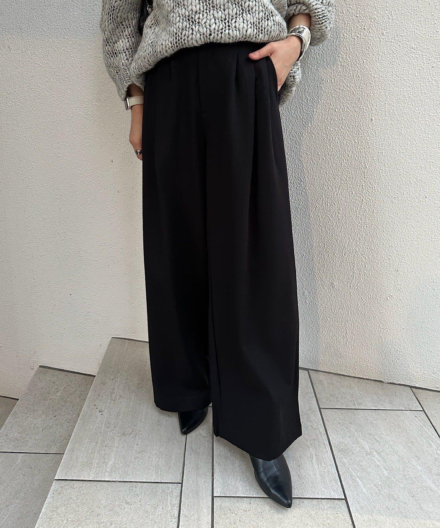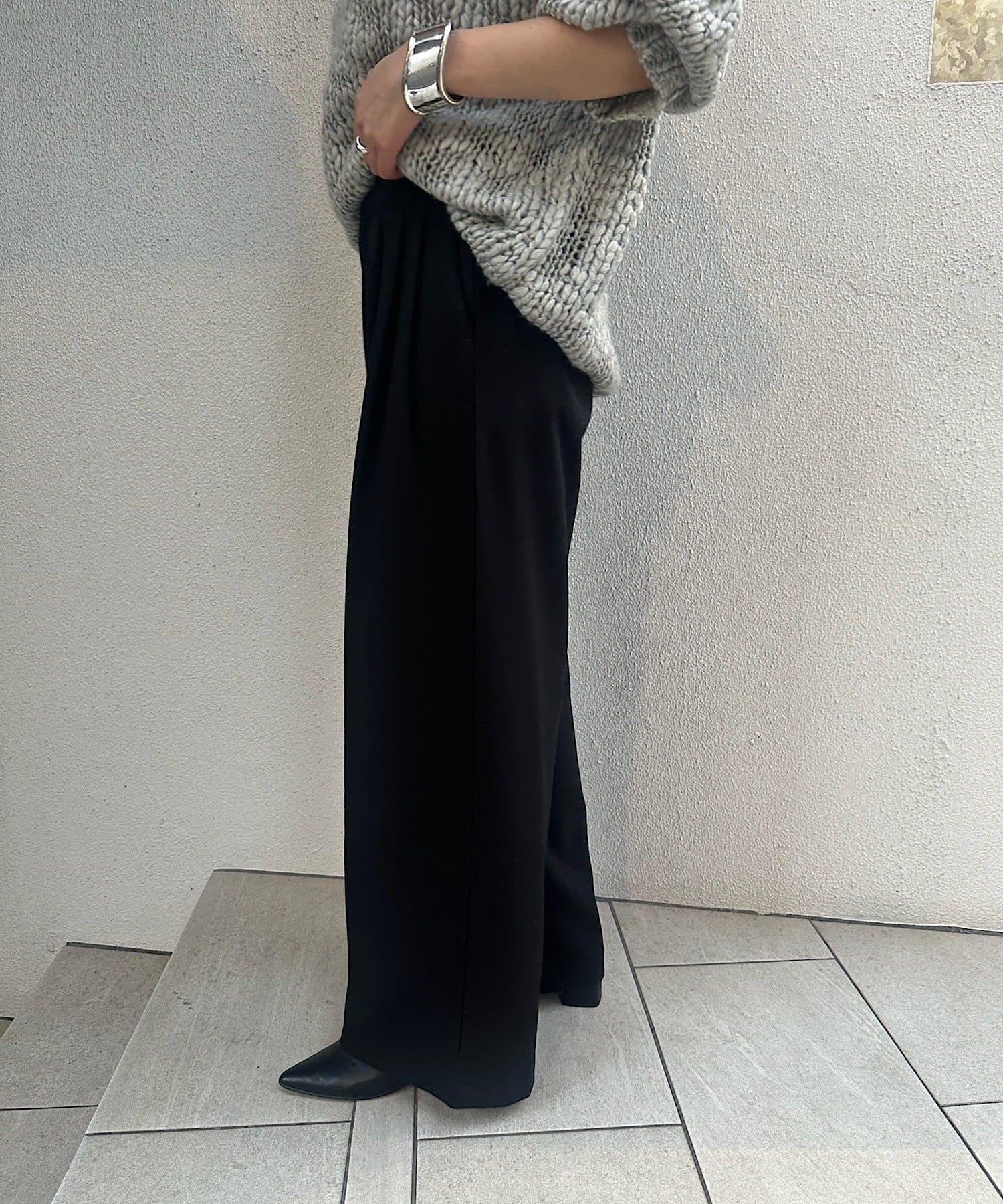 很好地遮住腰部。具有美腿效果的褶襉長褲。