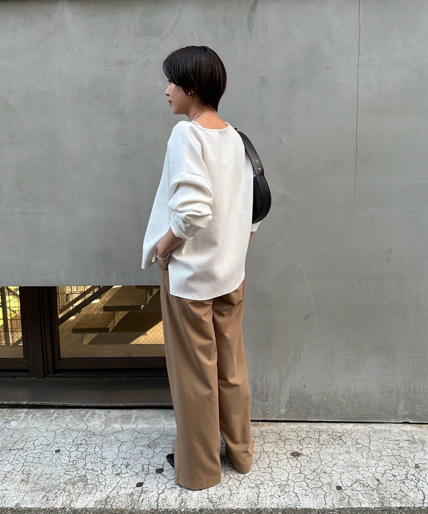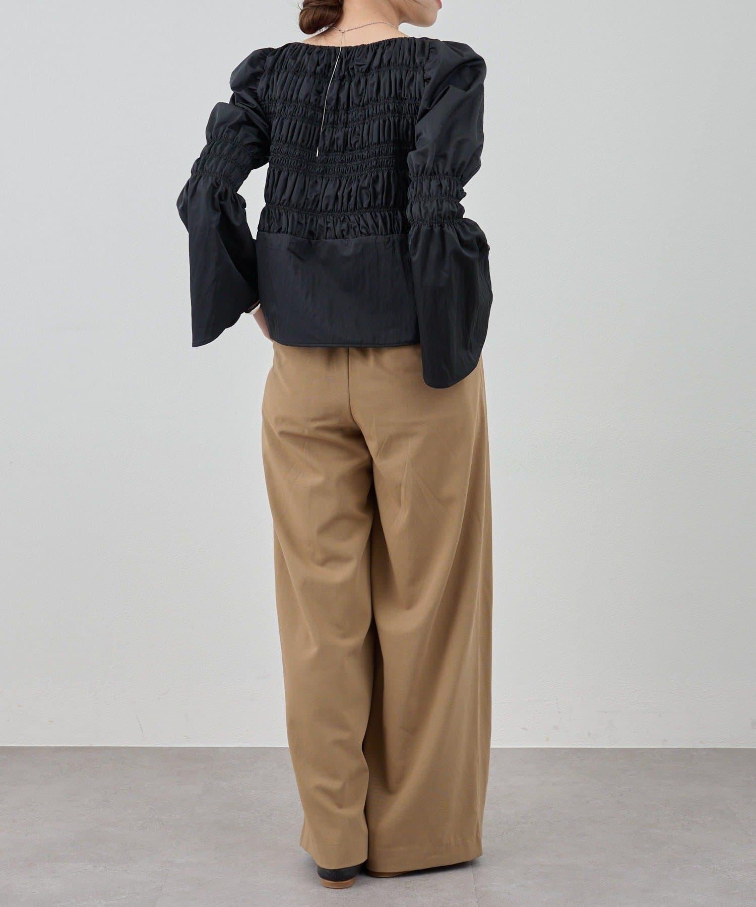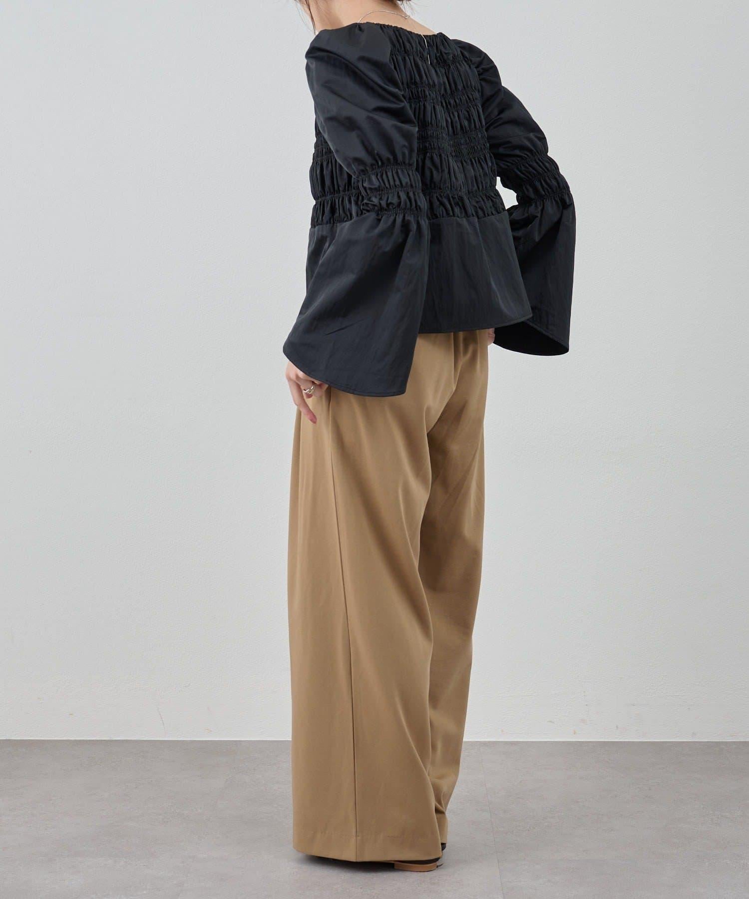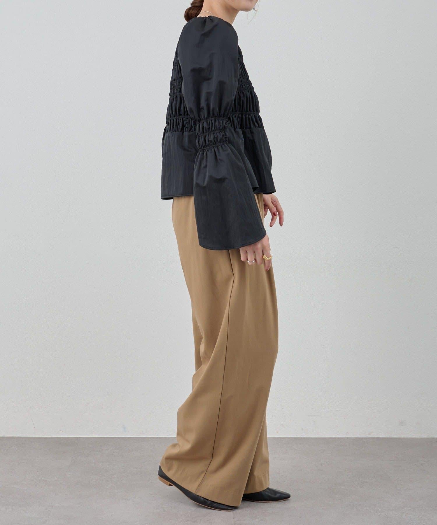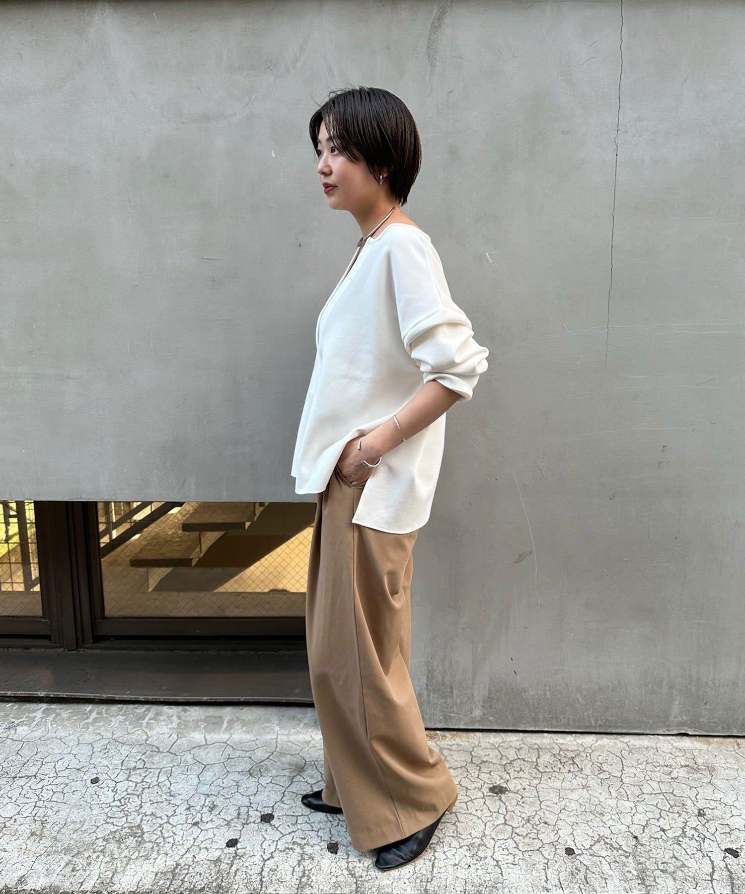很好地遮住腰部。具有美腿效果的褶襉長褲。