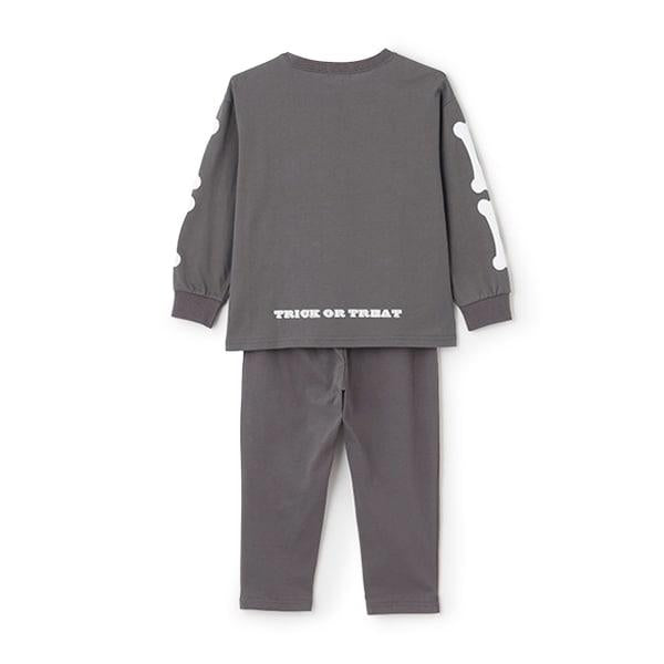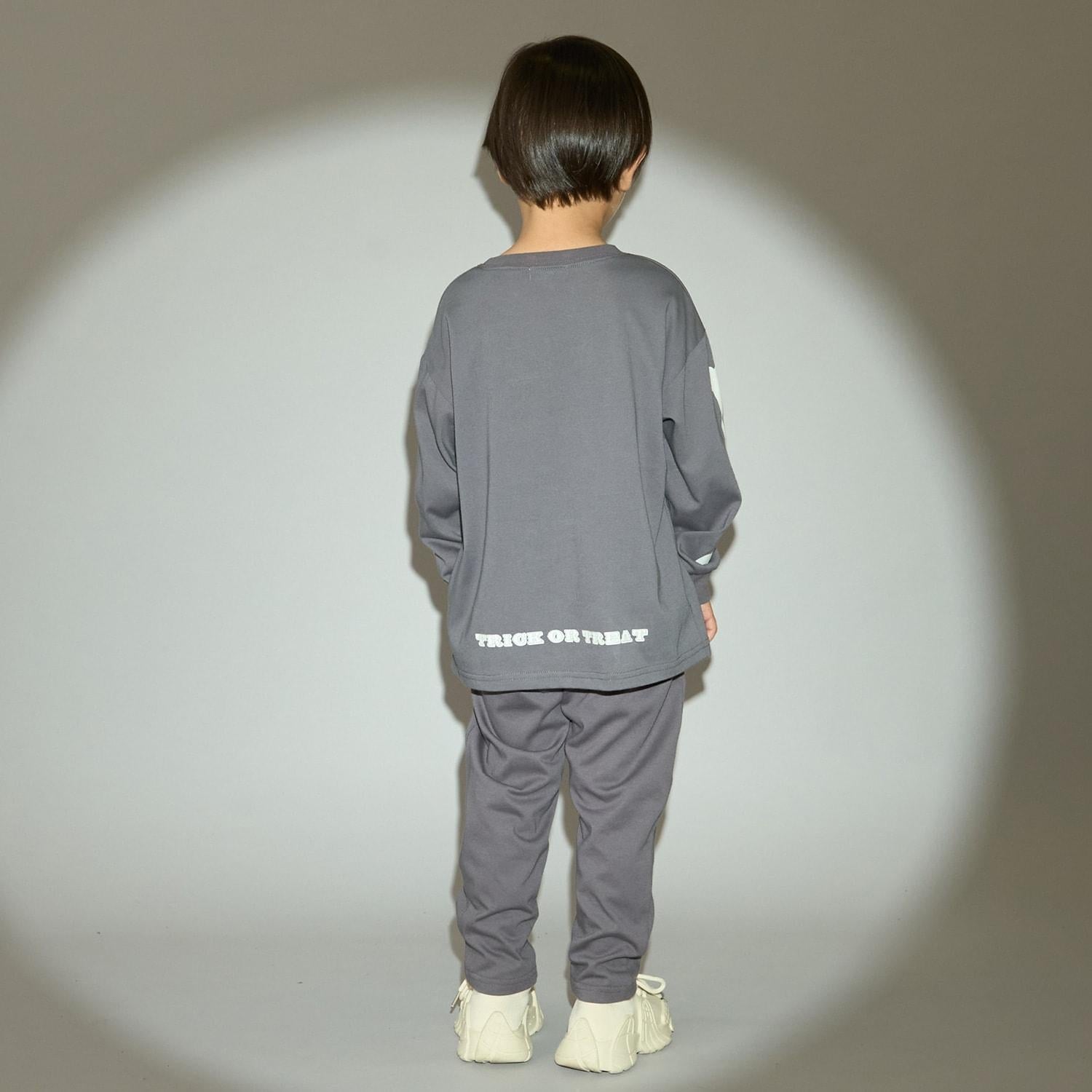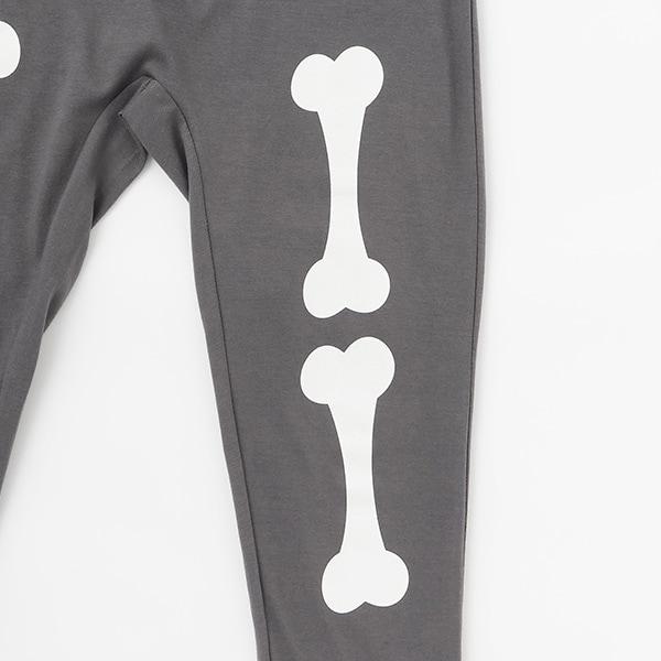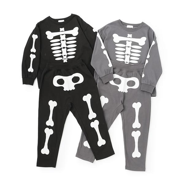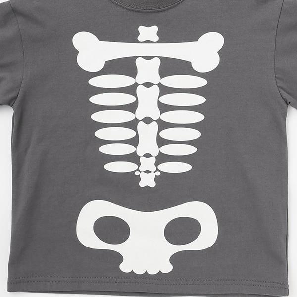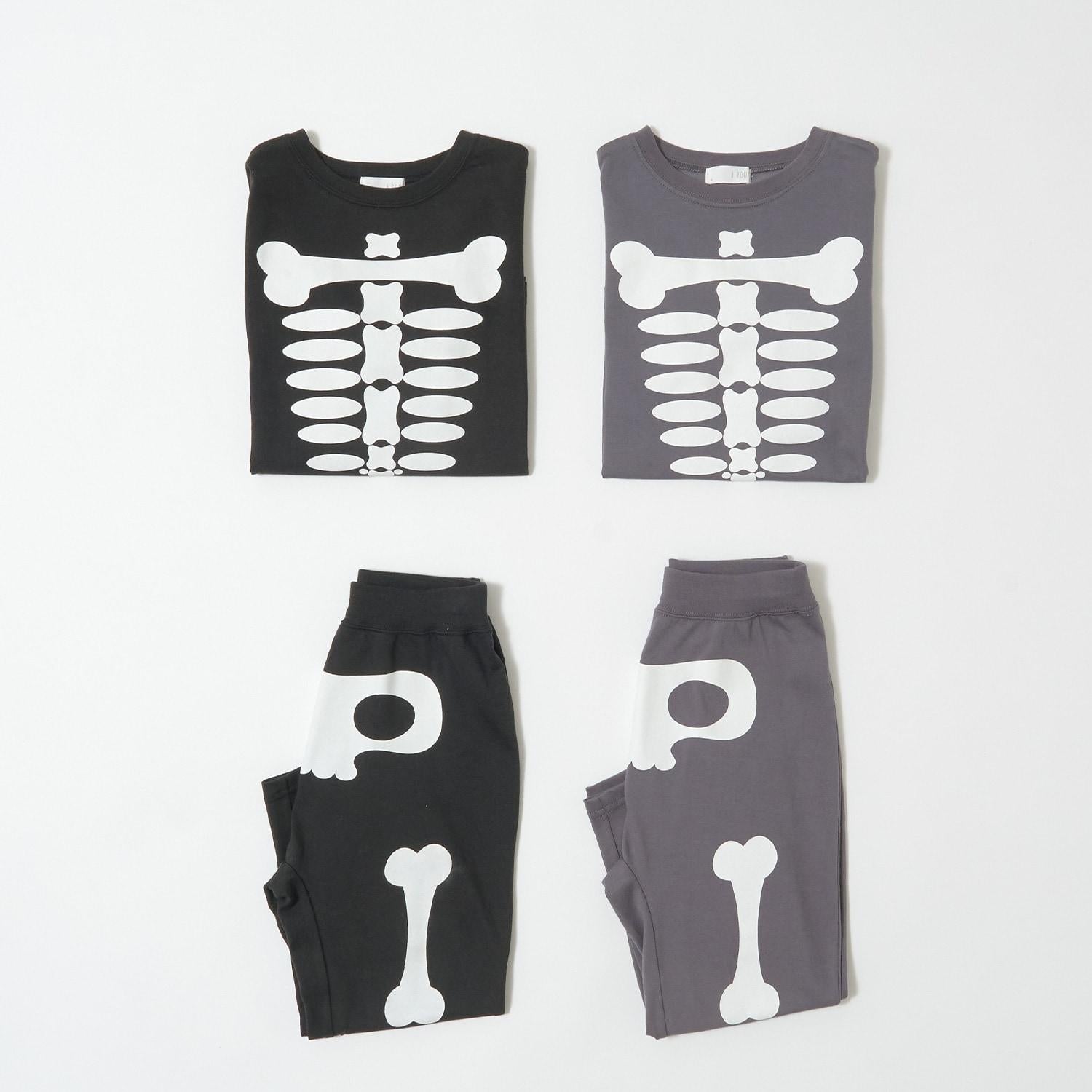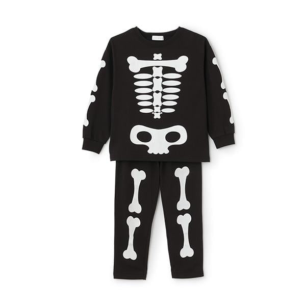 長袖 T 恤和長褲上印有醒目的夜光印花,栩栩如生。