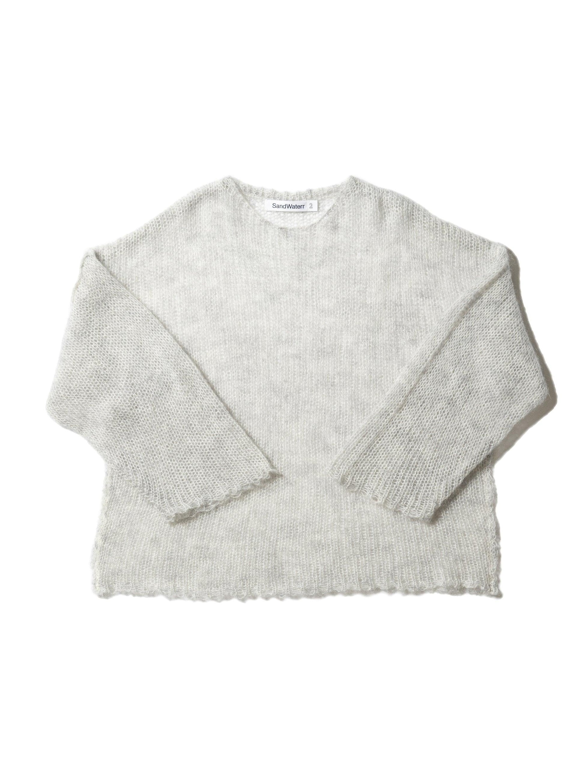 該紗線由尼龍、馬海毛和羊毛混合製成。它輕盈、透明,質地中性。連接處採用彩色設計,以突出色彩搭配。廓形寬鬆,肩寬體寬。