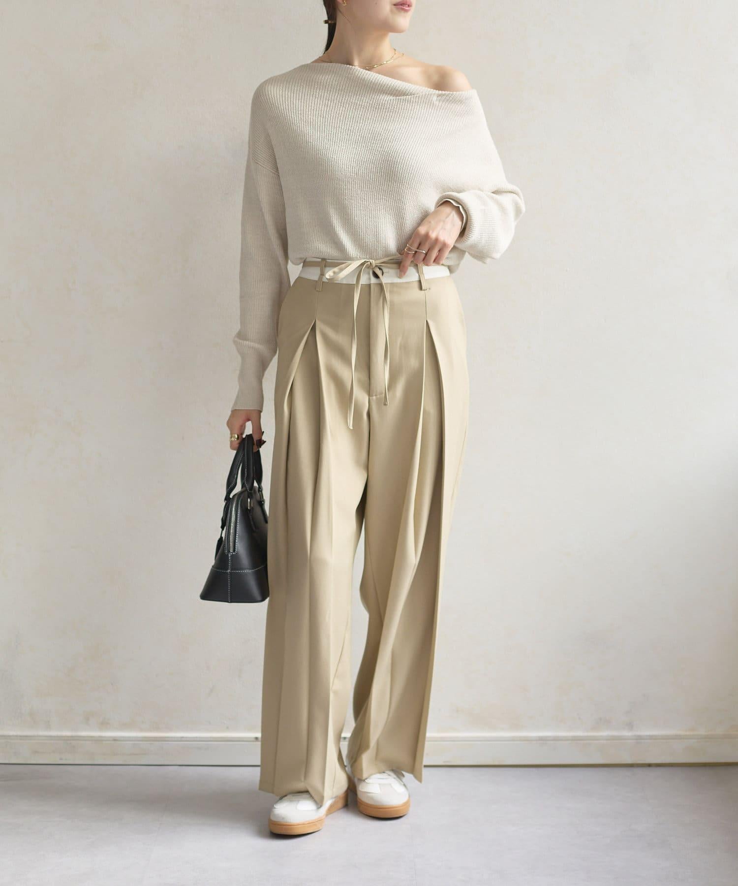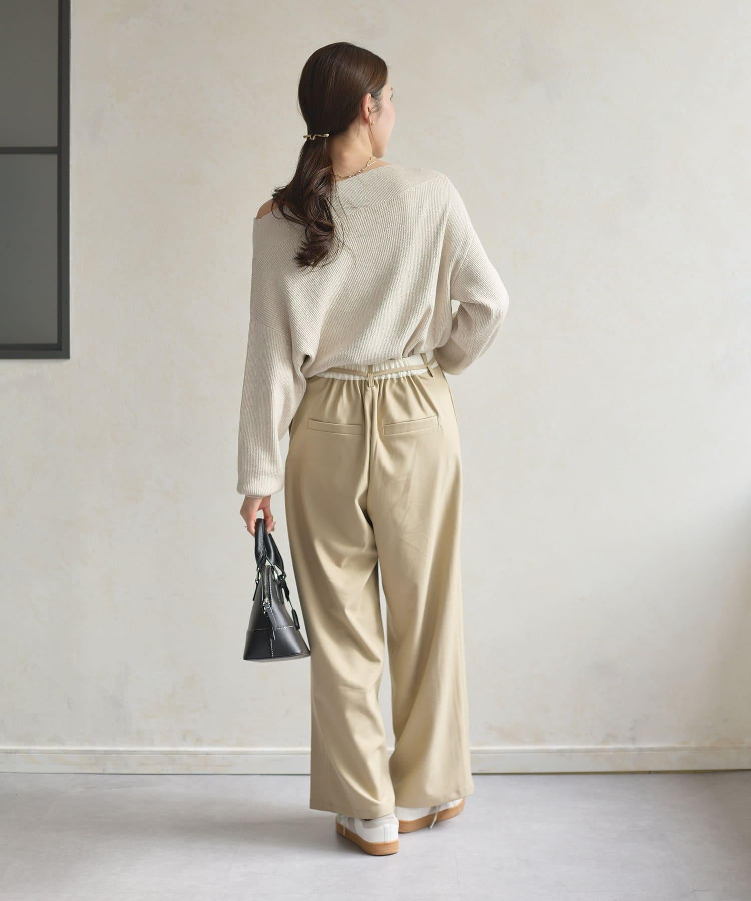 船形領也可作為單肩上衣穿著。
