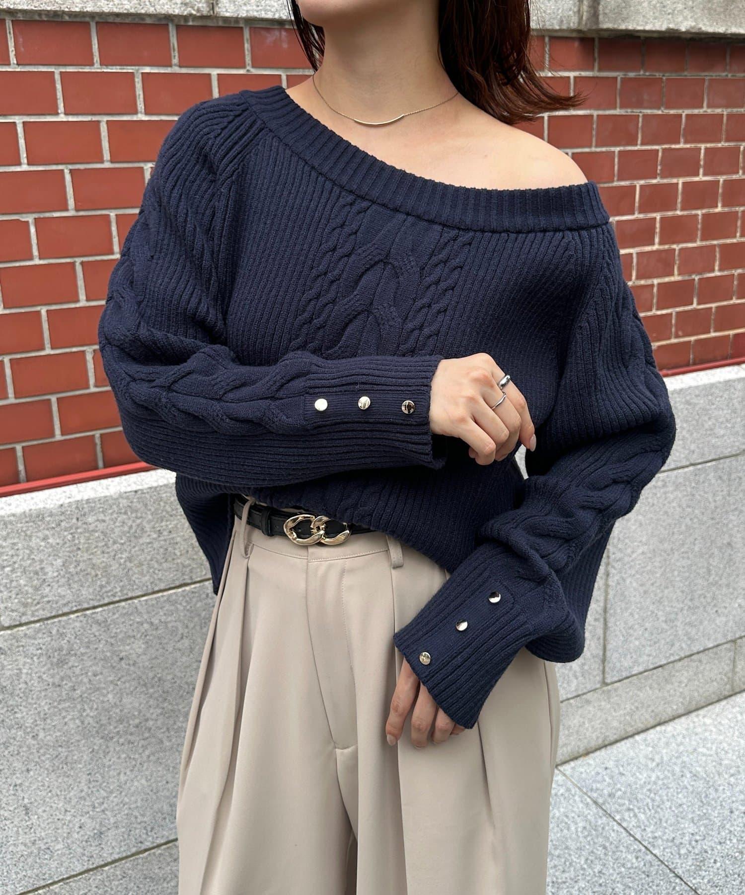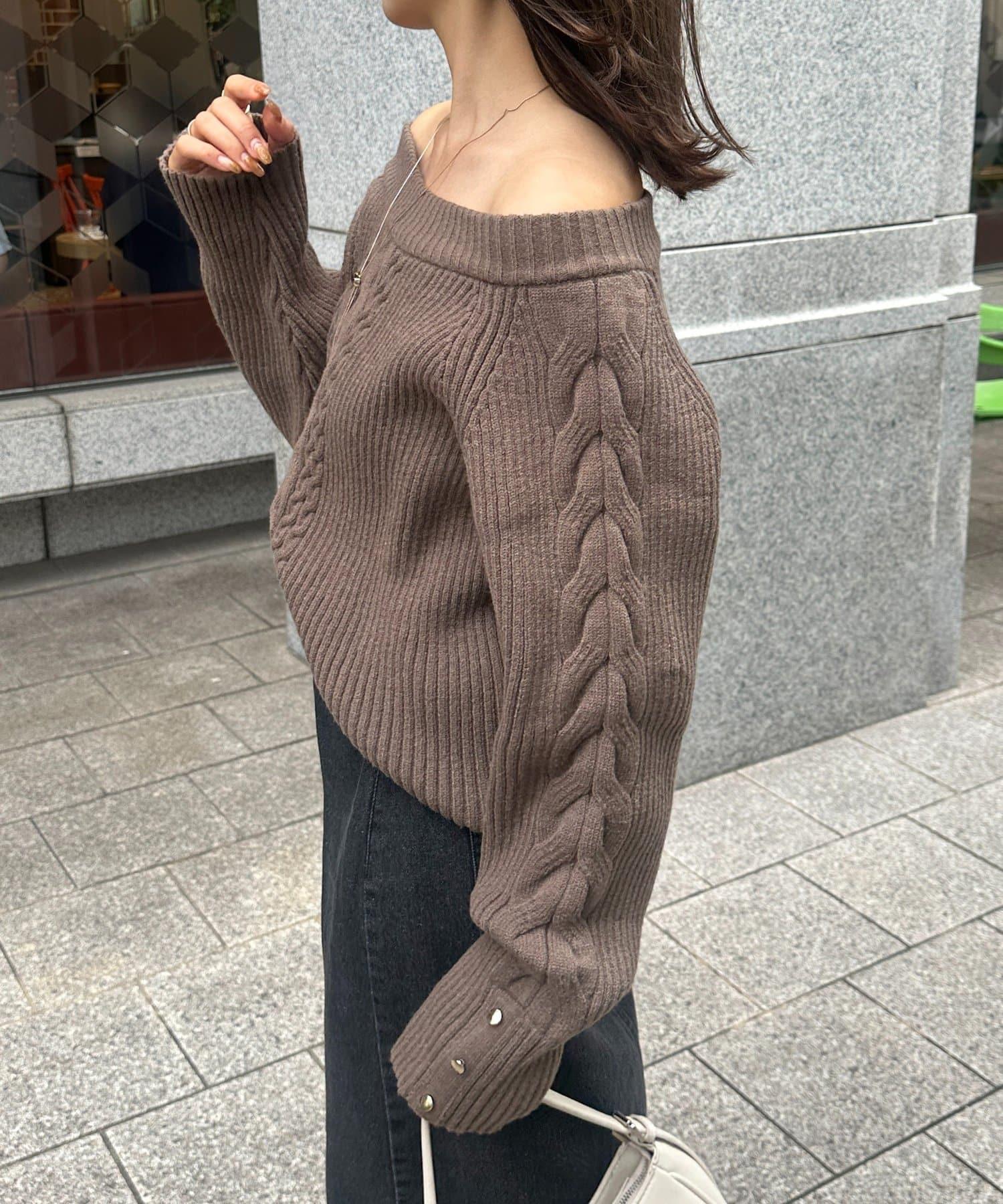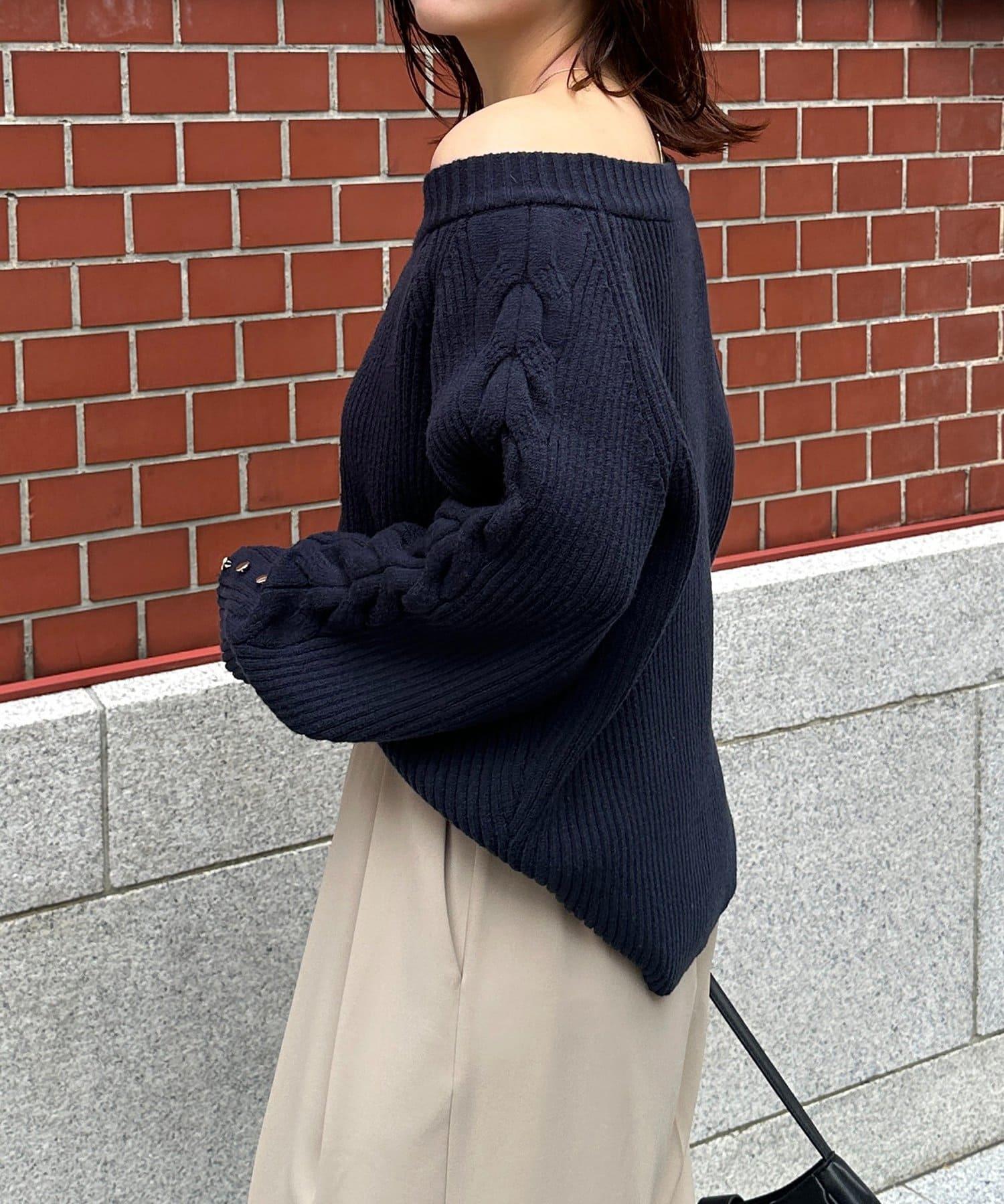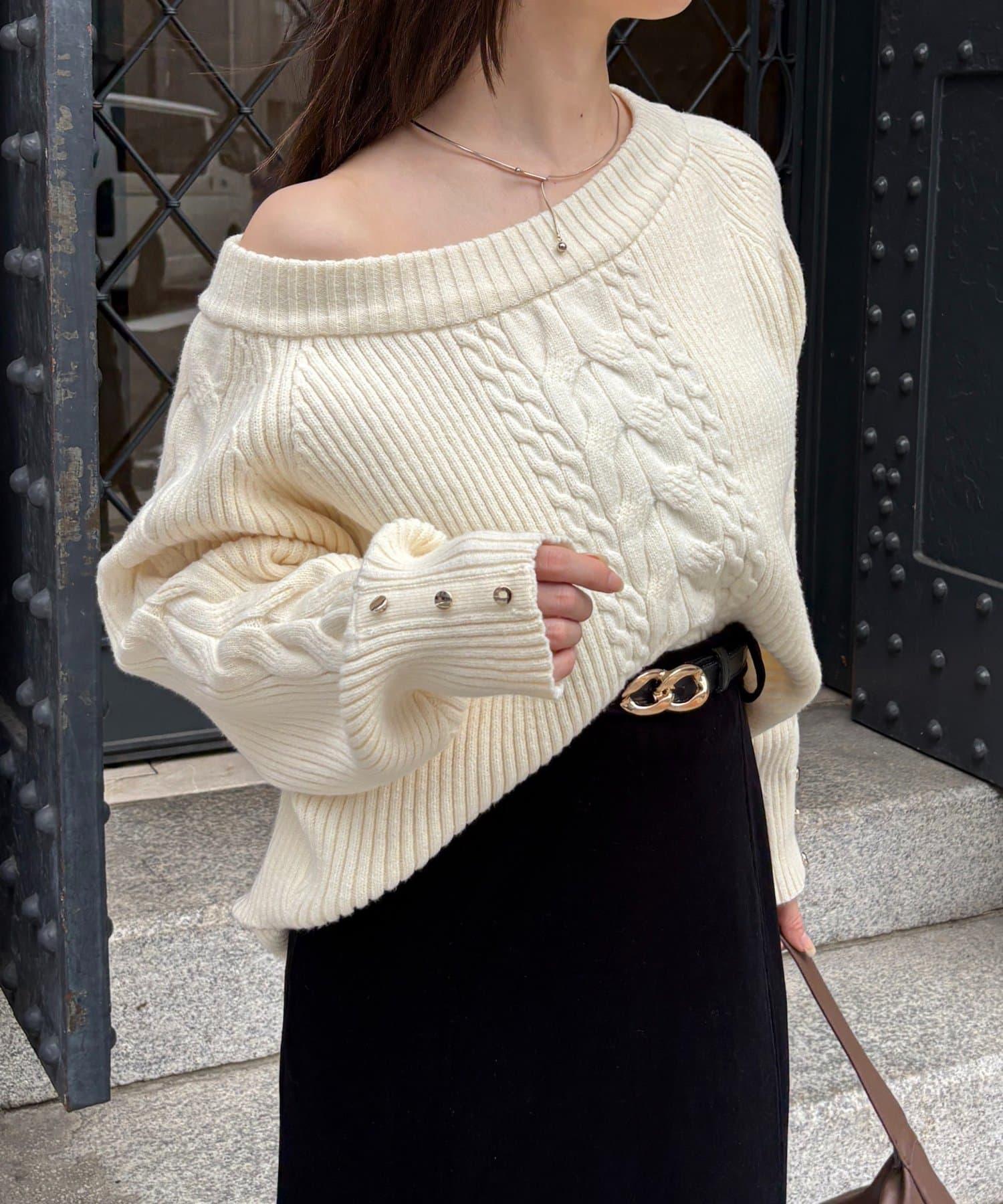 #Boatneck #Cable knit #One-shoulder #Off-the-shoulder#針織衫