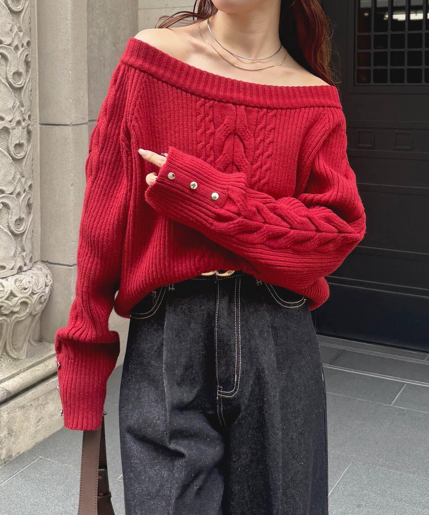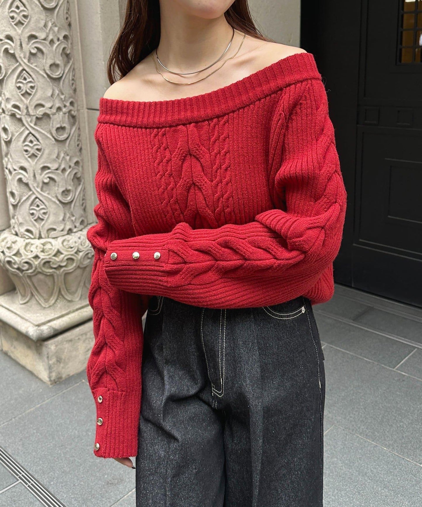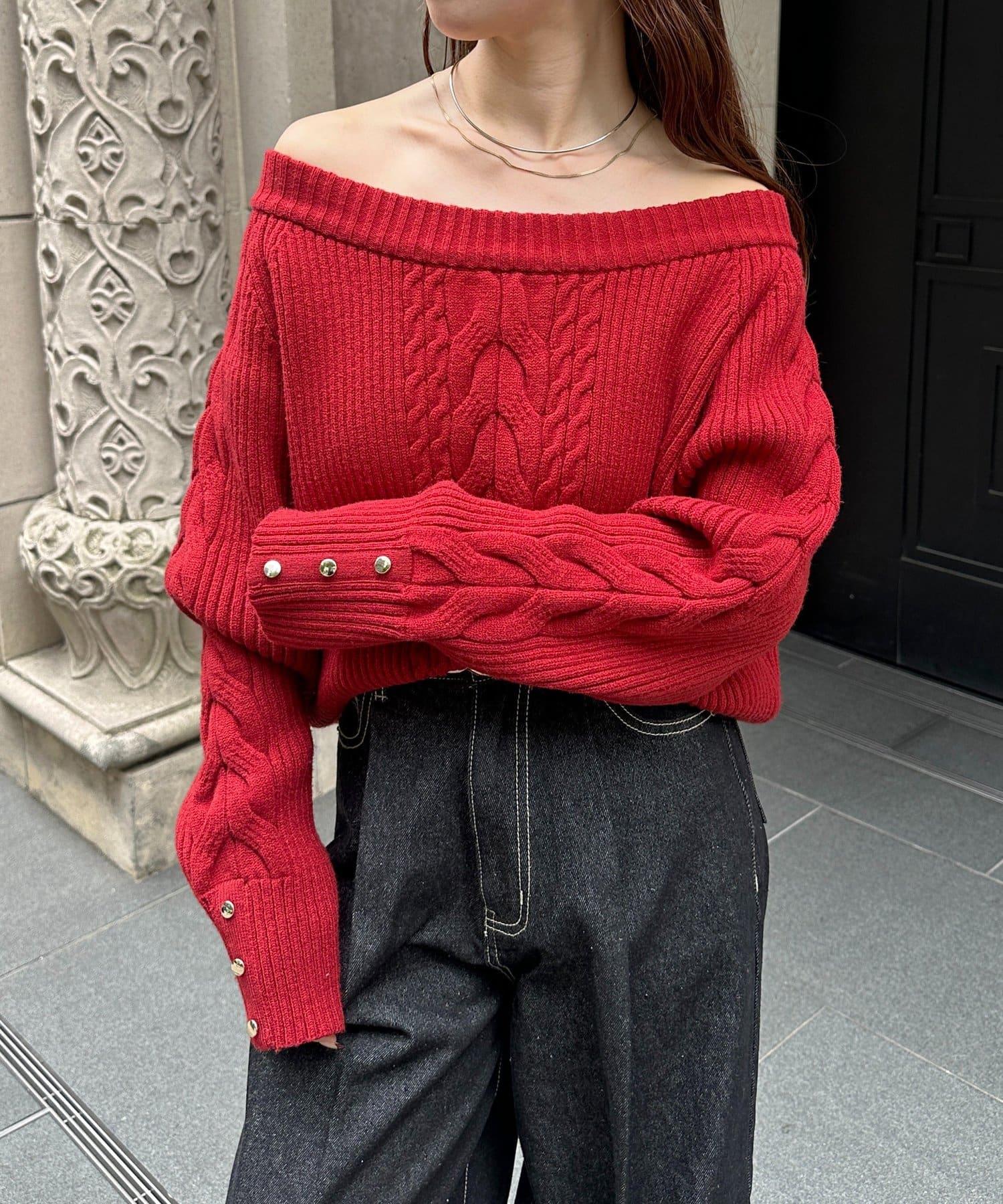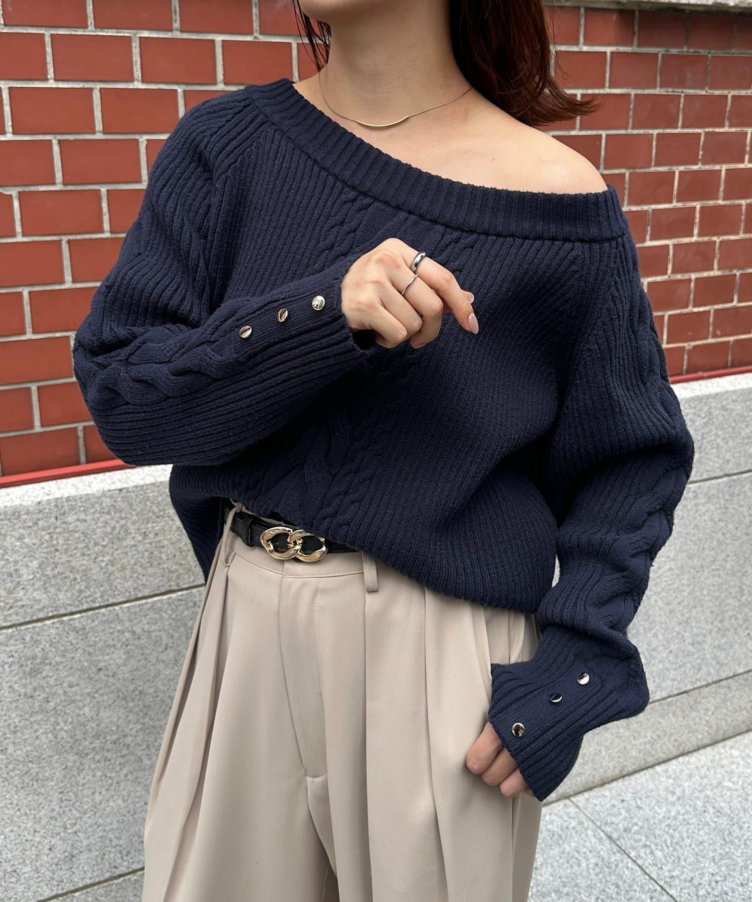 #Boatneck #Cable knit #One-shoulder #Off-the-shoulder#針織衫