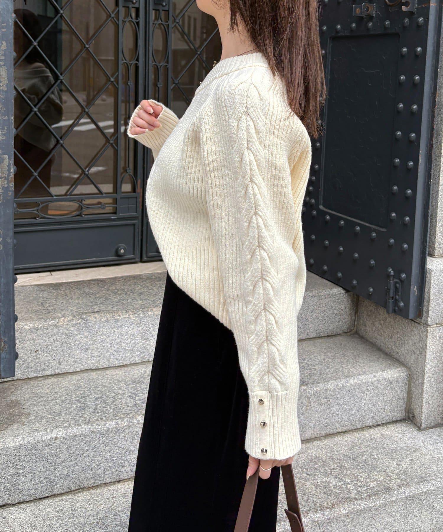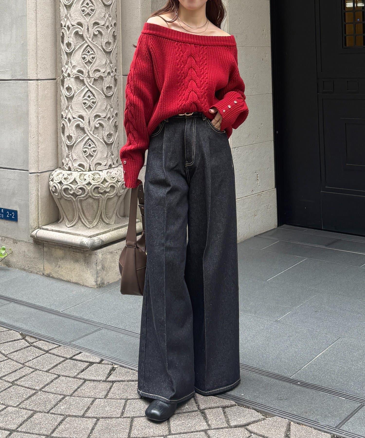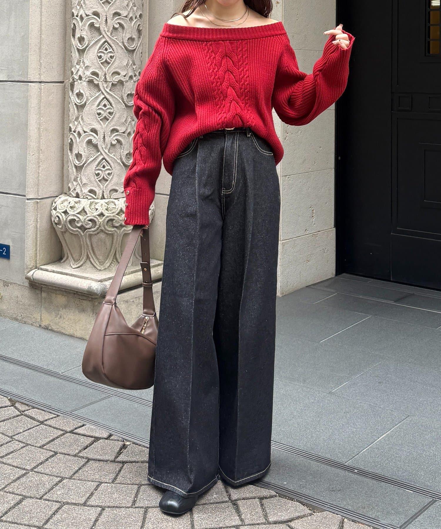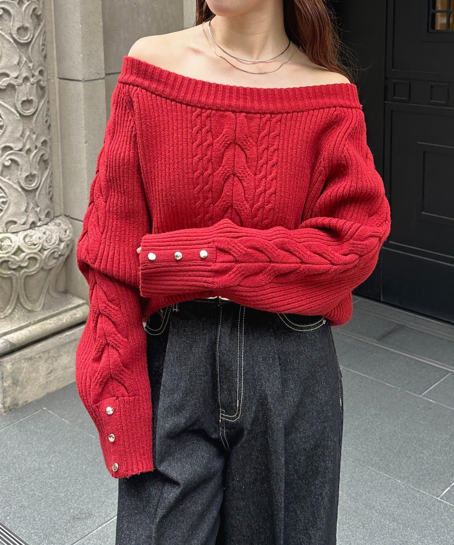 #Boatneck #Cable knit #One-shoulder #Off-the-shoulder#針織衫