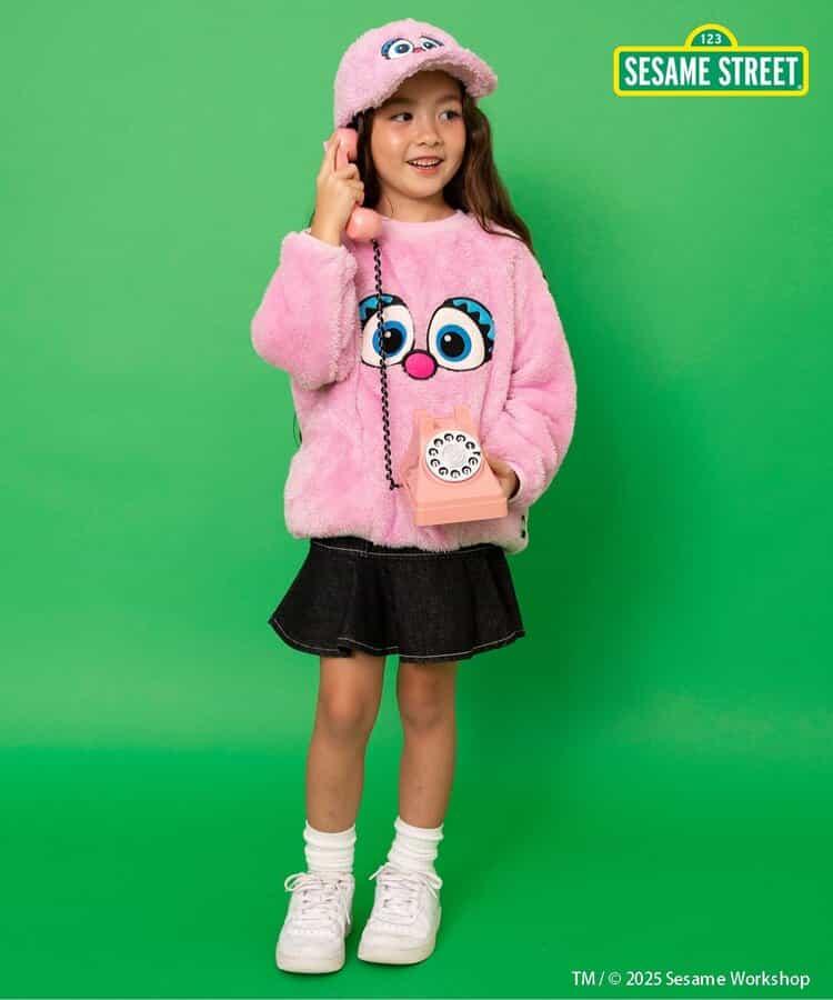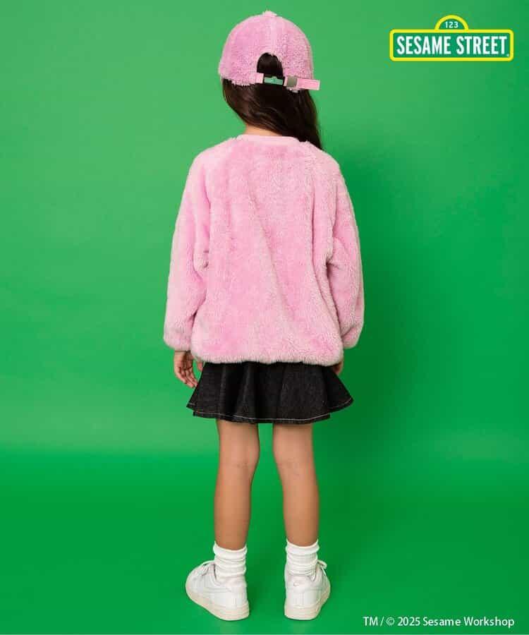 造型簡潔,採用蓬鬆可愛的蟒蛇絨材質,並在人物面部進行大膽刺繡。