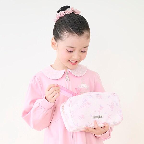 這款髮型化妝包採用 Mezzo Piano 原創的花朵芭蕾圖案,是應身為芭蕾舞學生的 Mezzo Piano 粉絲的要求而設計的。