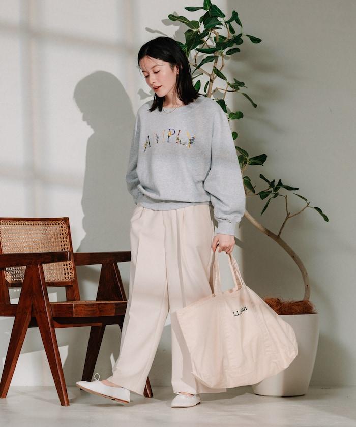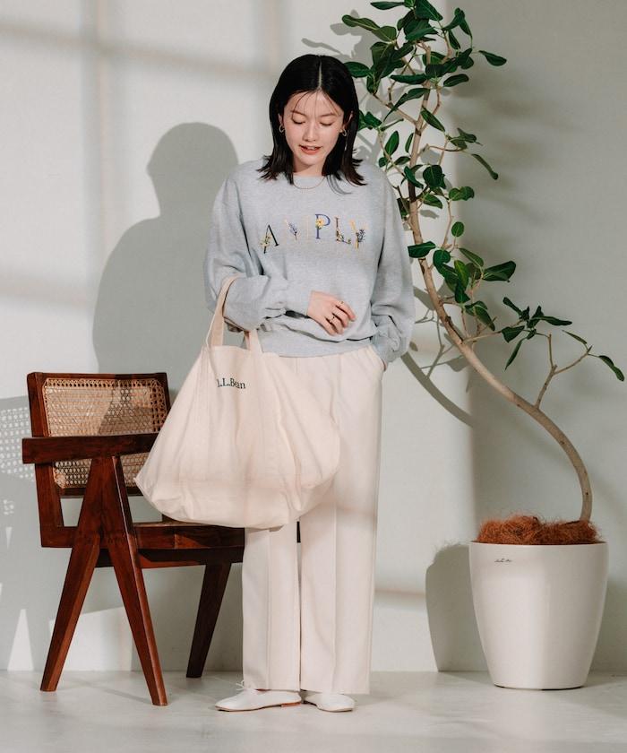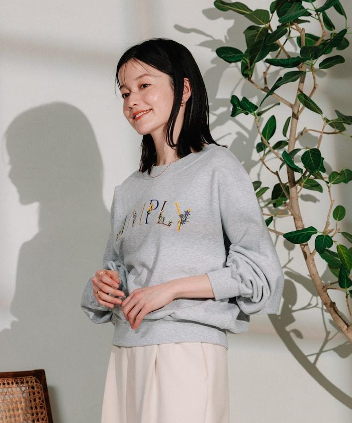 帶有暗色徽標和花朵刺繡的運動衫充滿自然氣息。