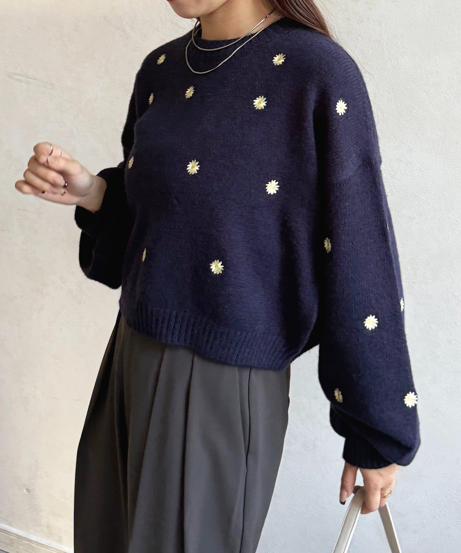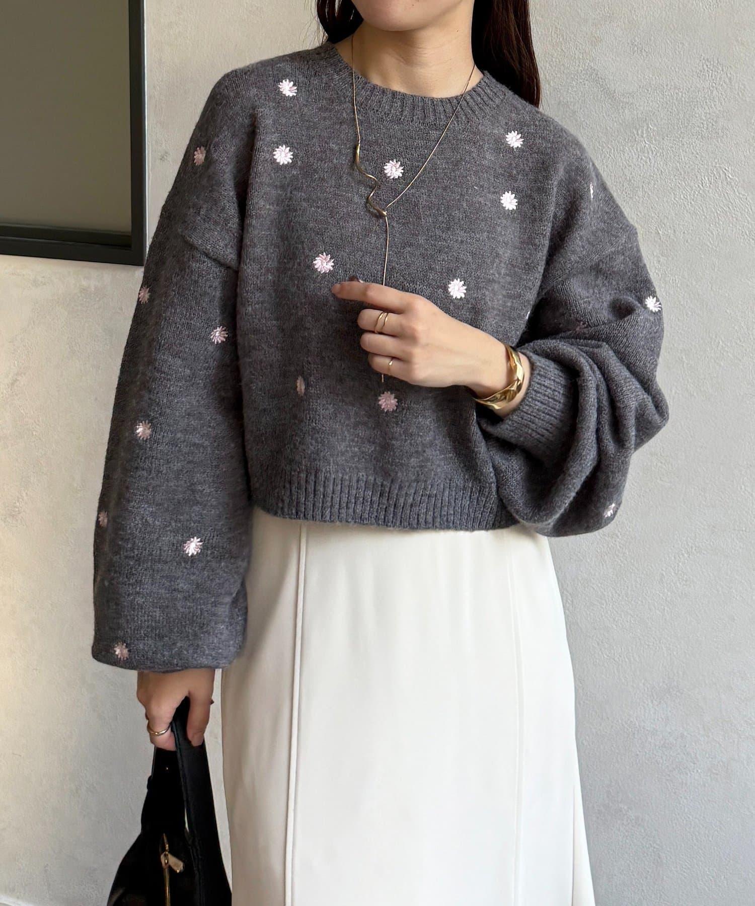 #短款針織衫 #針織 #刺繡 #花朵 #漂亮 #女性化