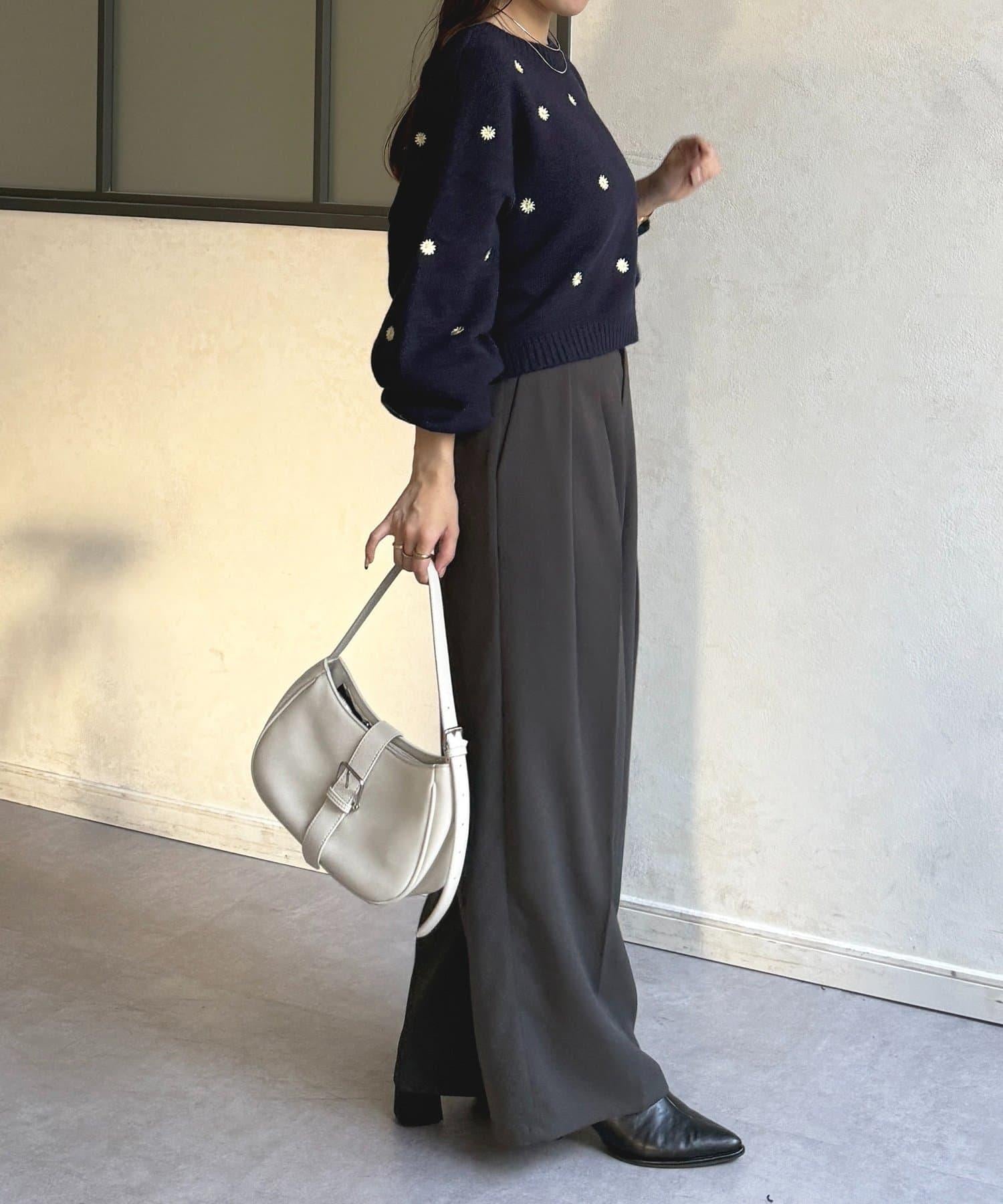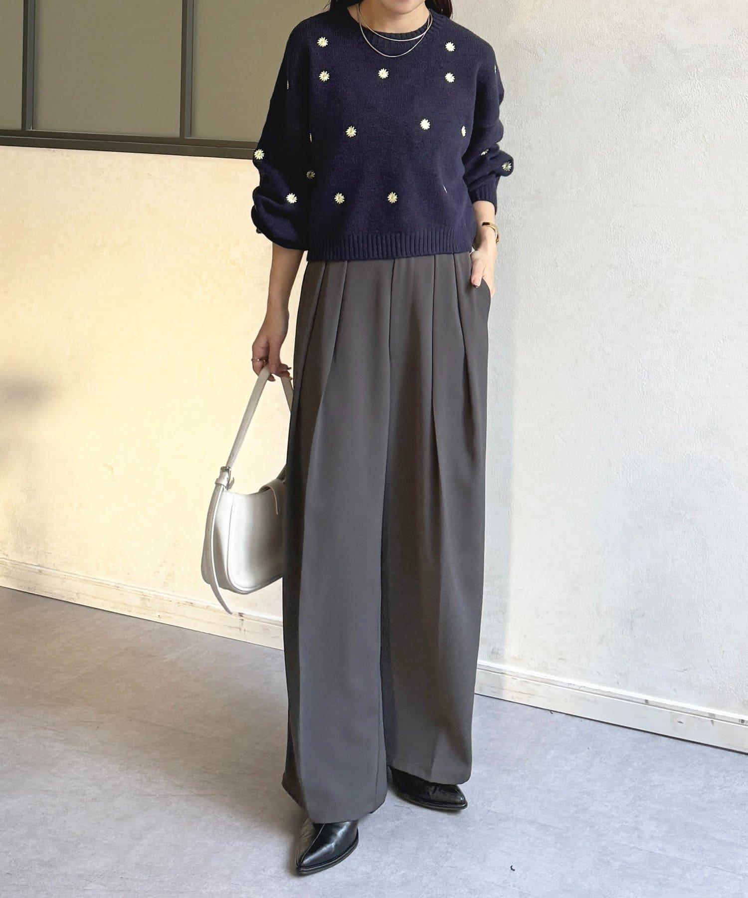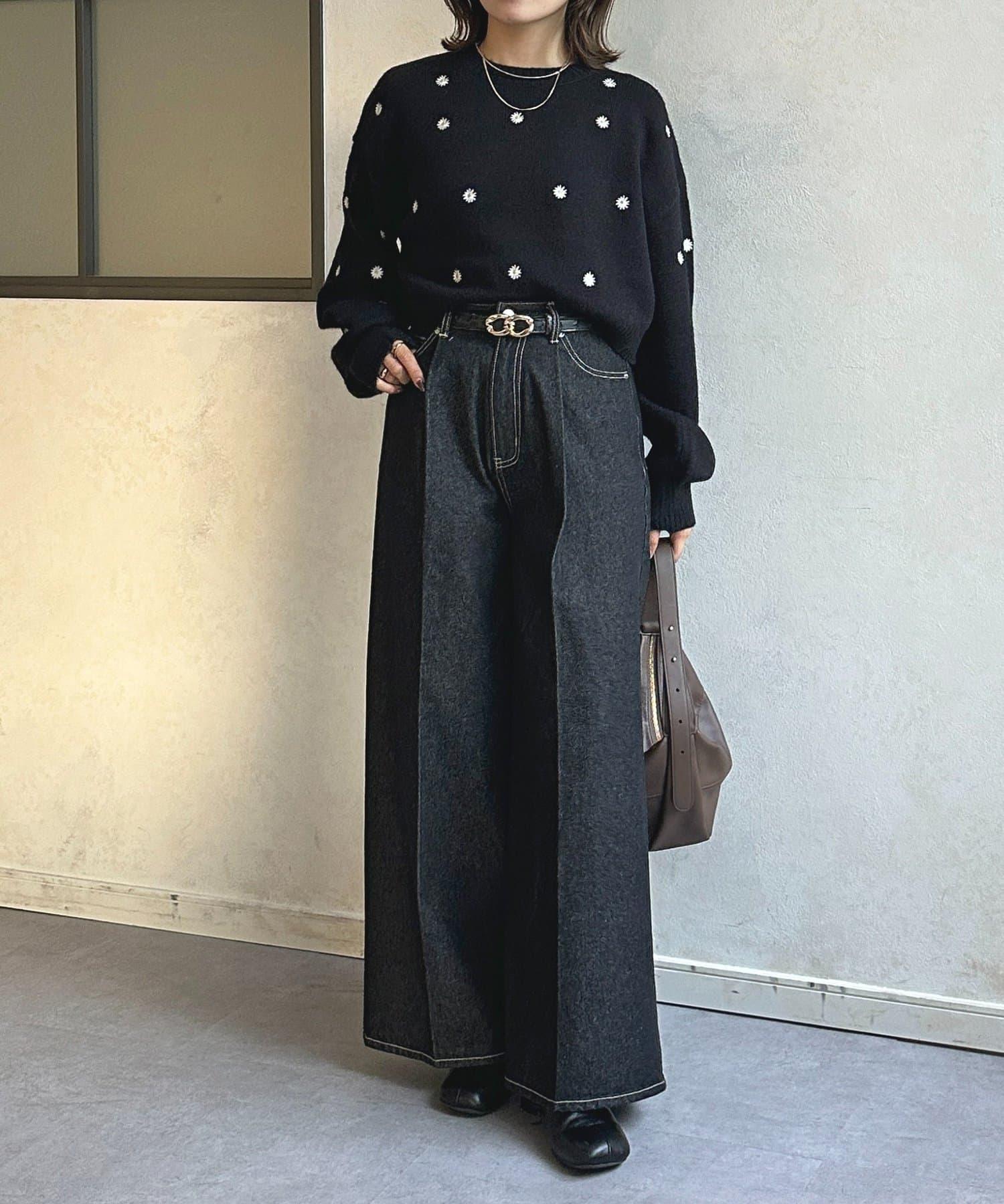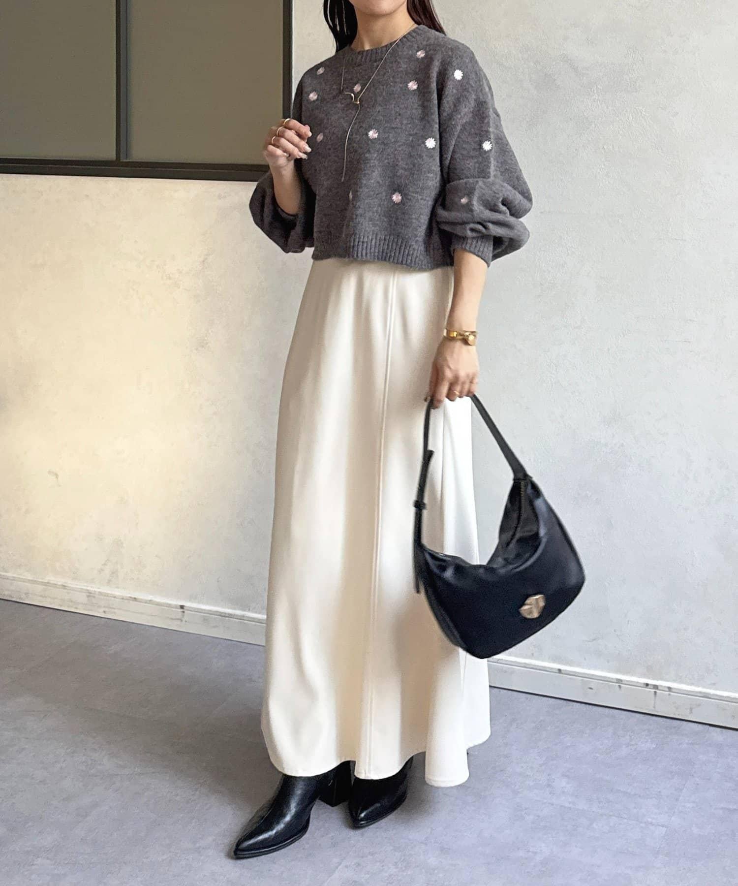 因為是華麗的針織衫,所以下裝的設計比較簡單。