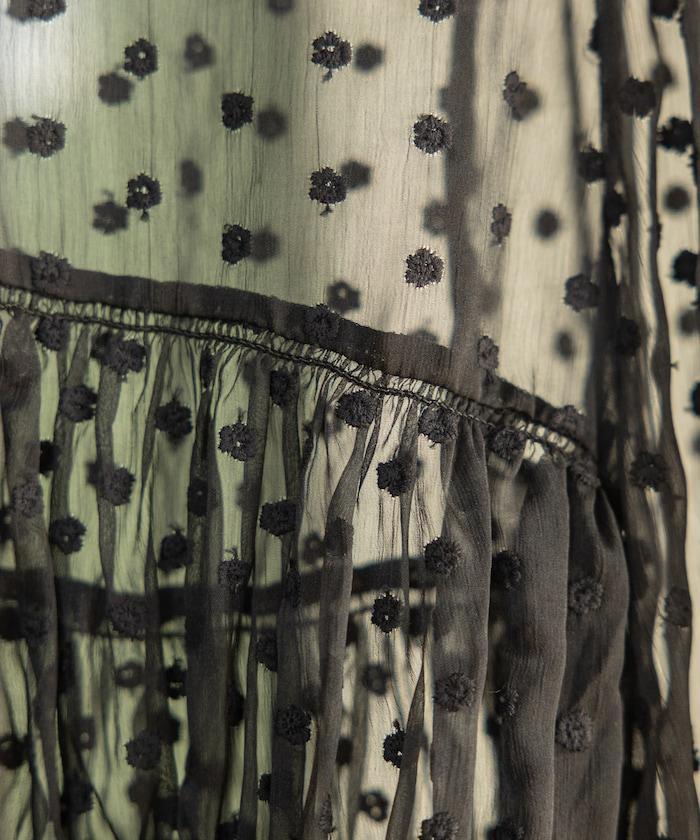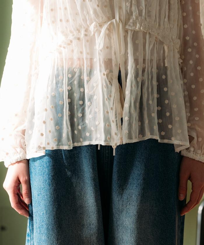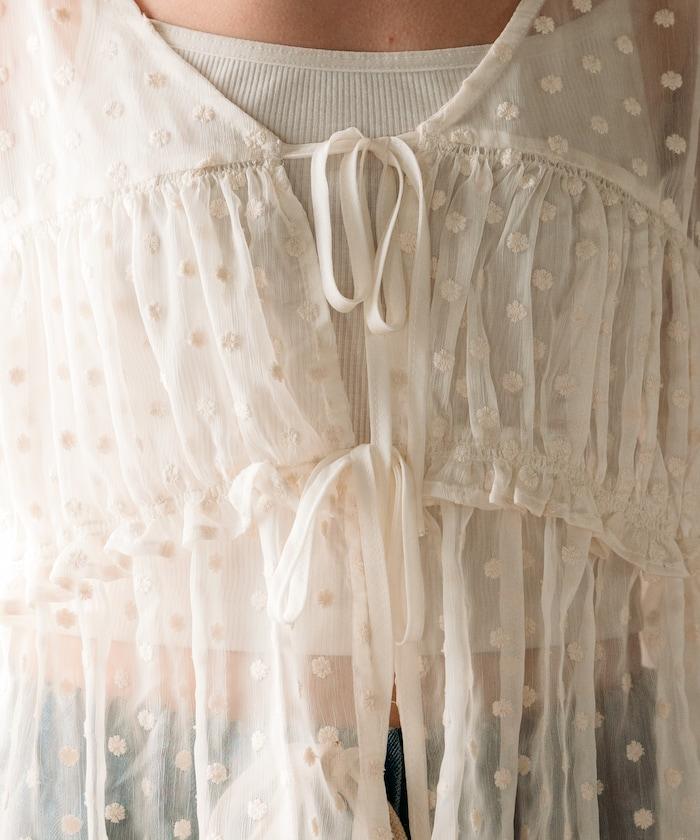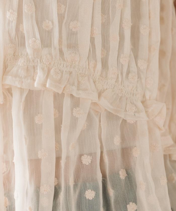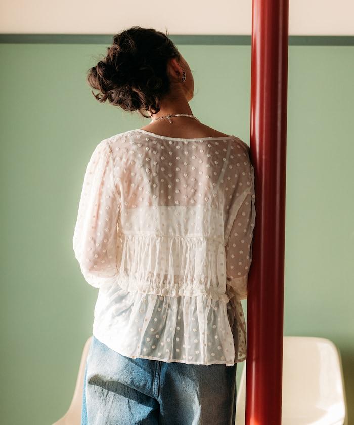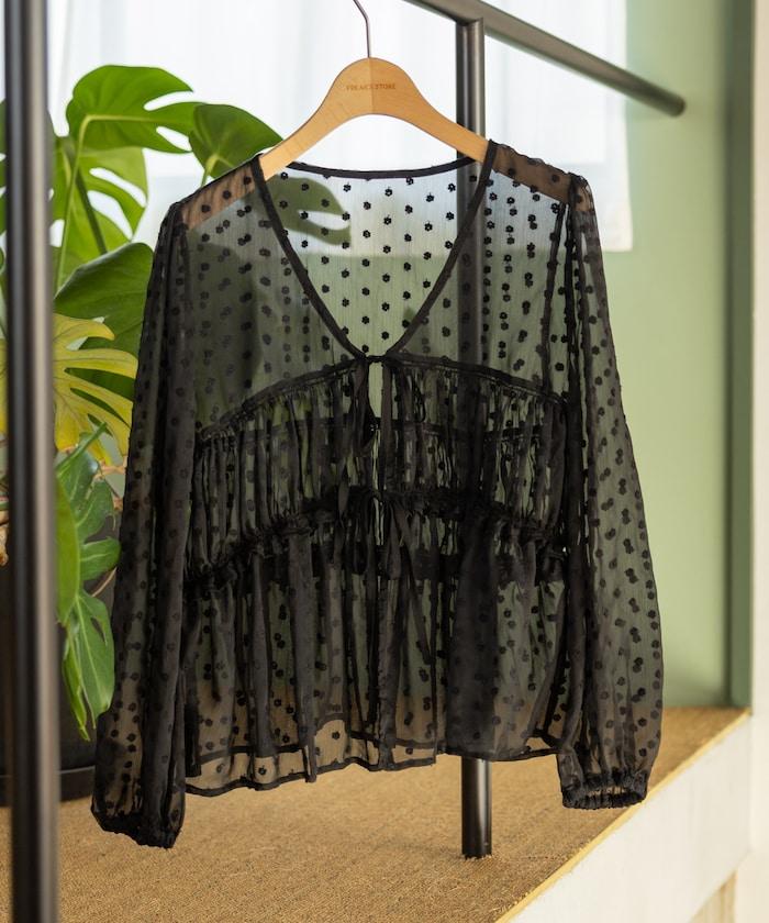 透視上衣上有可愛的花朵刺繡,看起來就像點點滴滴。