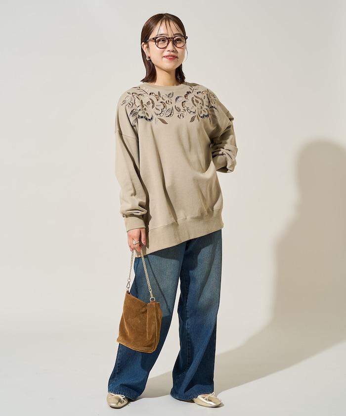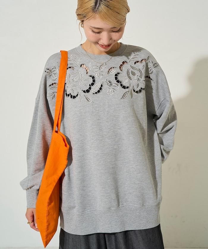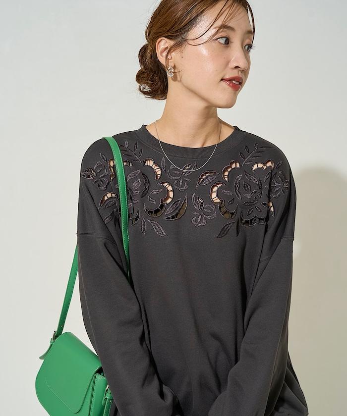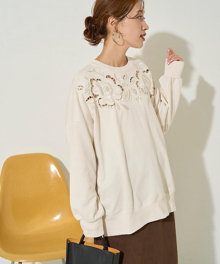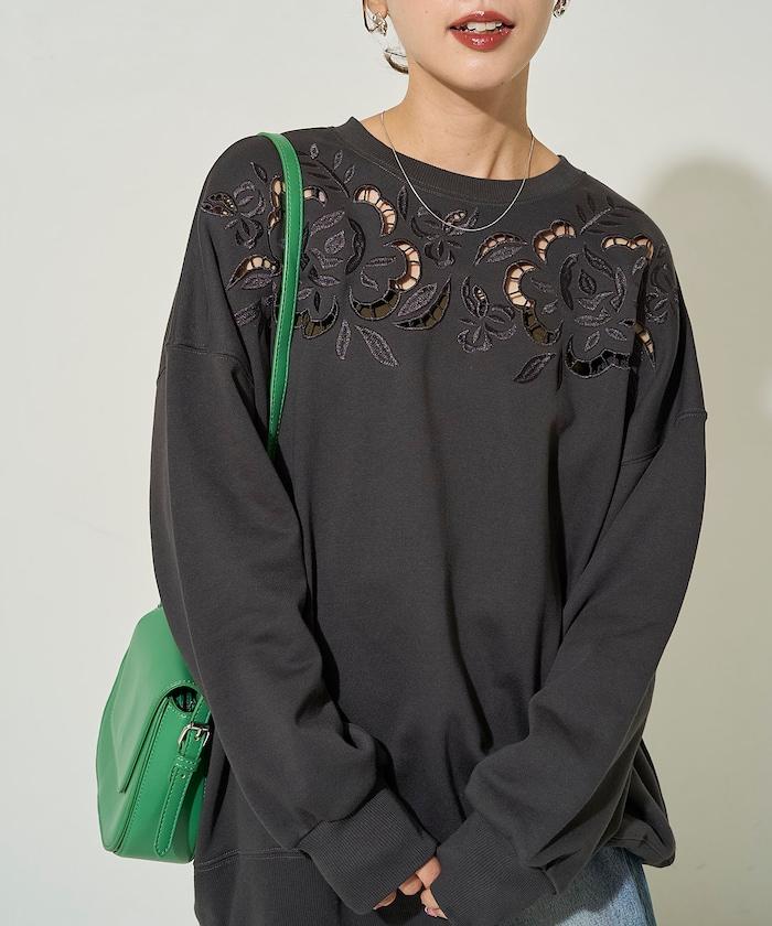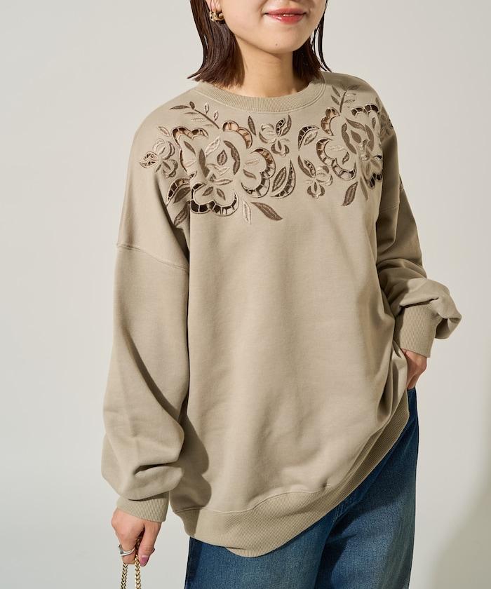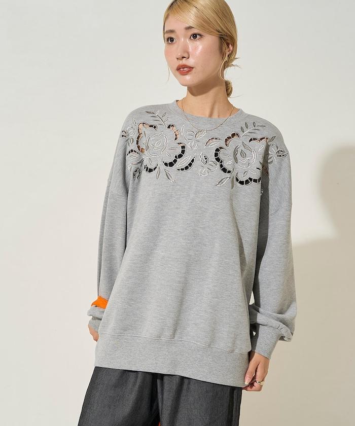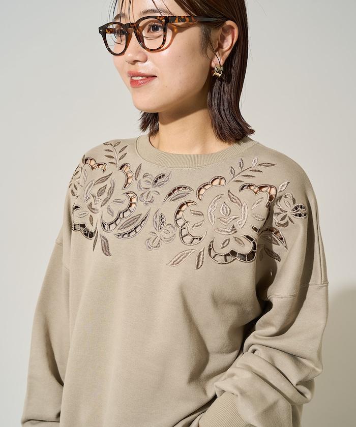 汗衫套頭衫上的刺繡花朵圖案令人印象深刻。