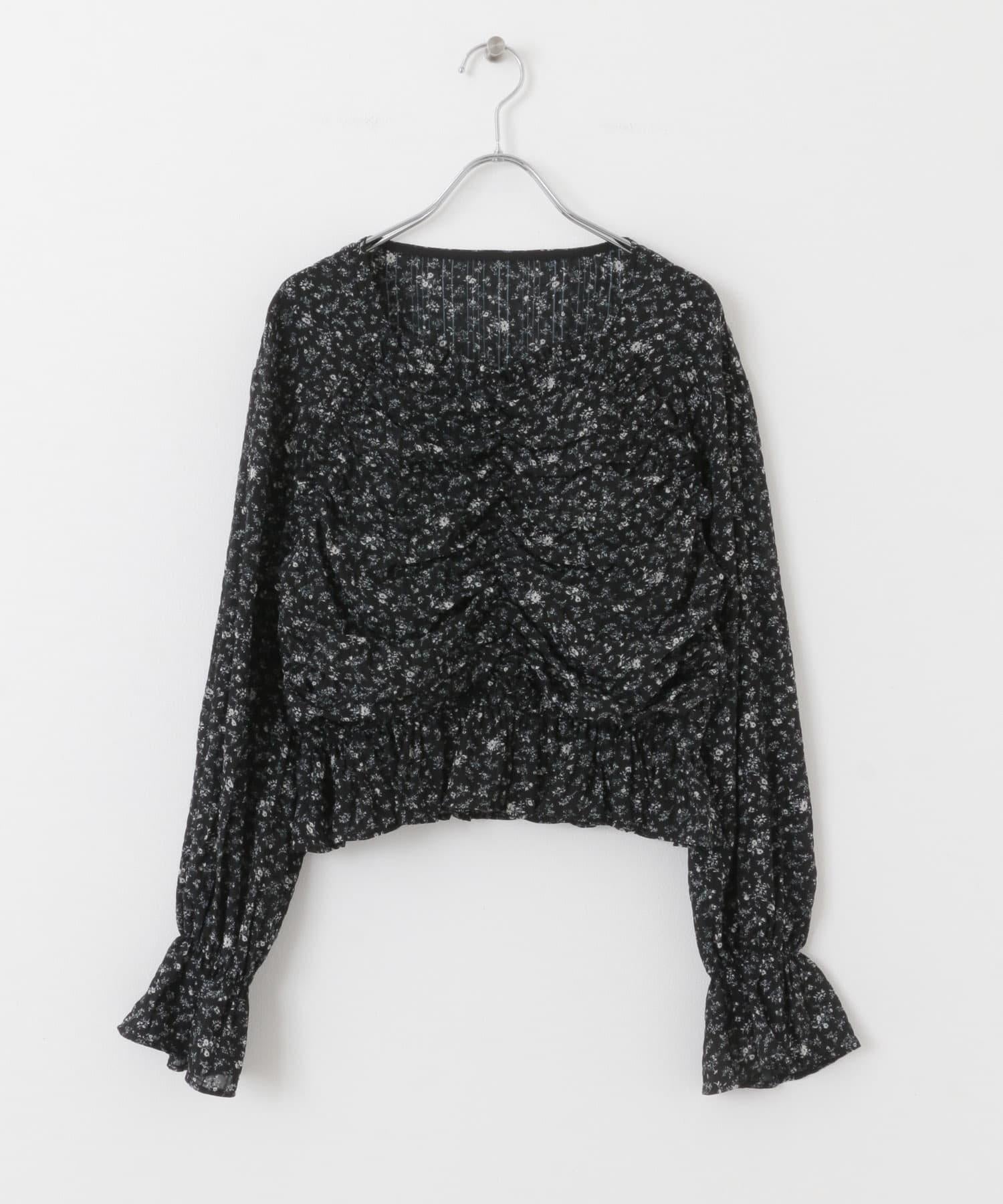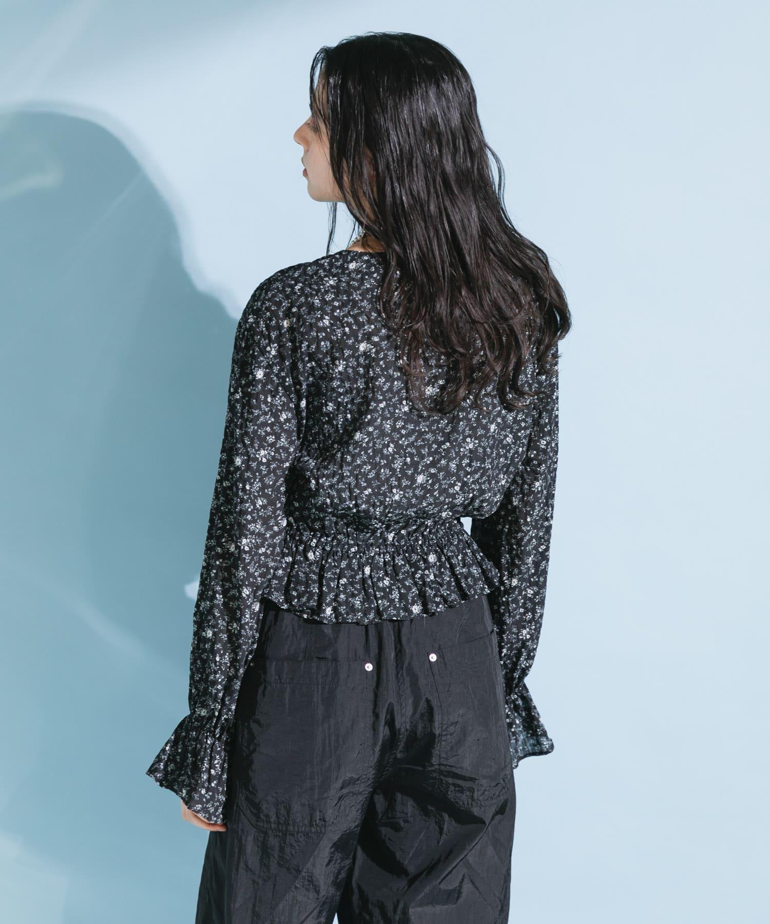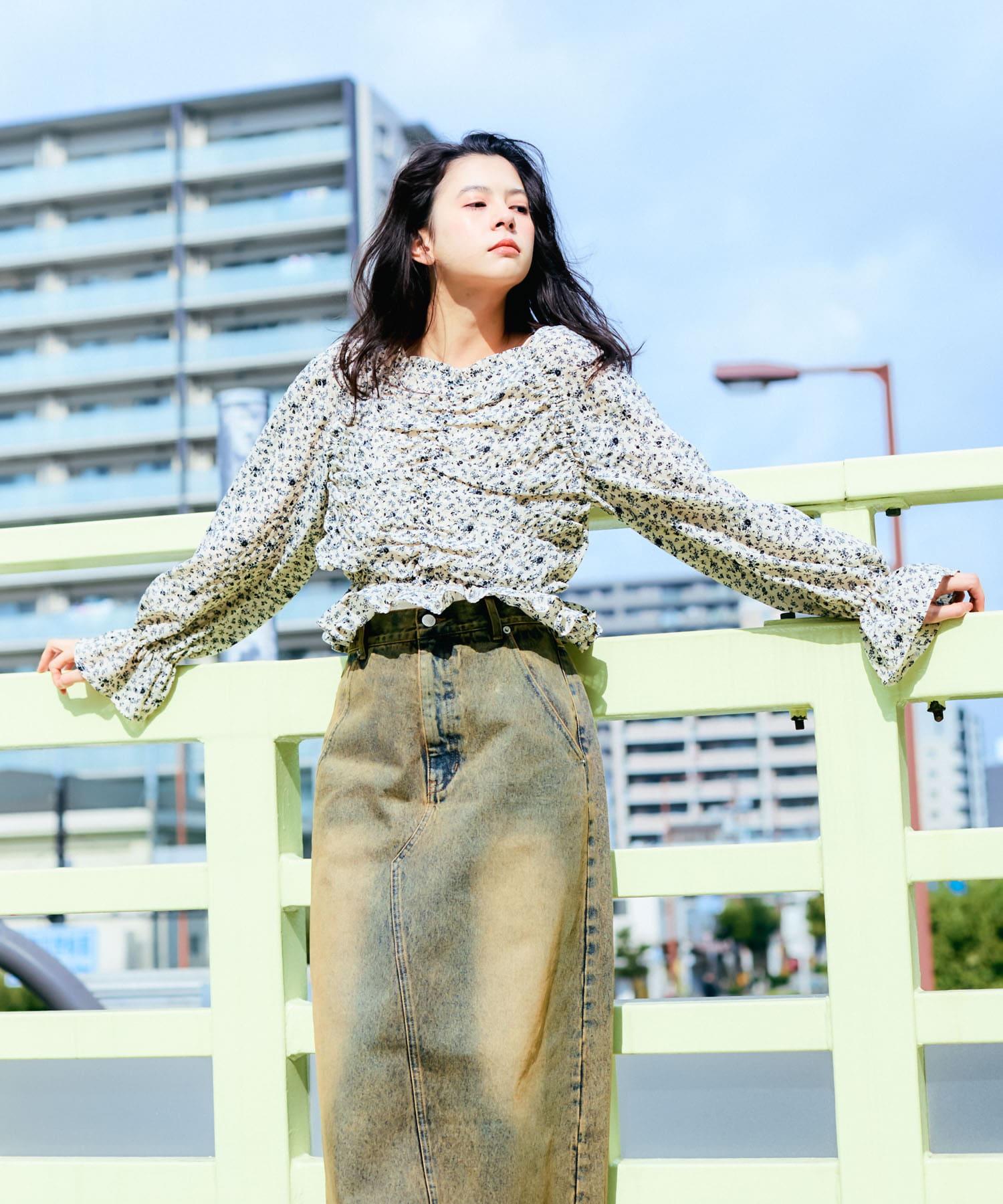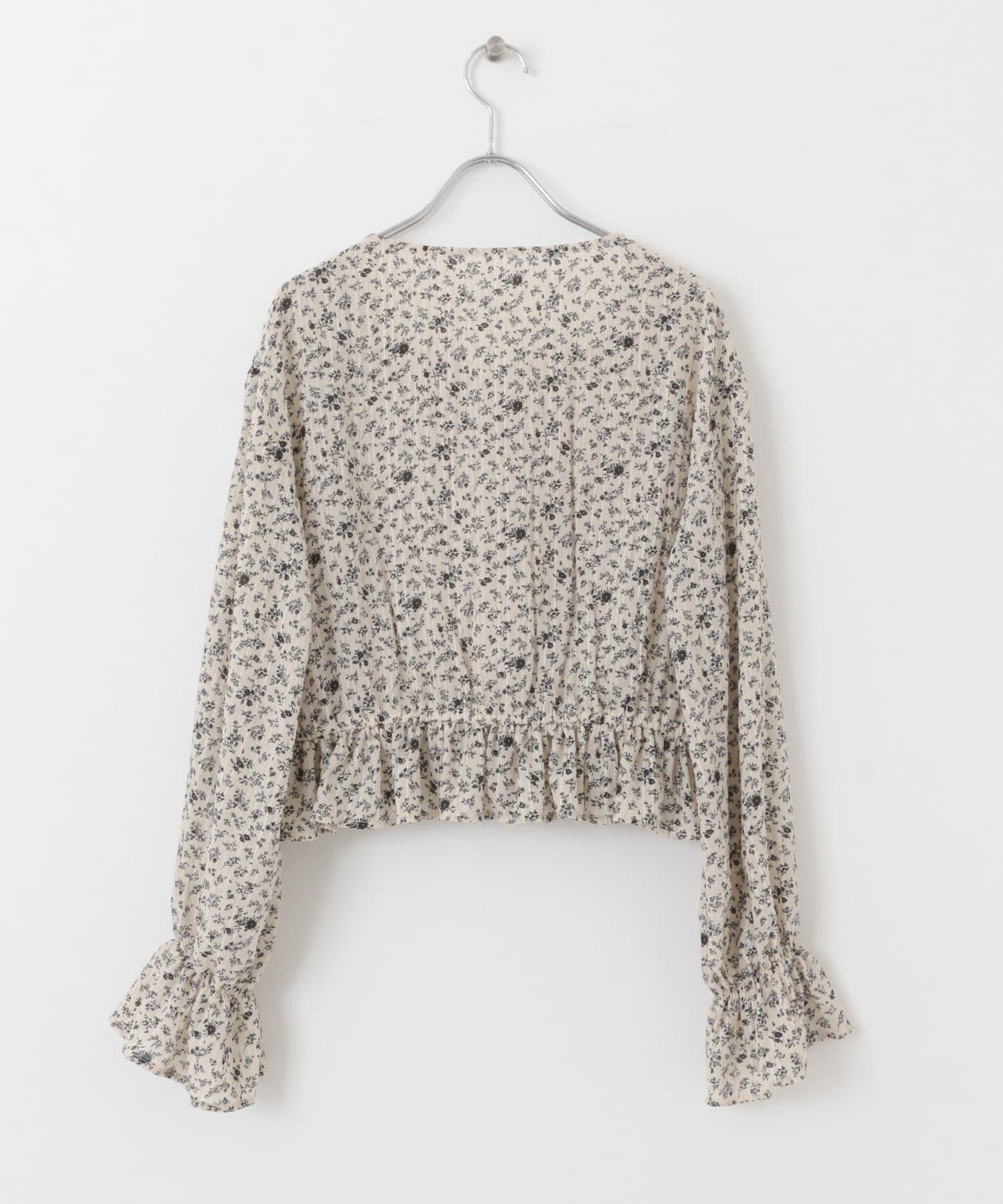 這款上衣的設計就像長裙和半身裙疊穿在一起。薄透而不甜膩的單色花朵圖案給人一種迷人的印象。剪裁的長度讓人眼前一亮,而方形的設計則將肩部的線條展現得淋漓盡致。有兩種顏色可供選擇,營造復古氛圍。