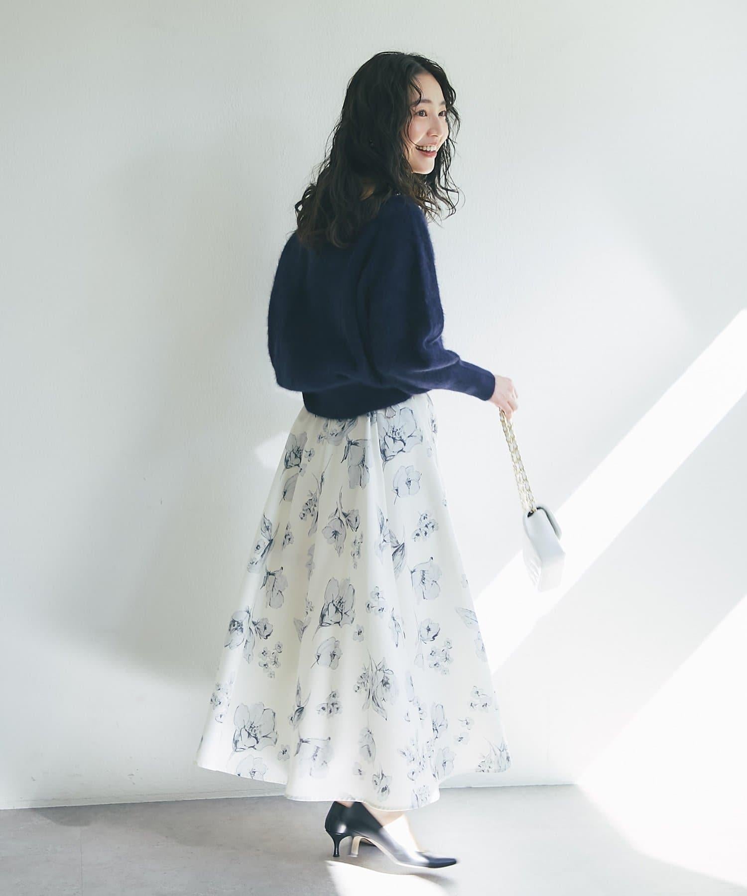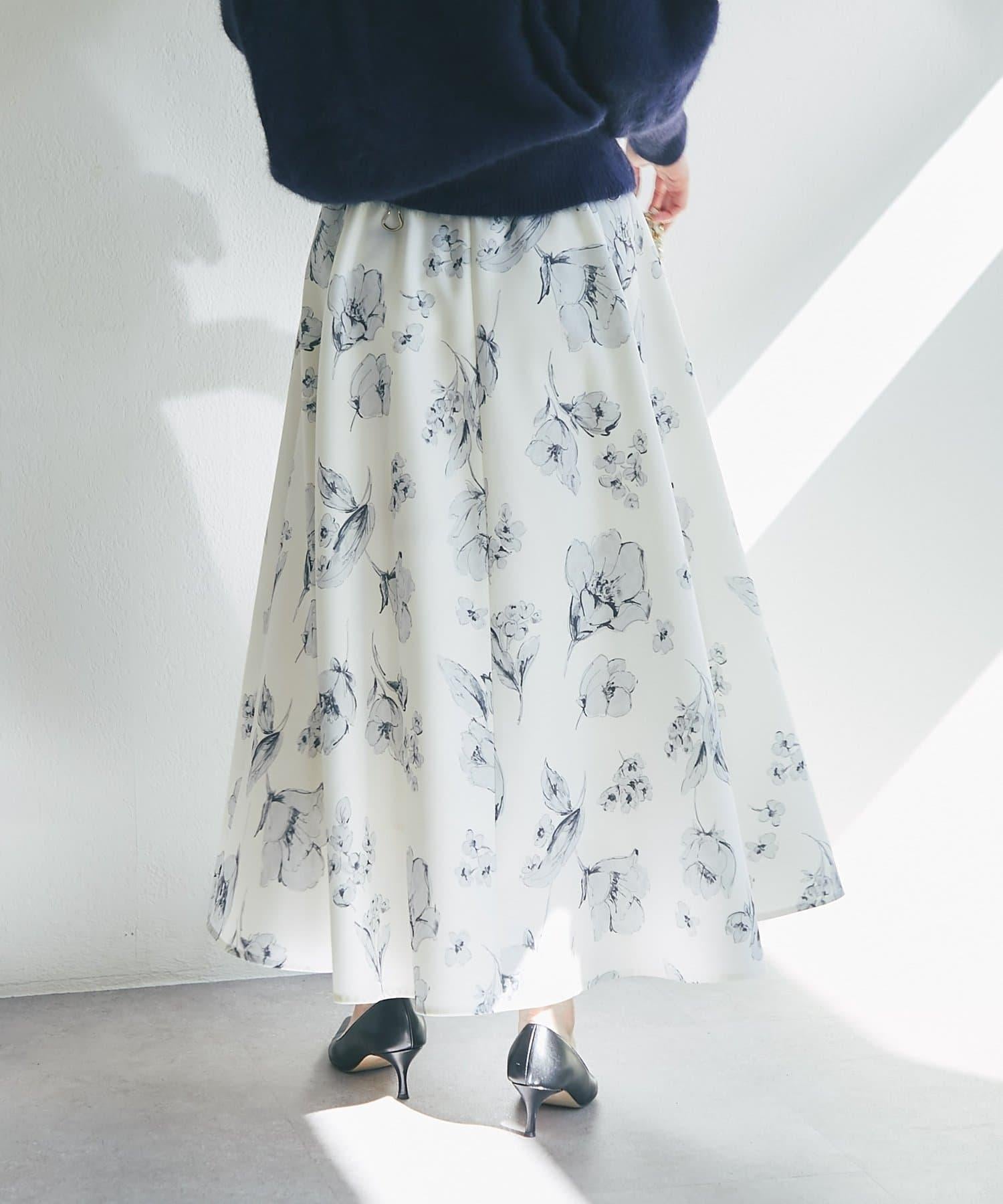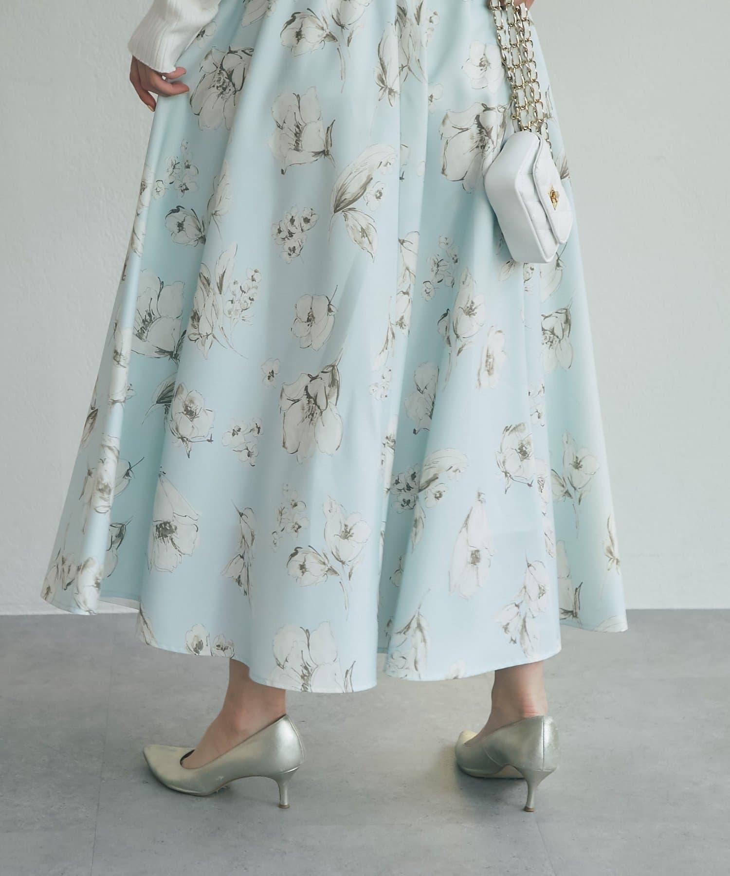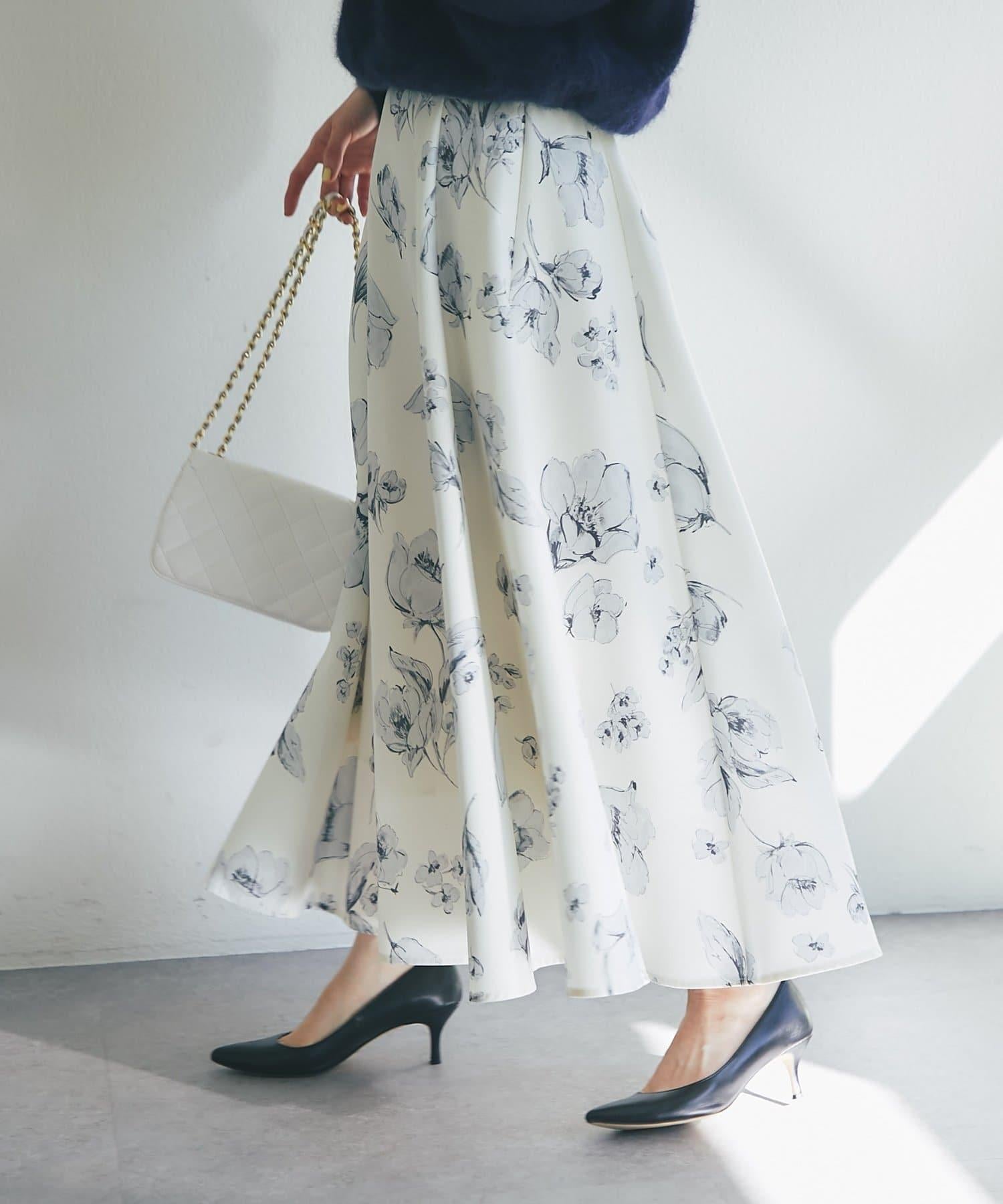 帶有精緻水彩觸感的喇叭裙,花朵圖案營造出女性的柔美氛圍。