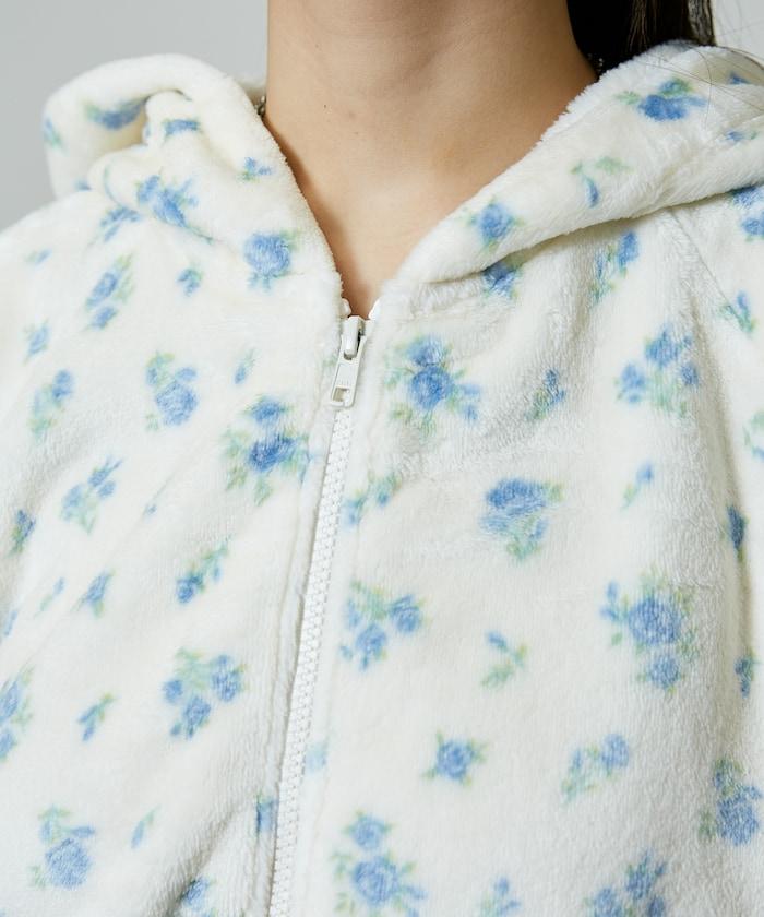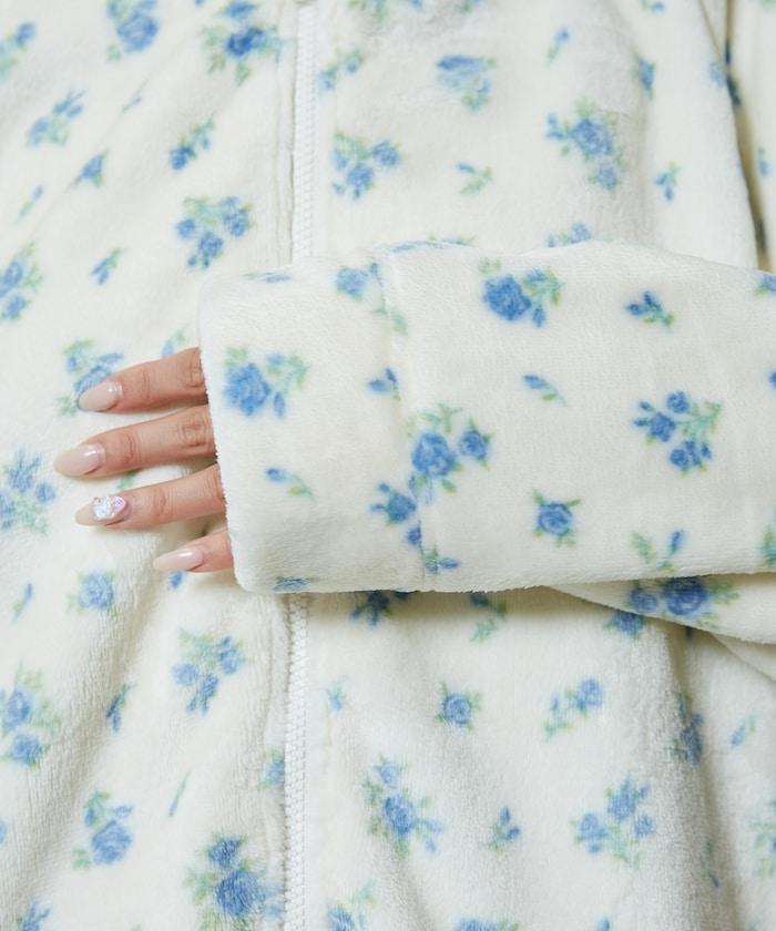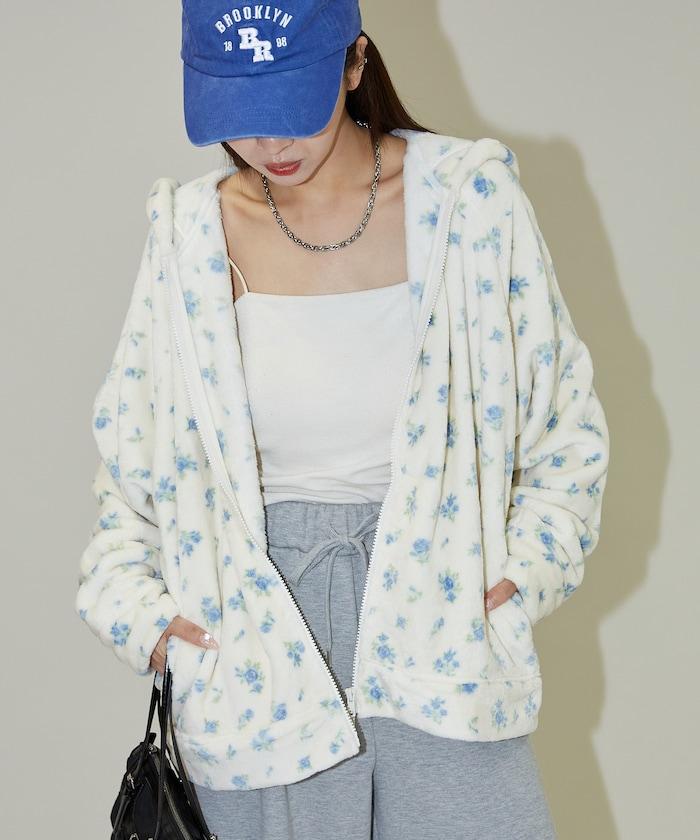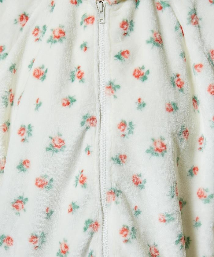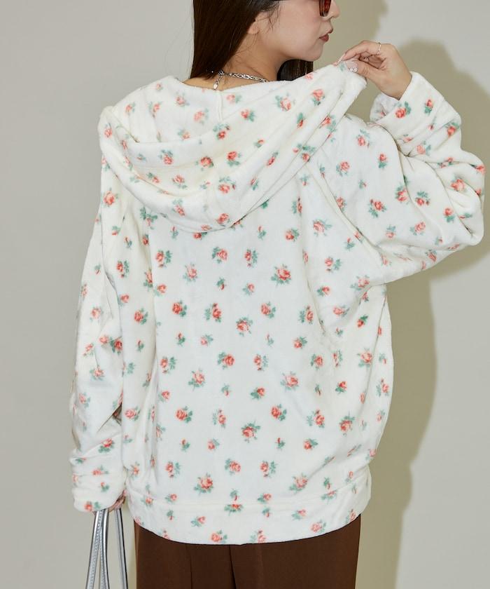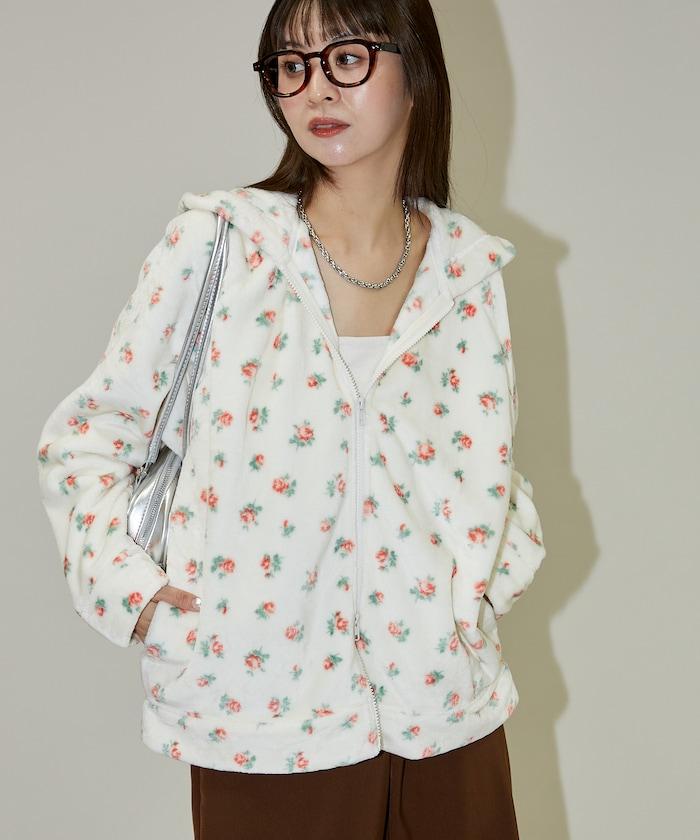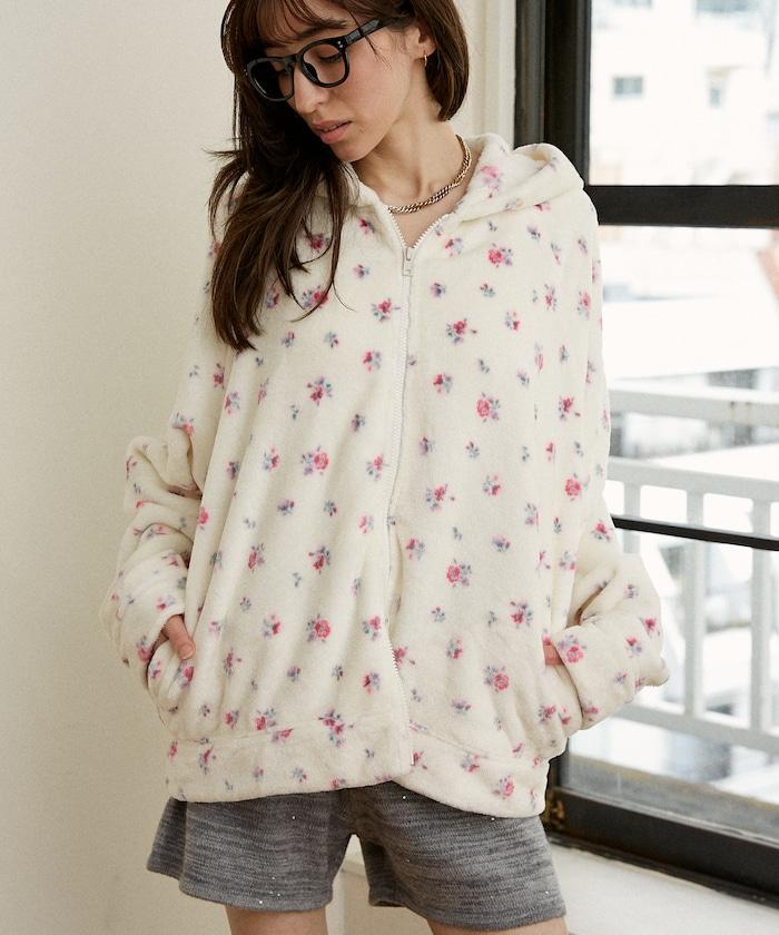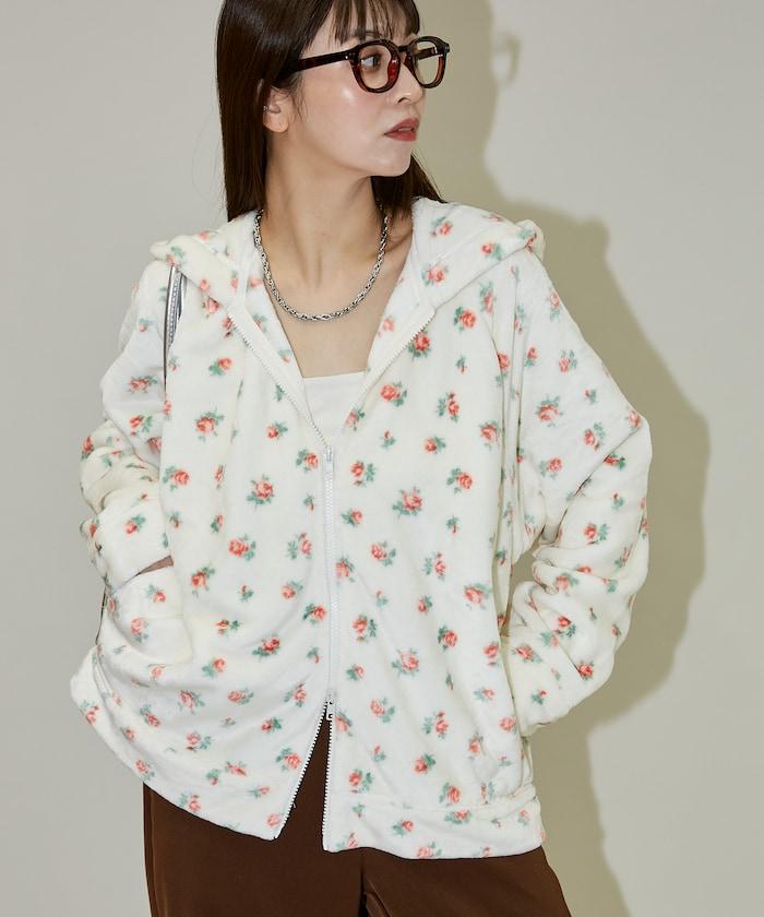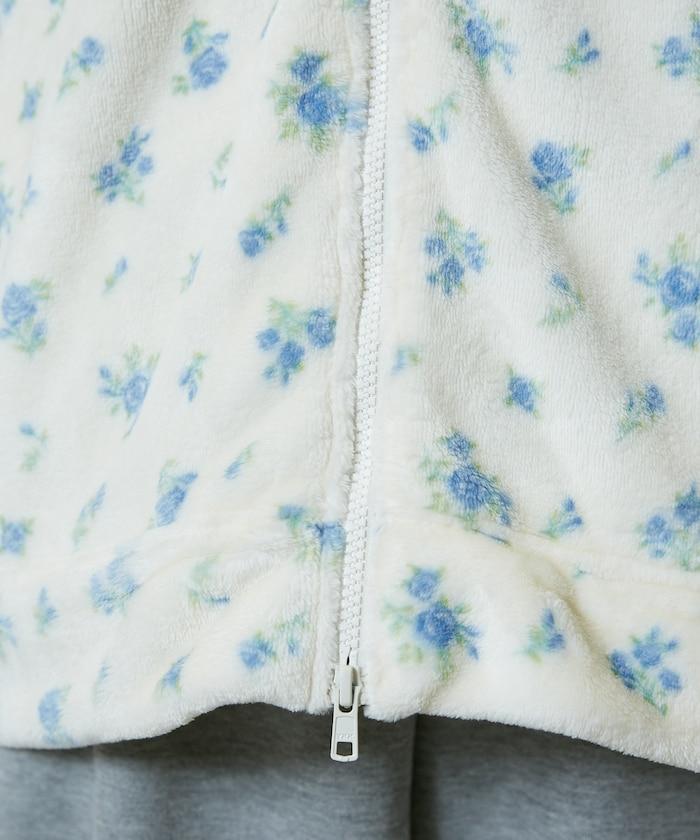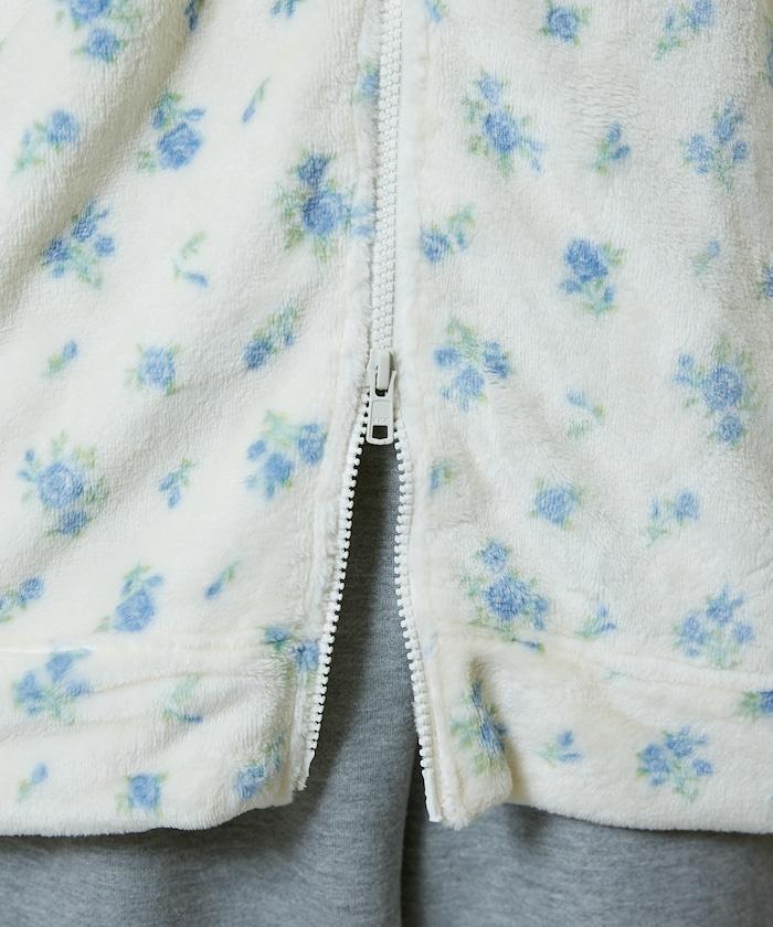 花卉印花抓絨拉鍊開衫