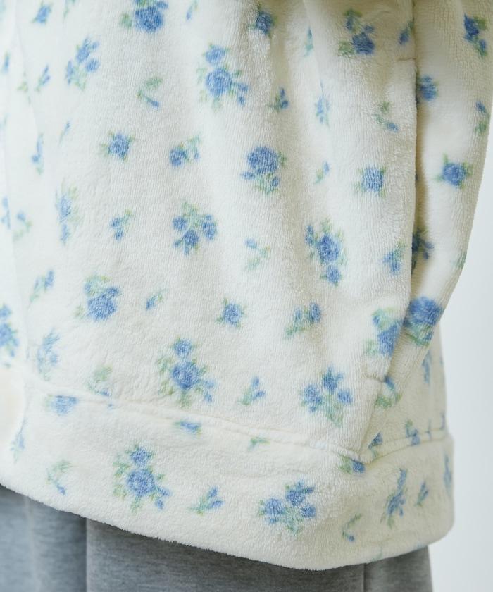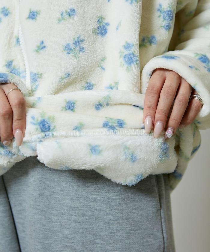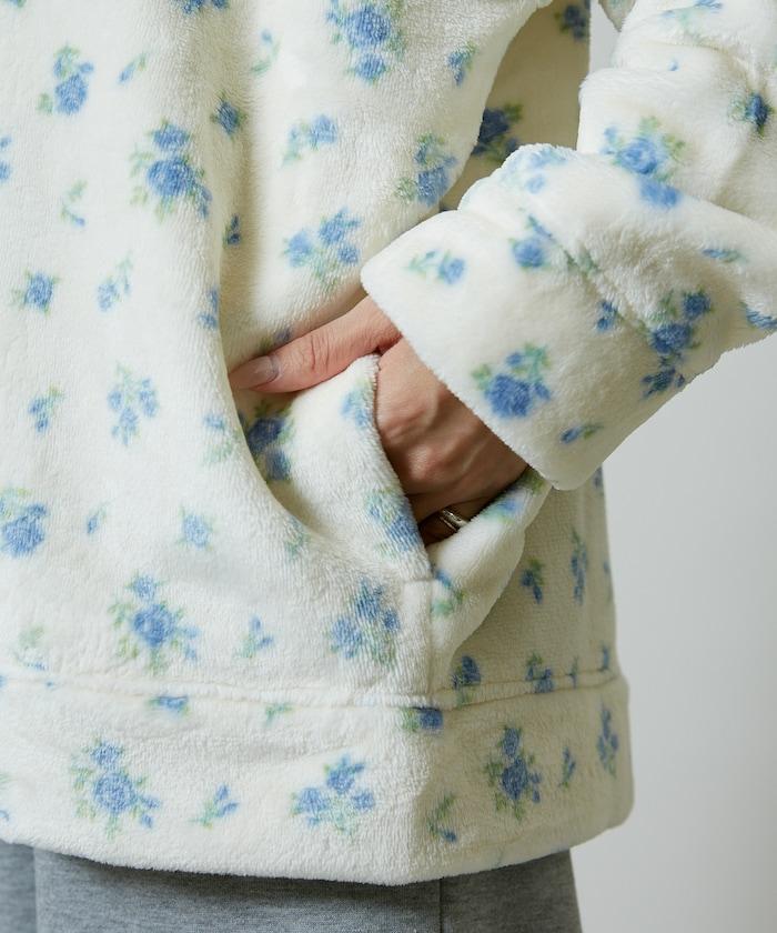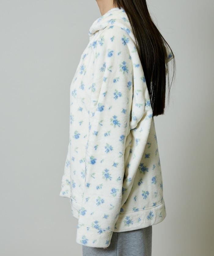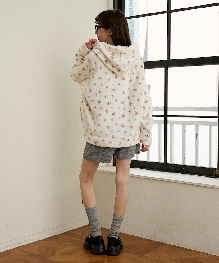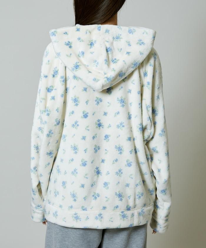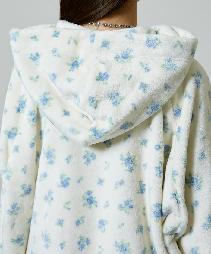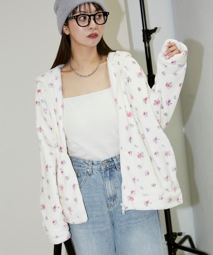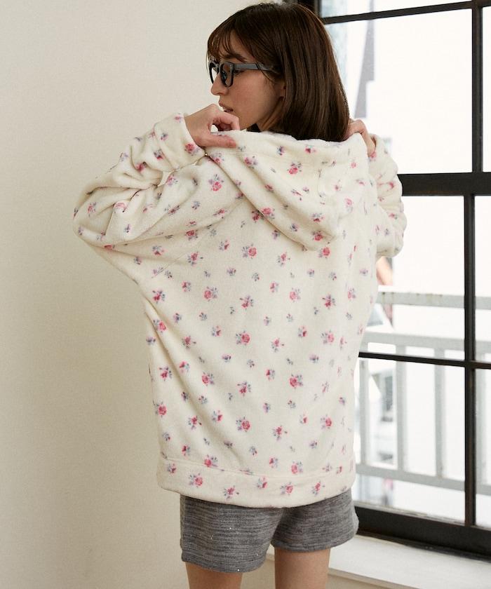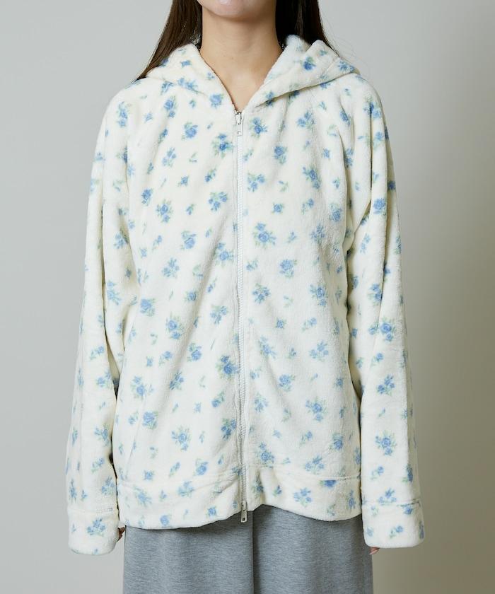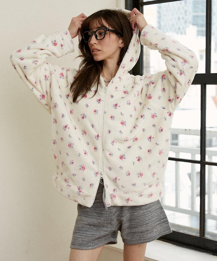 花卉印花抓絨拉鍊開衫