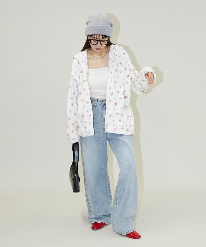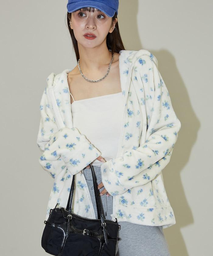 整個表面的花卉印花營造出可愛輕鬆的秋冬風格。