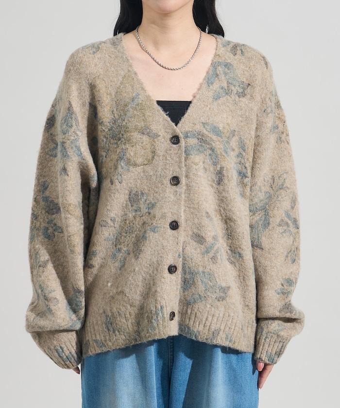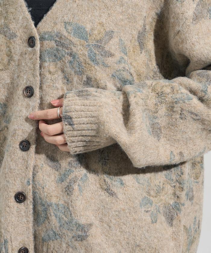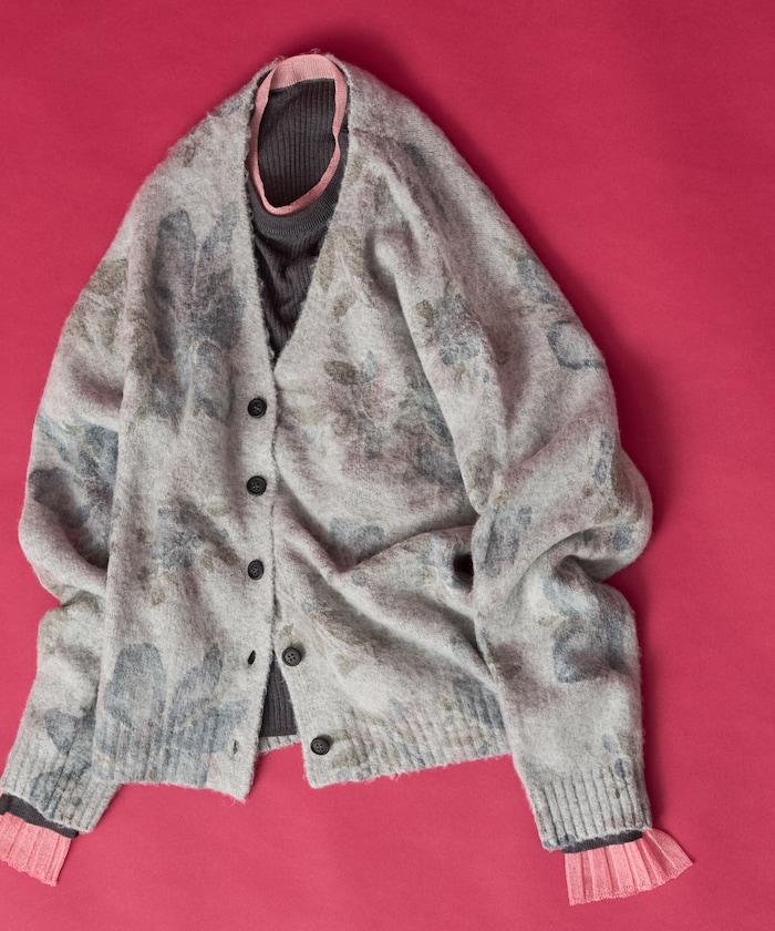 沉悶色彩搭配花朵印花,迷人可愛的開襟羊毛衫。