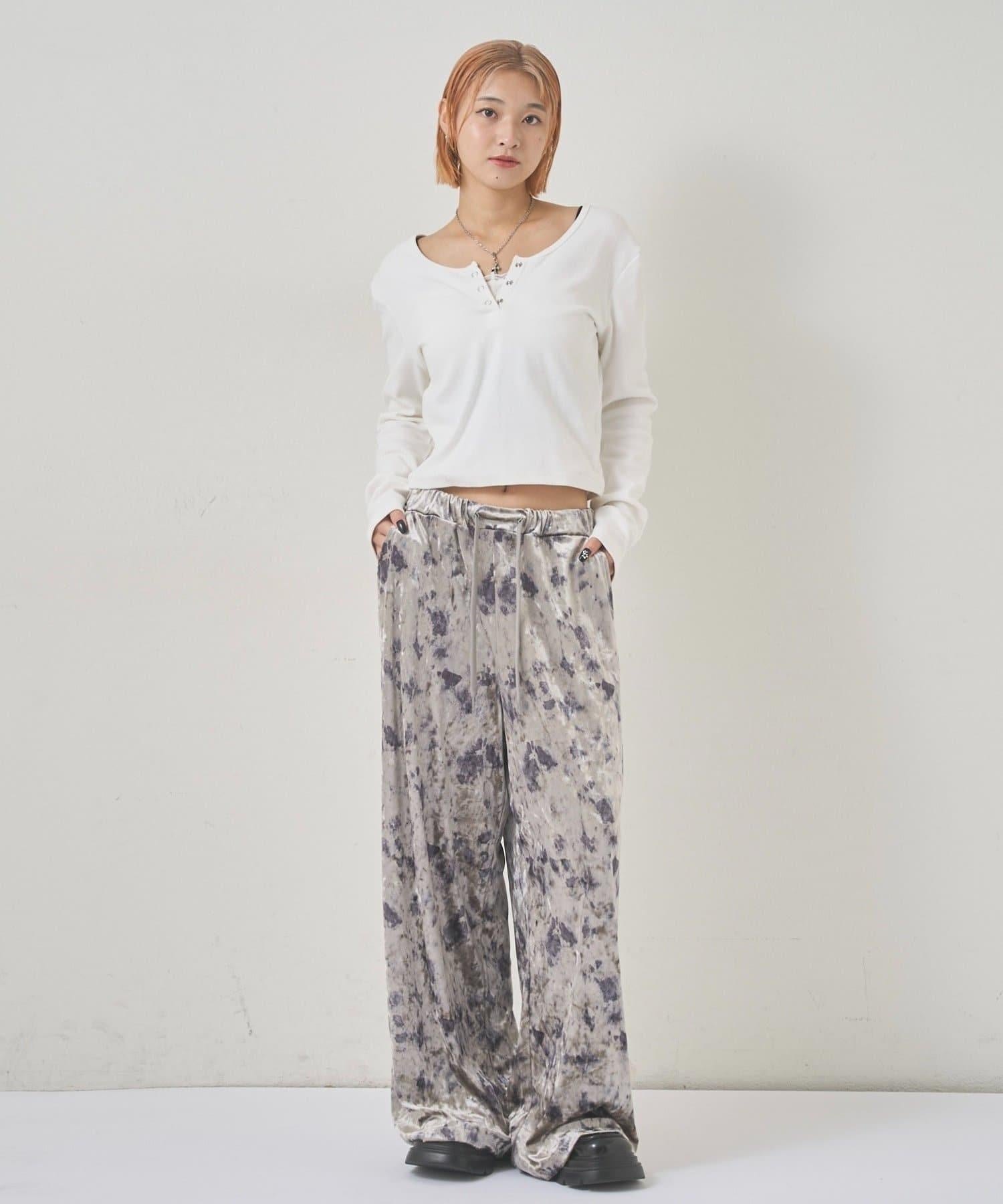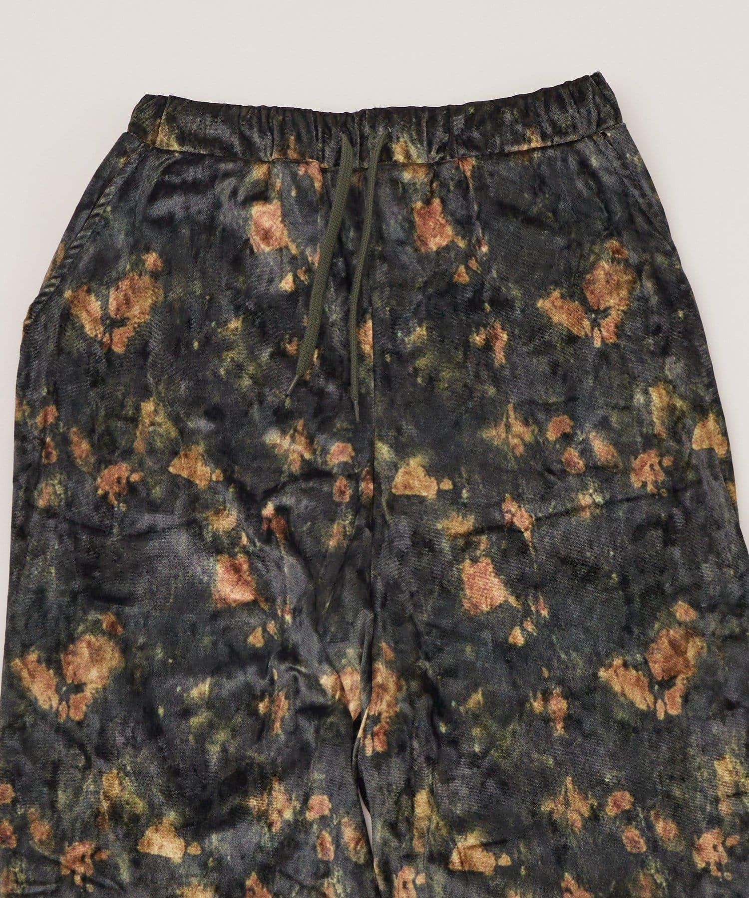 花卉圖案天鵝絨休閒褲