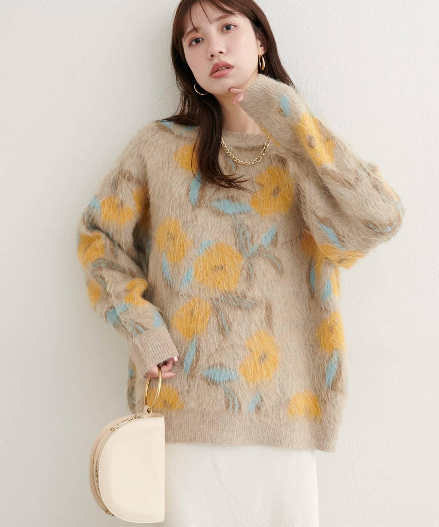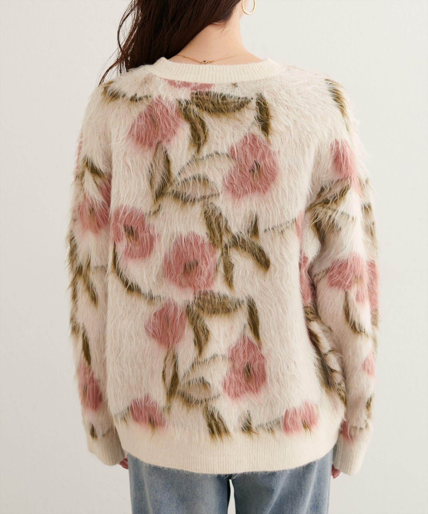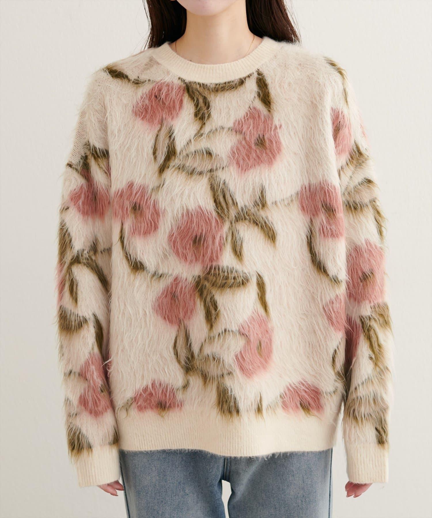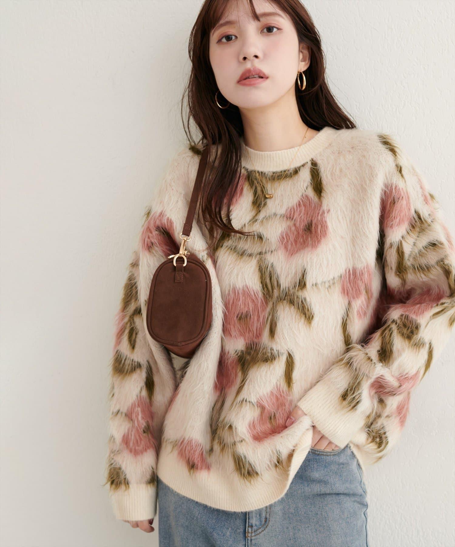 花卉提花蓬鬆針織套頭衫柔美溫婉。