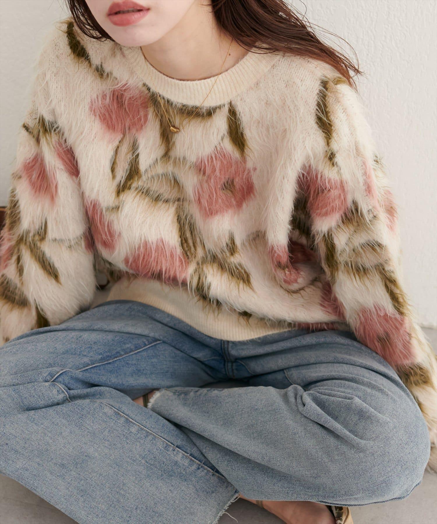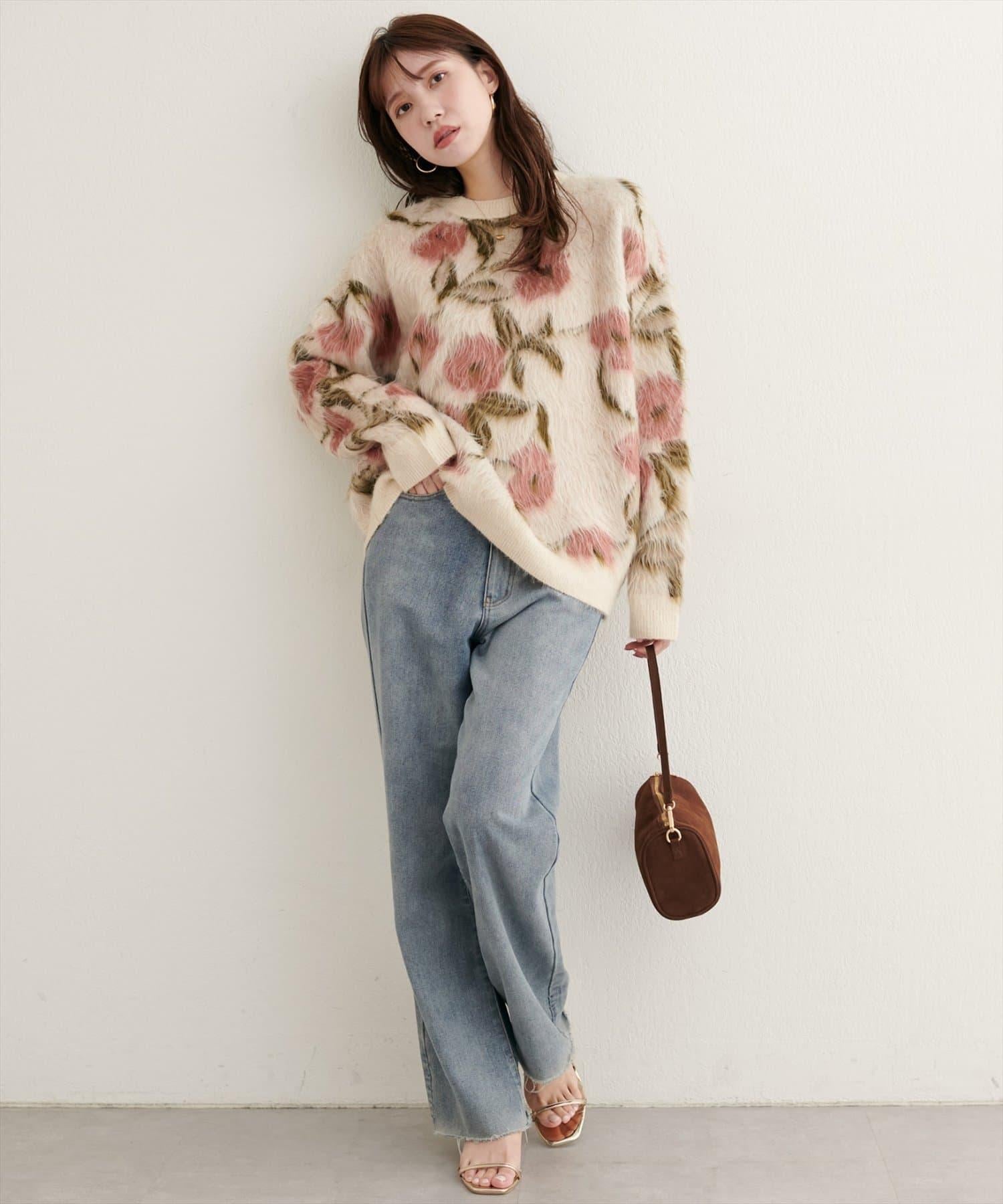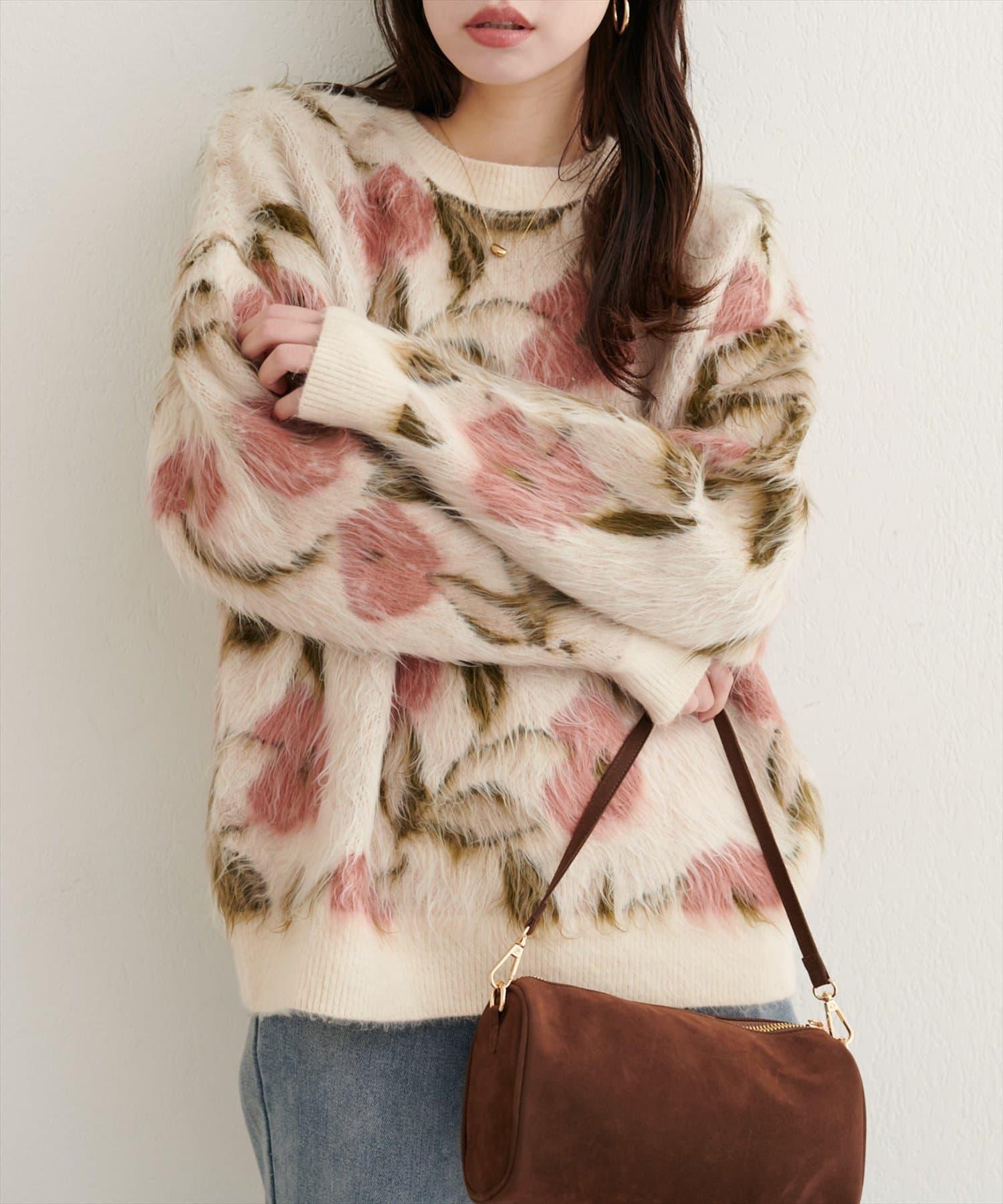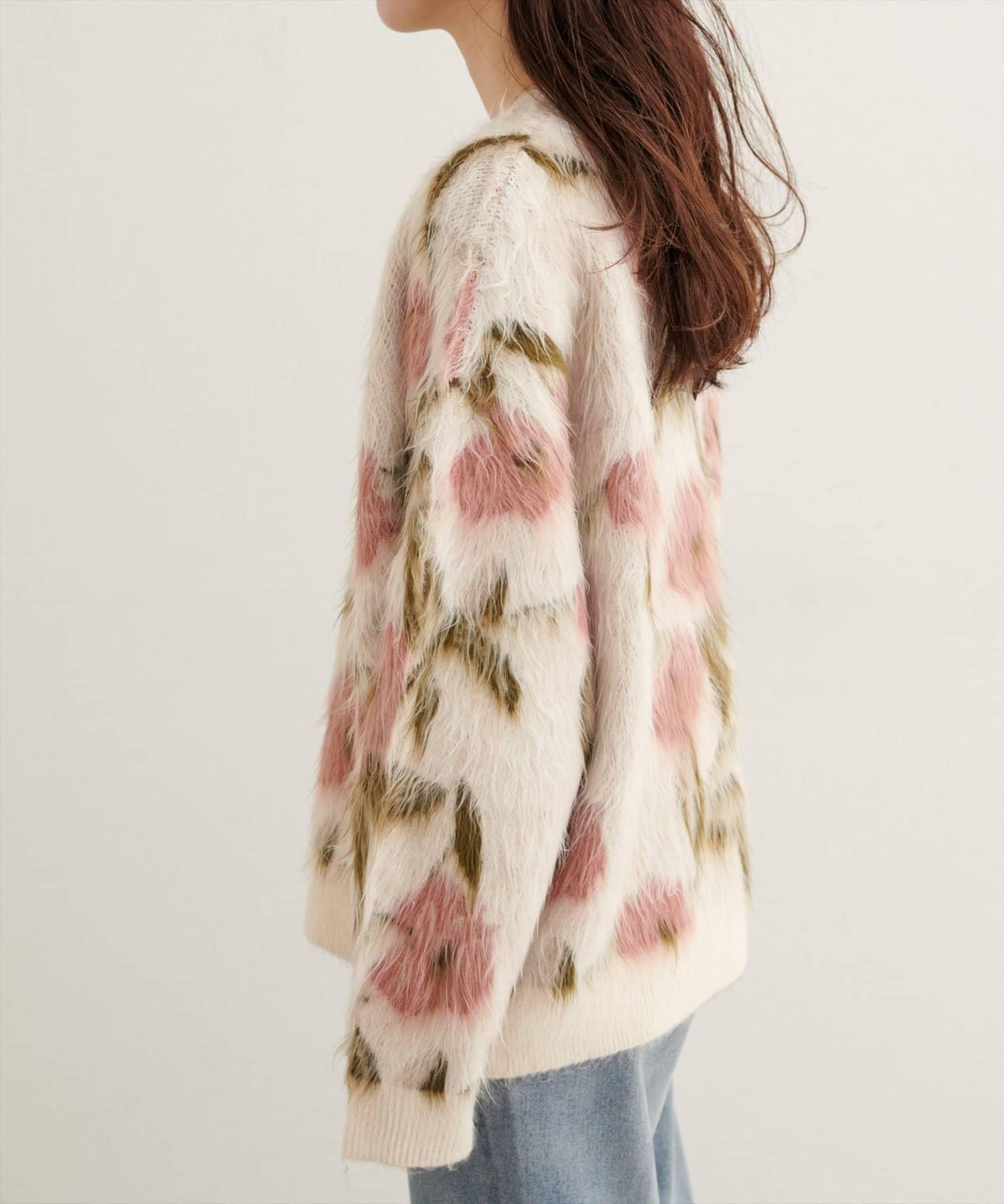 花卉提花蓬鬆針織套頭衫柔美溫婉。