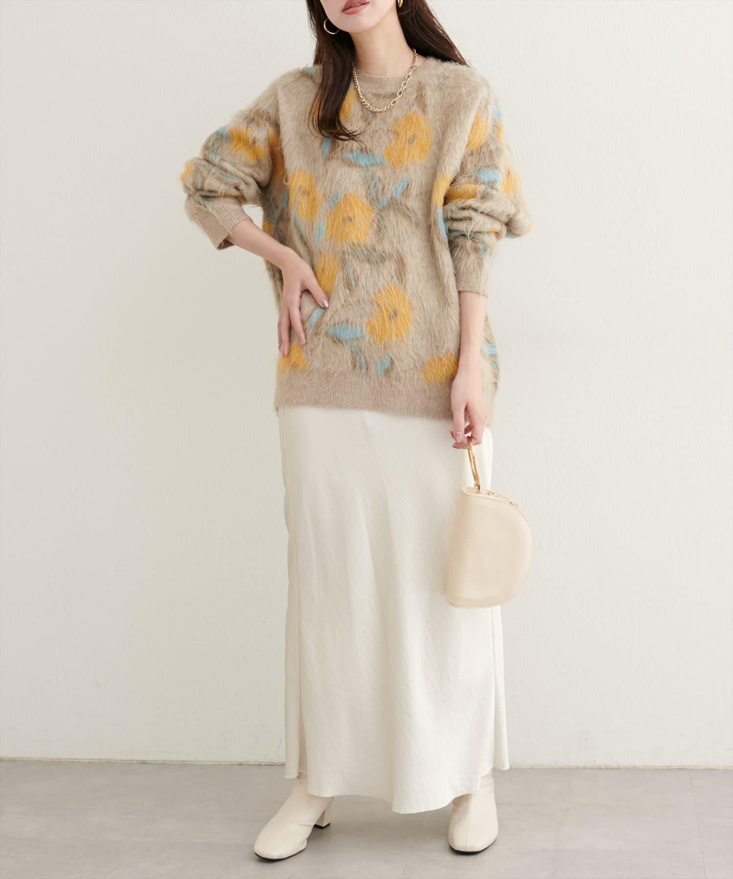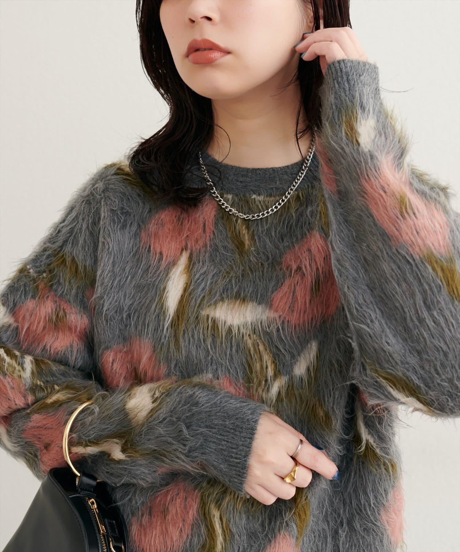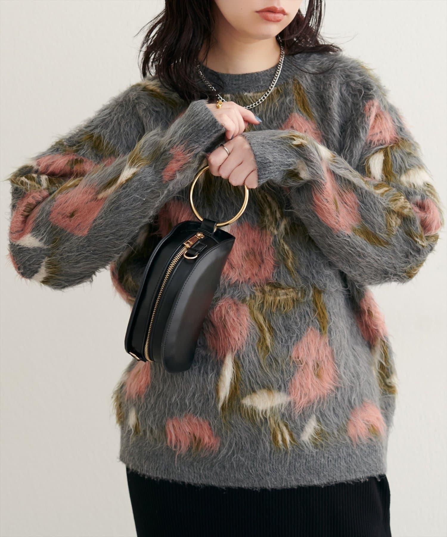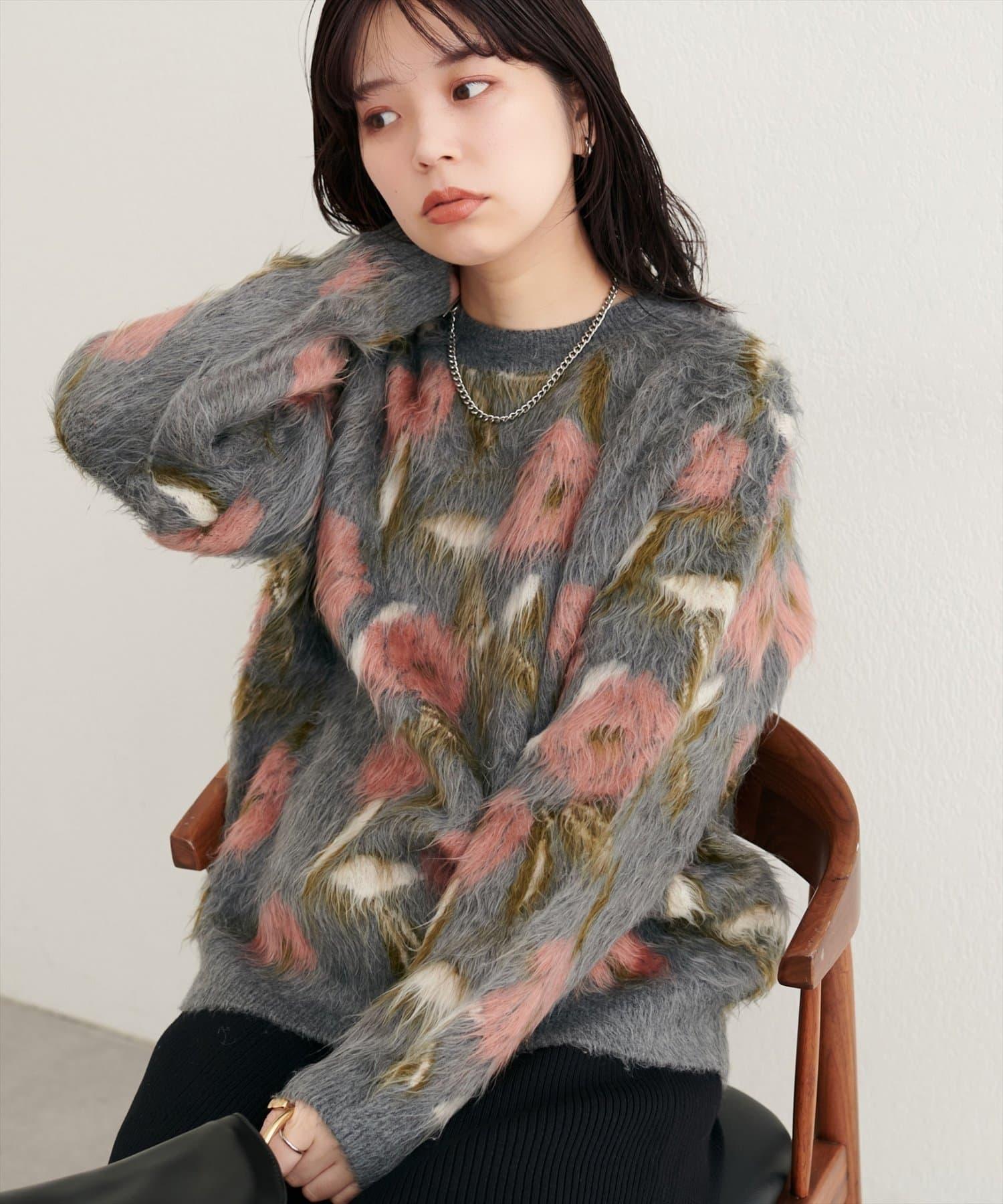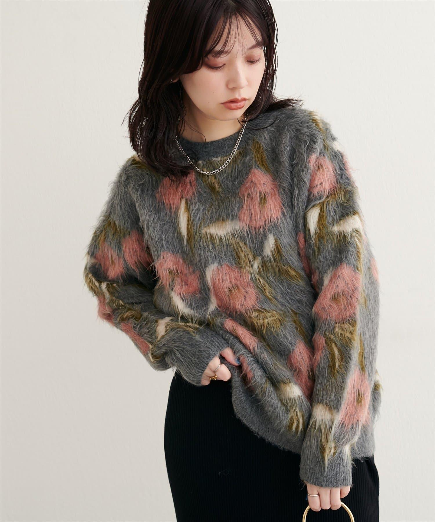 花卉提花蓬鬆針織套頭衫柔美溫婉。