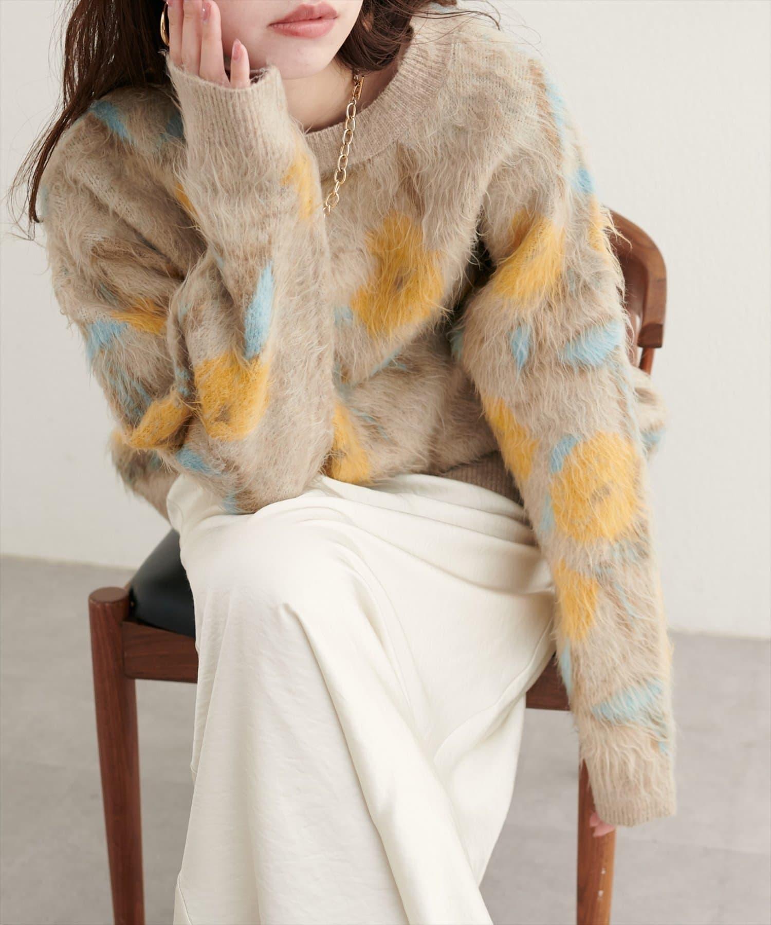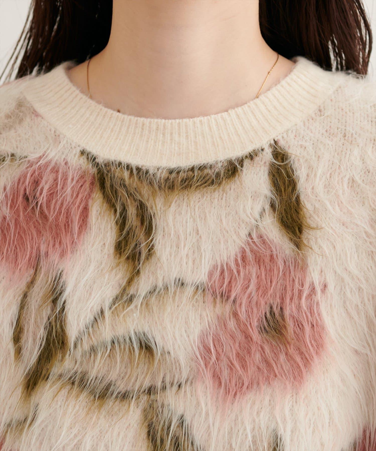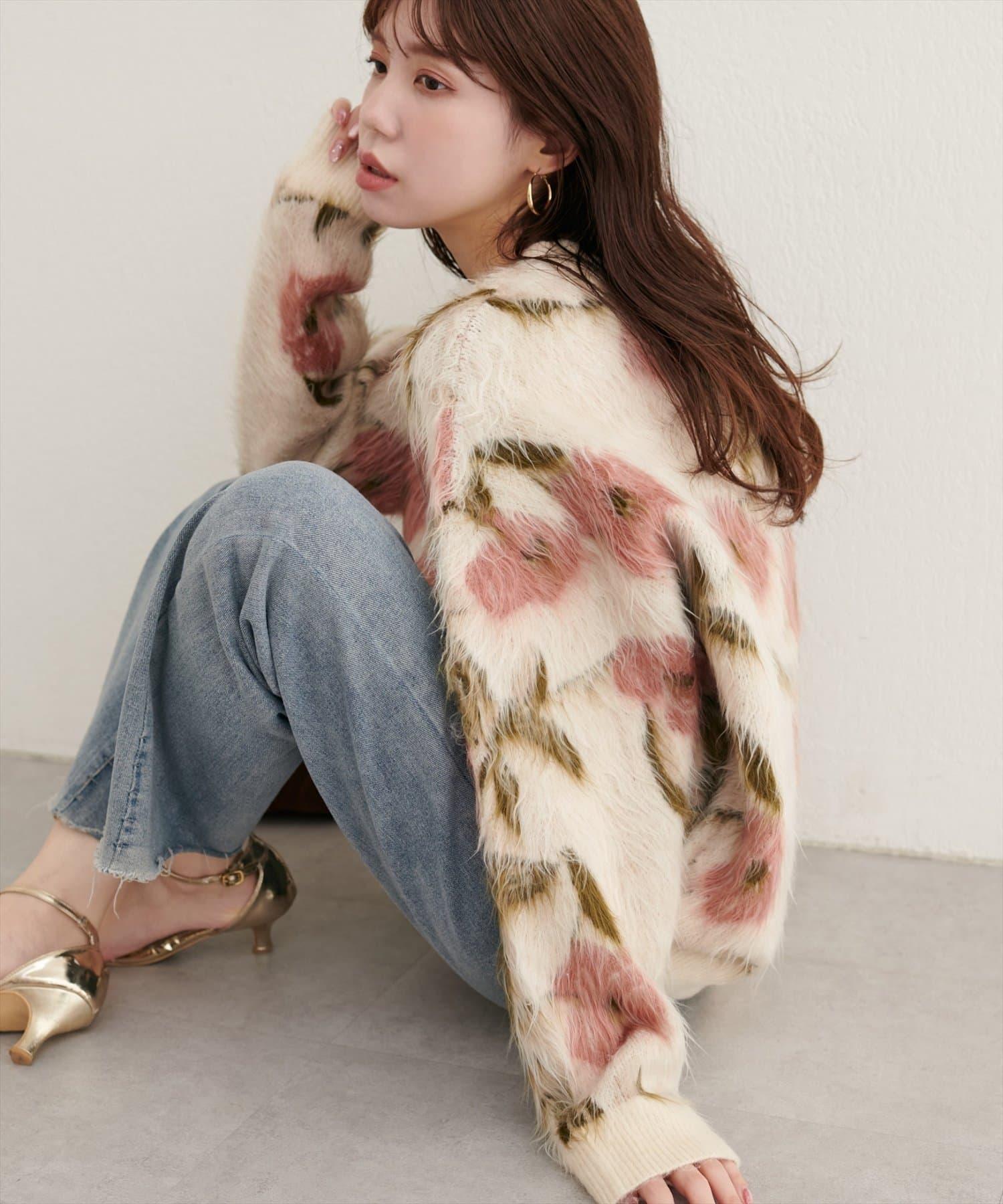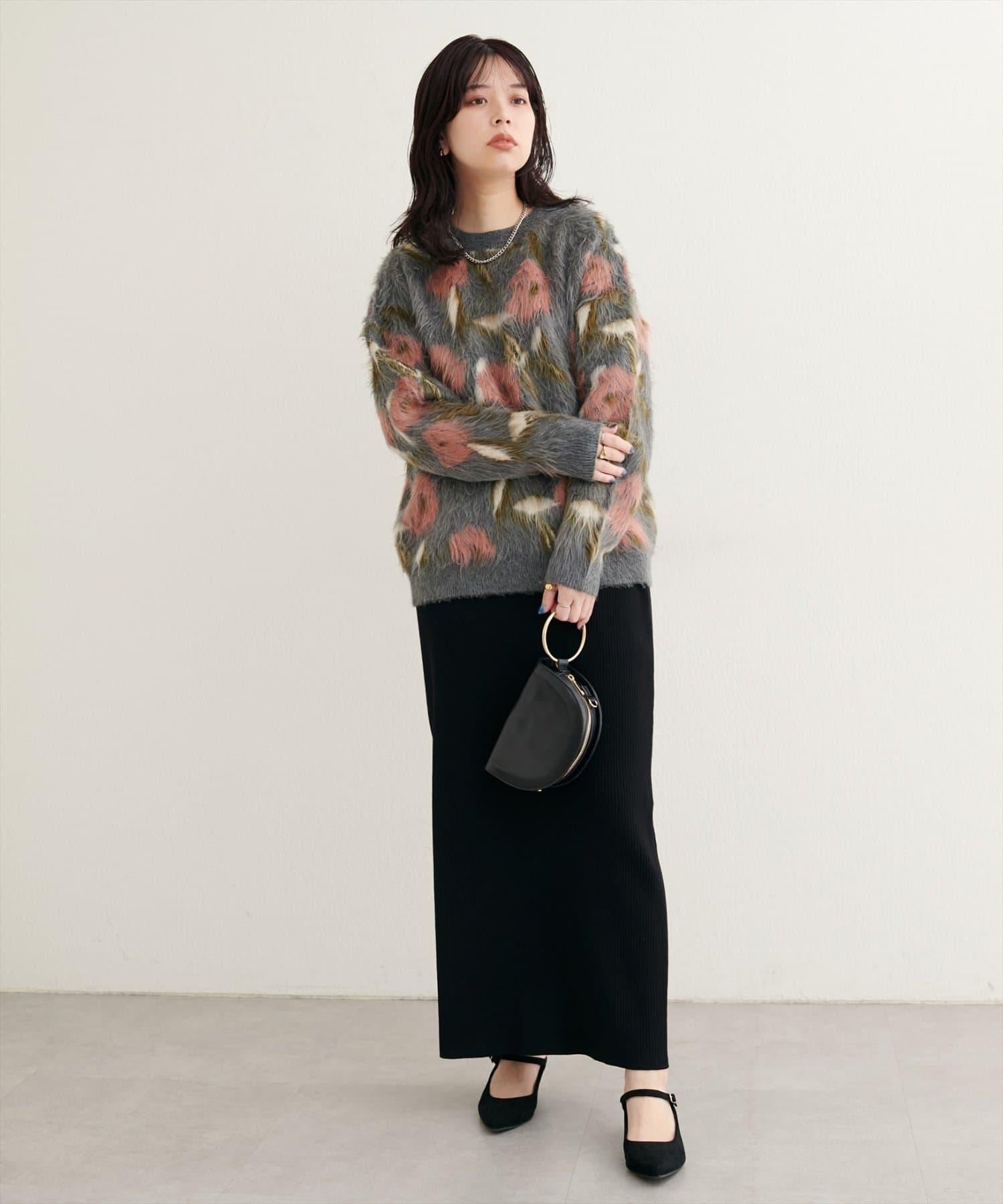 花卉提花蓬鬆針織套頭衫柔美溫婉。