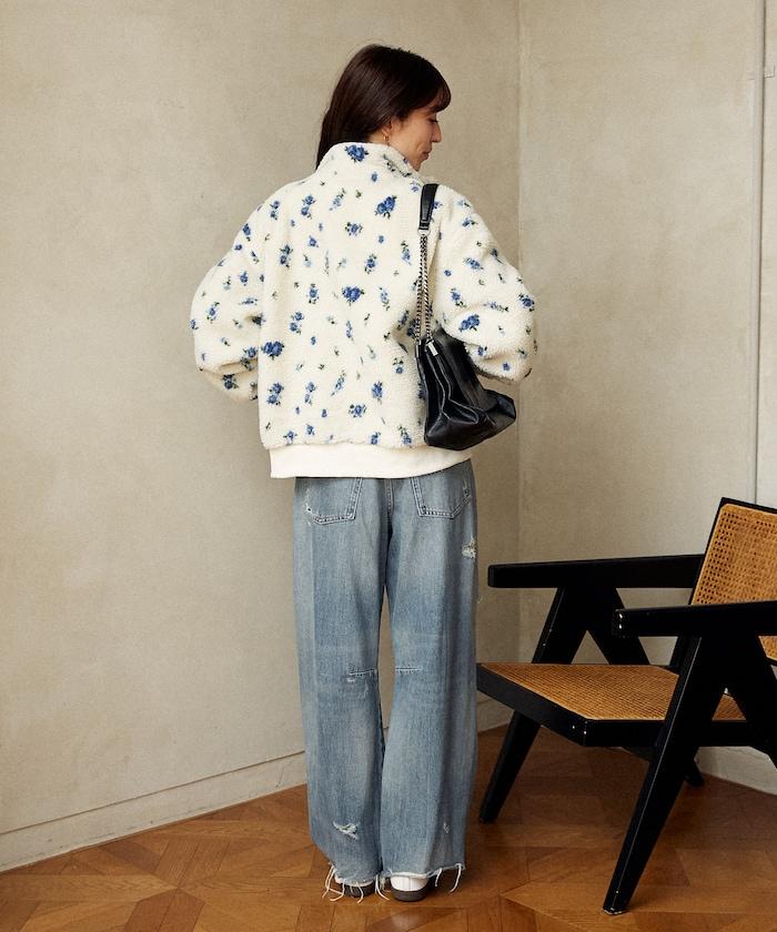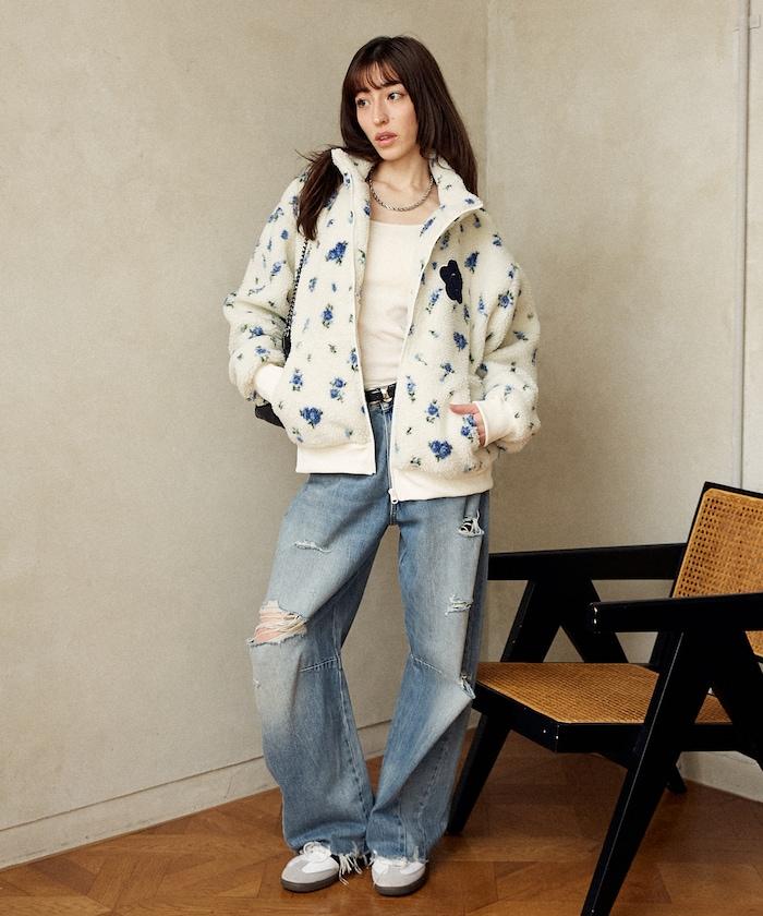 如果與牛仔褲搭配出休閒感,那麼花朵圖案在冬季的漫步搭配中也會非常好看。