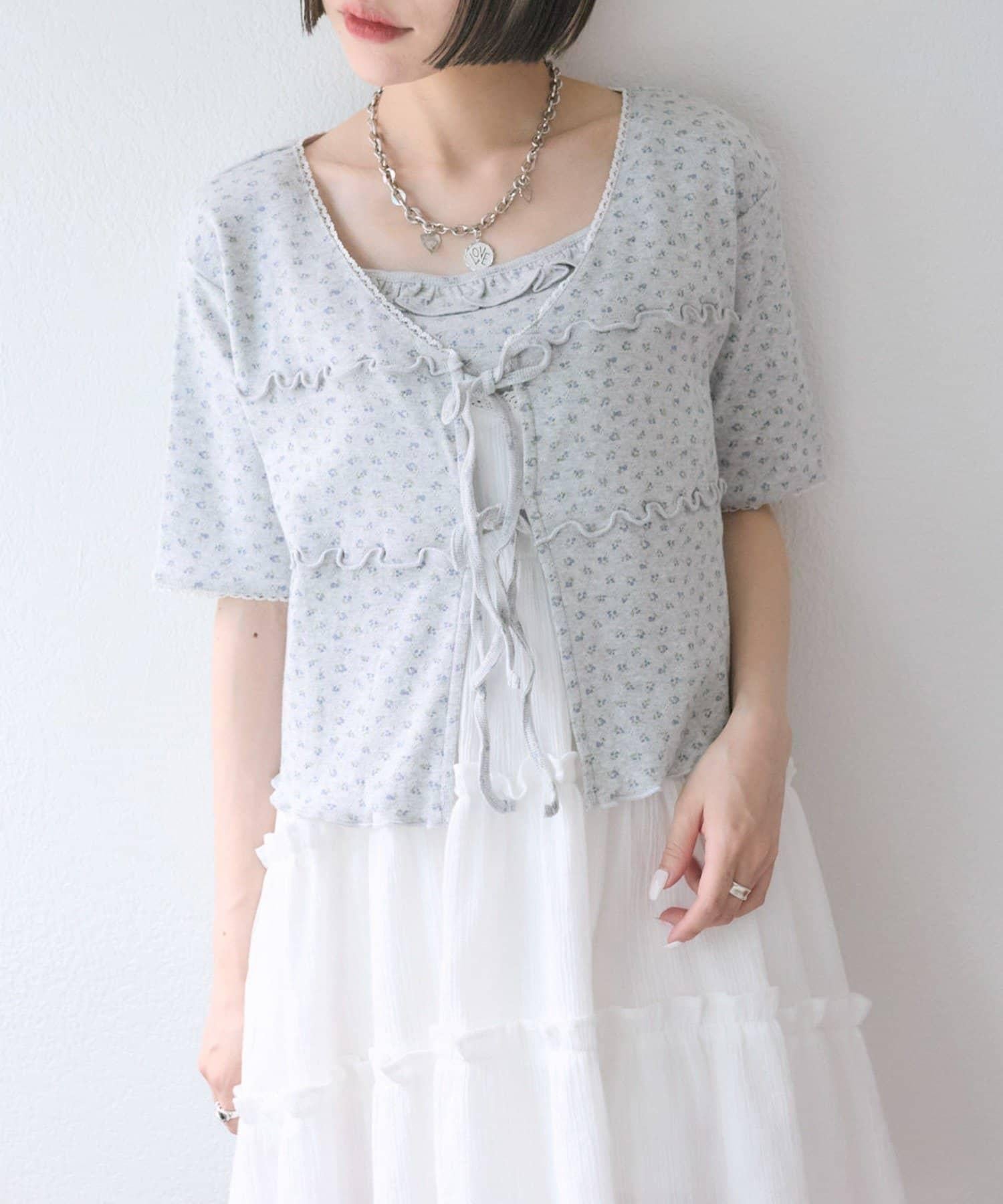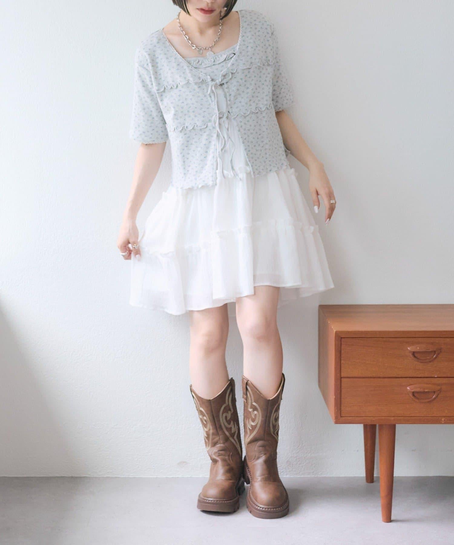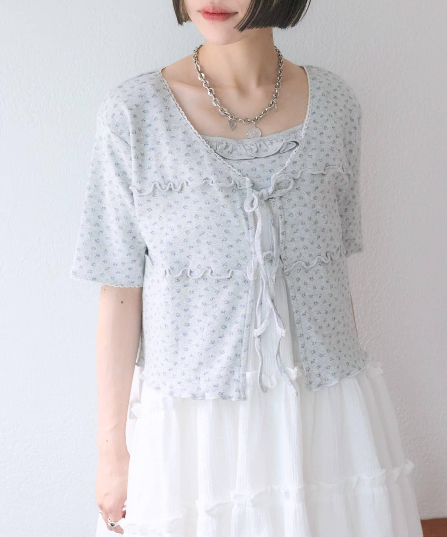 可愛的套裝,帶有少女的花朵圖案和大量褶邊!