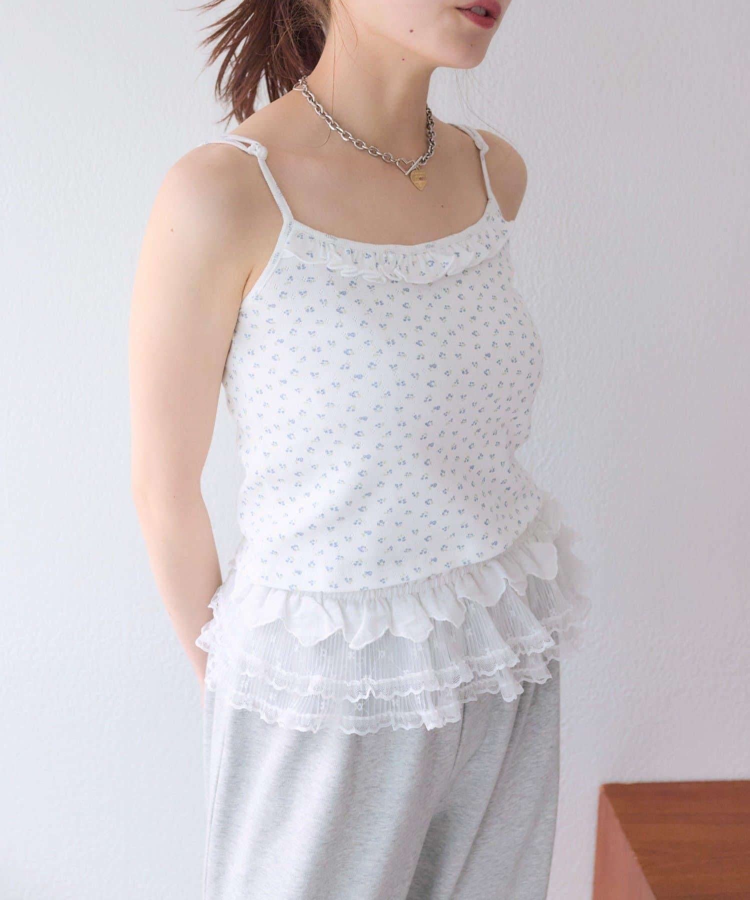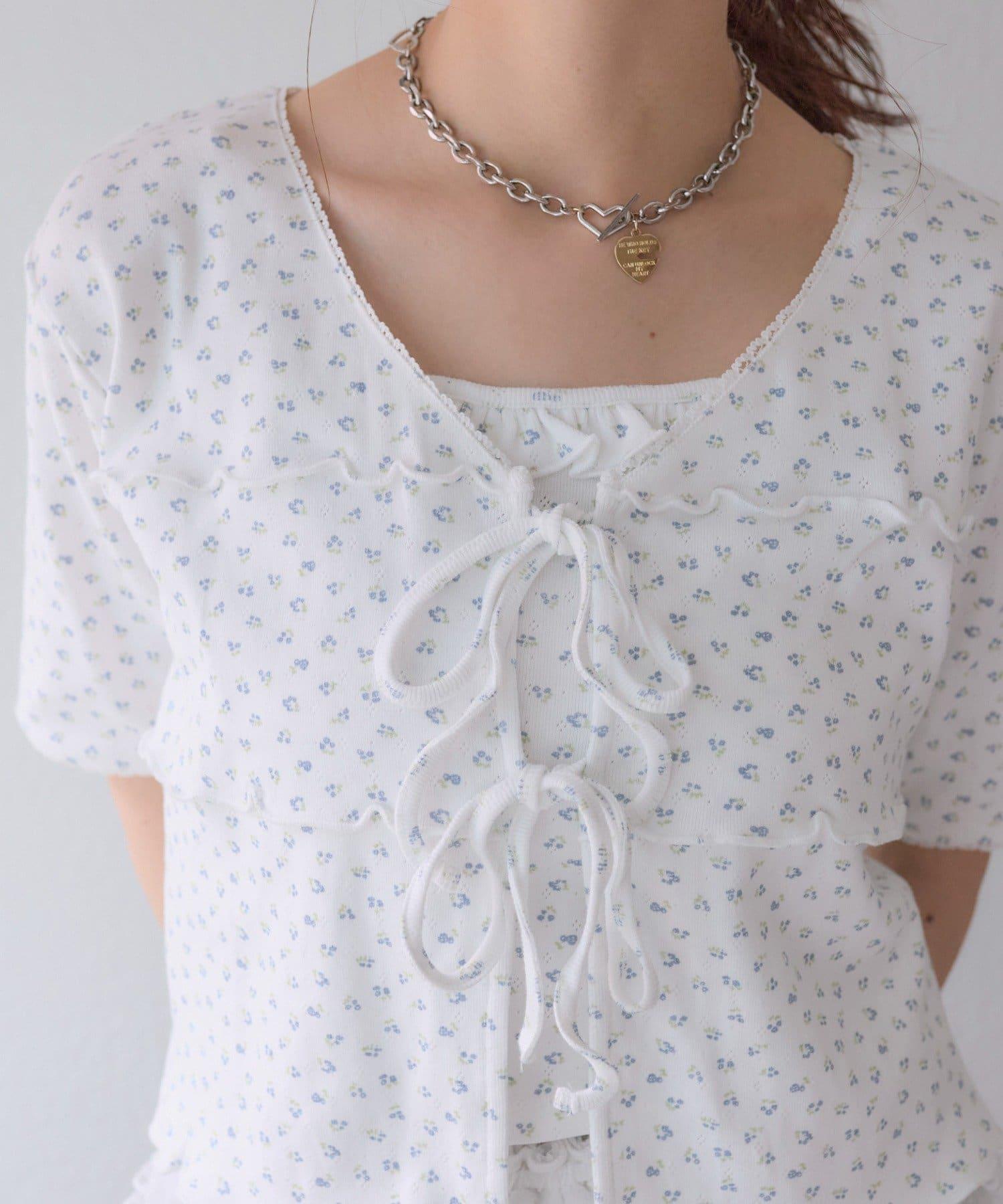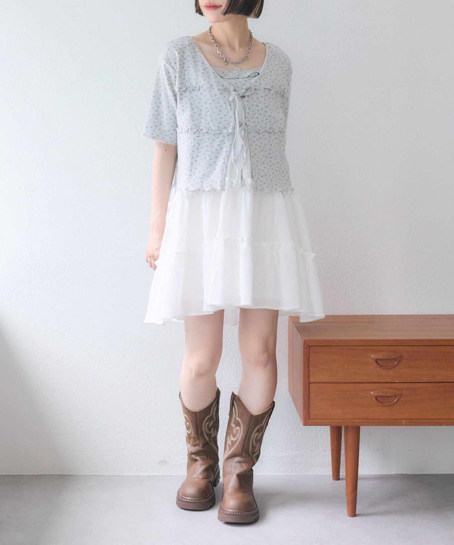 可愛的套裝,帶有少女的花朵圖案和大量褶邊!
