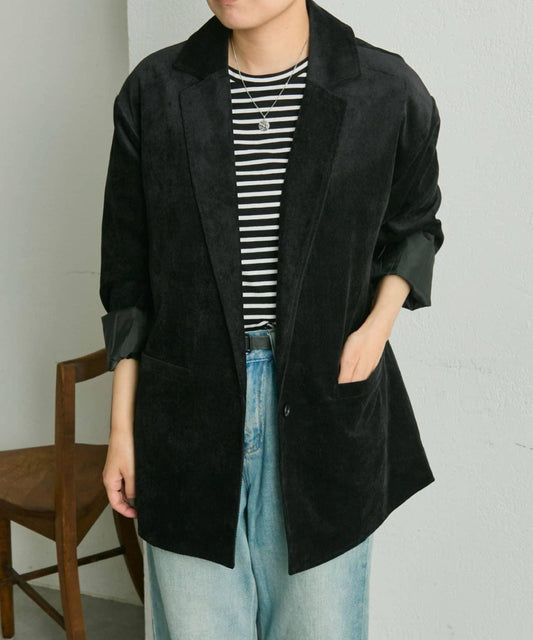 蕾絲的顏色是黑色的,就像夾克的主體一樣。