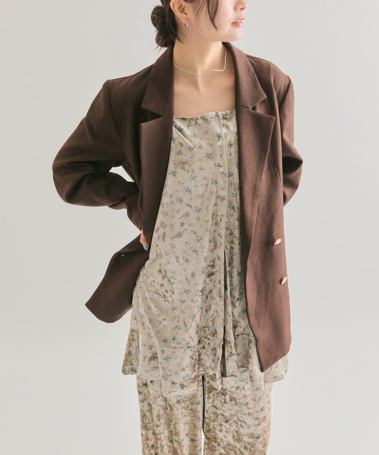 絲絨面料富有光澤感,搭配成套穿著非常帥氣。