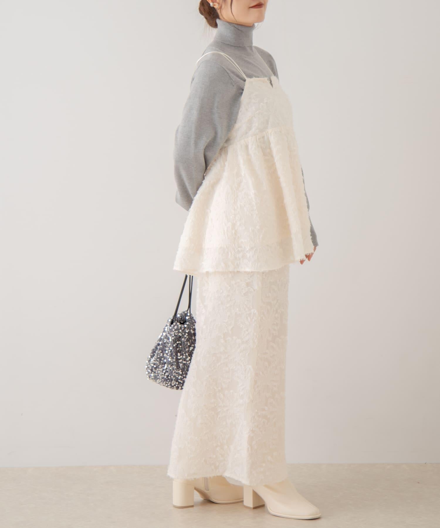 此款單品可搭配同材質的吊帶上衣,打造套裝造型。