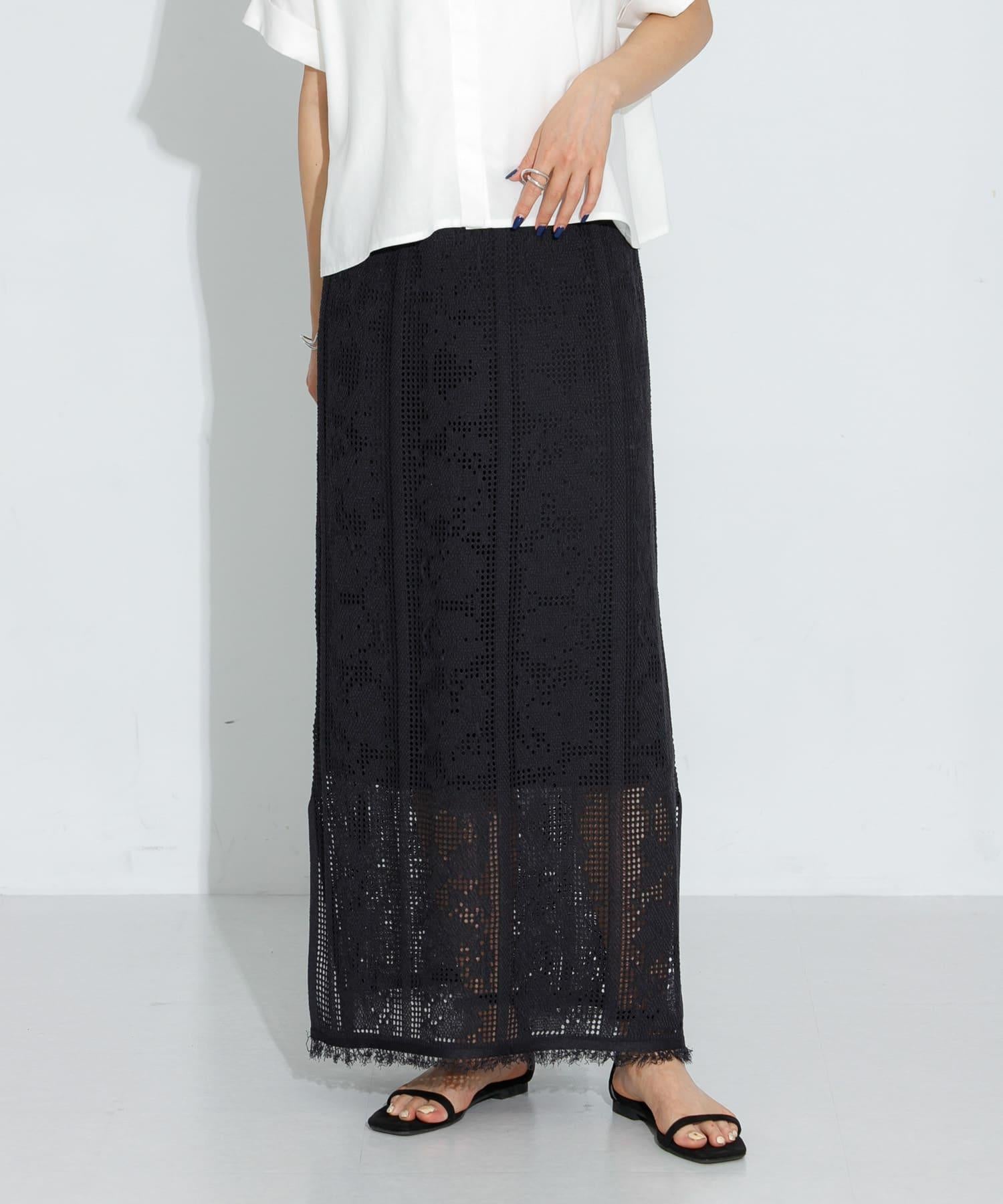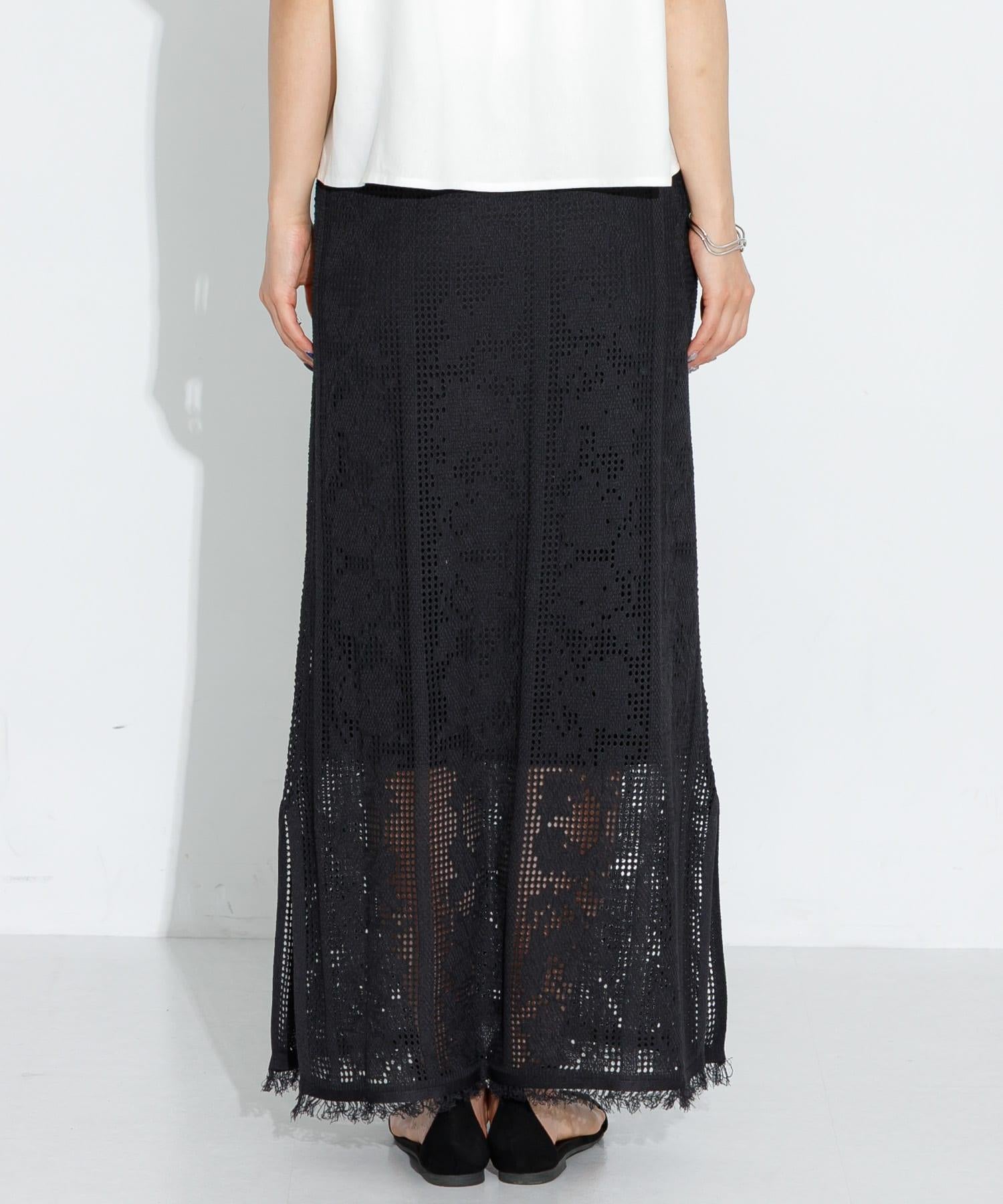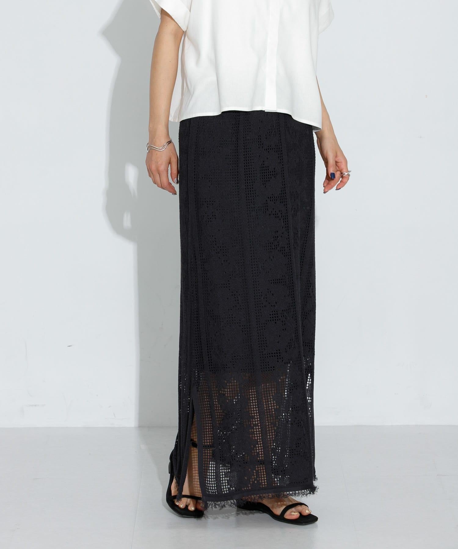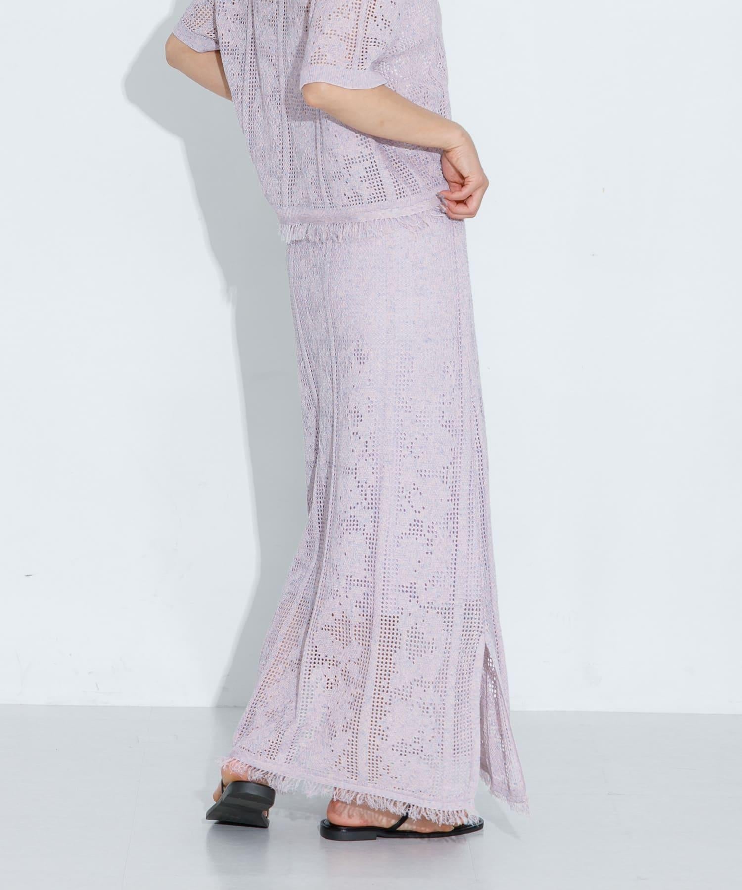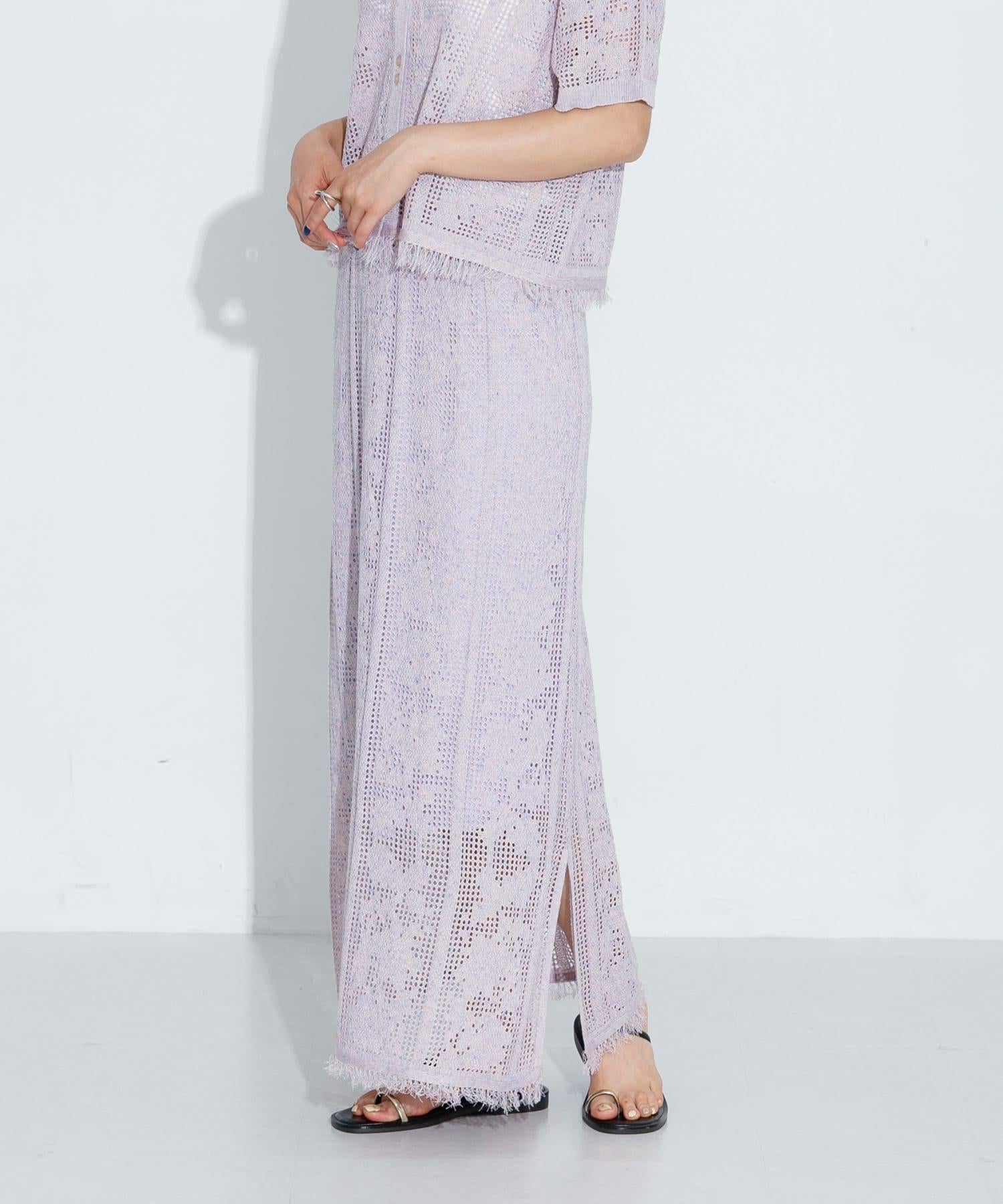 因為是有設計感的單品,所以只需搭配一件簡單的上衣,就能展現夏日風情 ◎可與同材質的針織衫(LAA5-22R005 花朵網眼夏日針織衫)搭配穿搭。