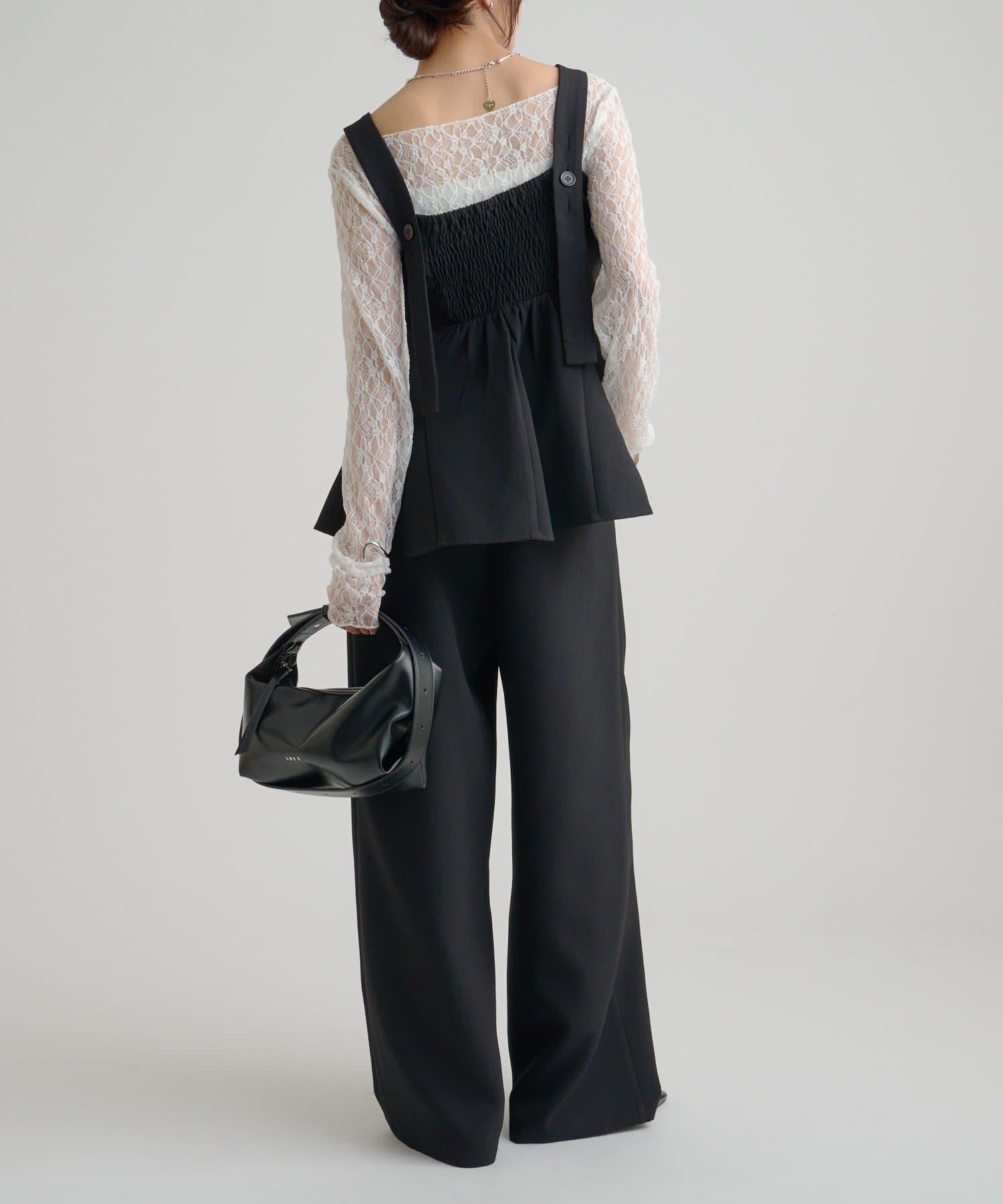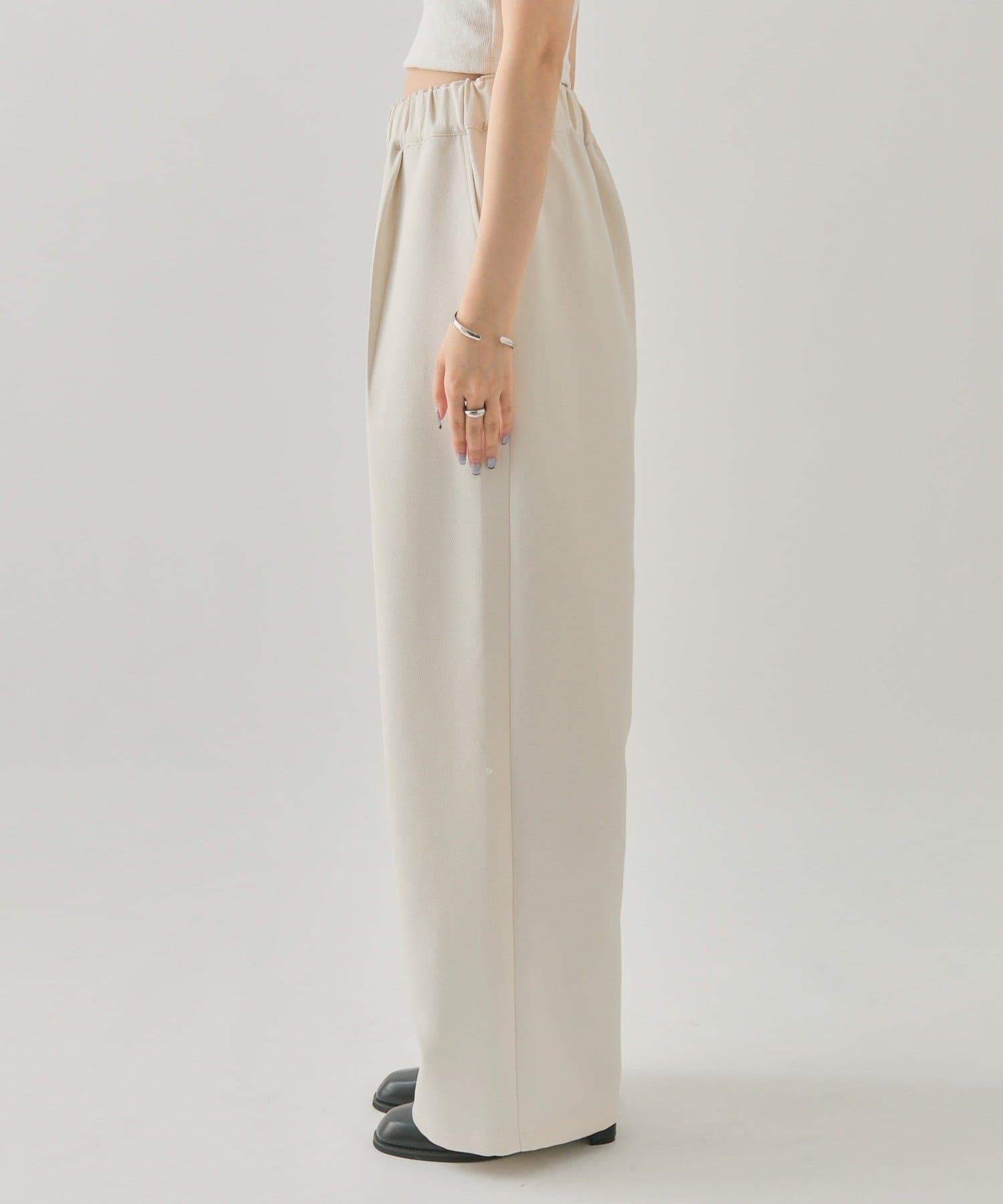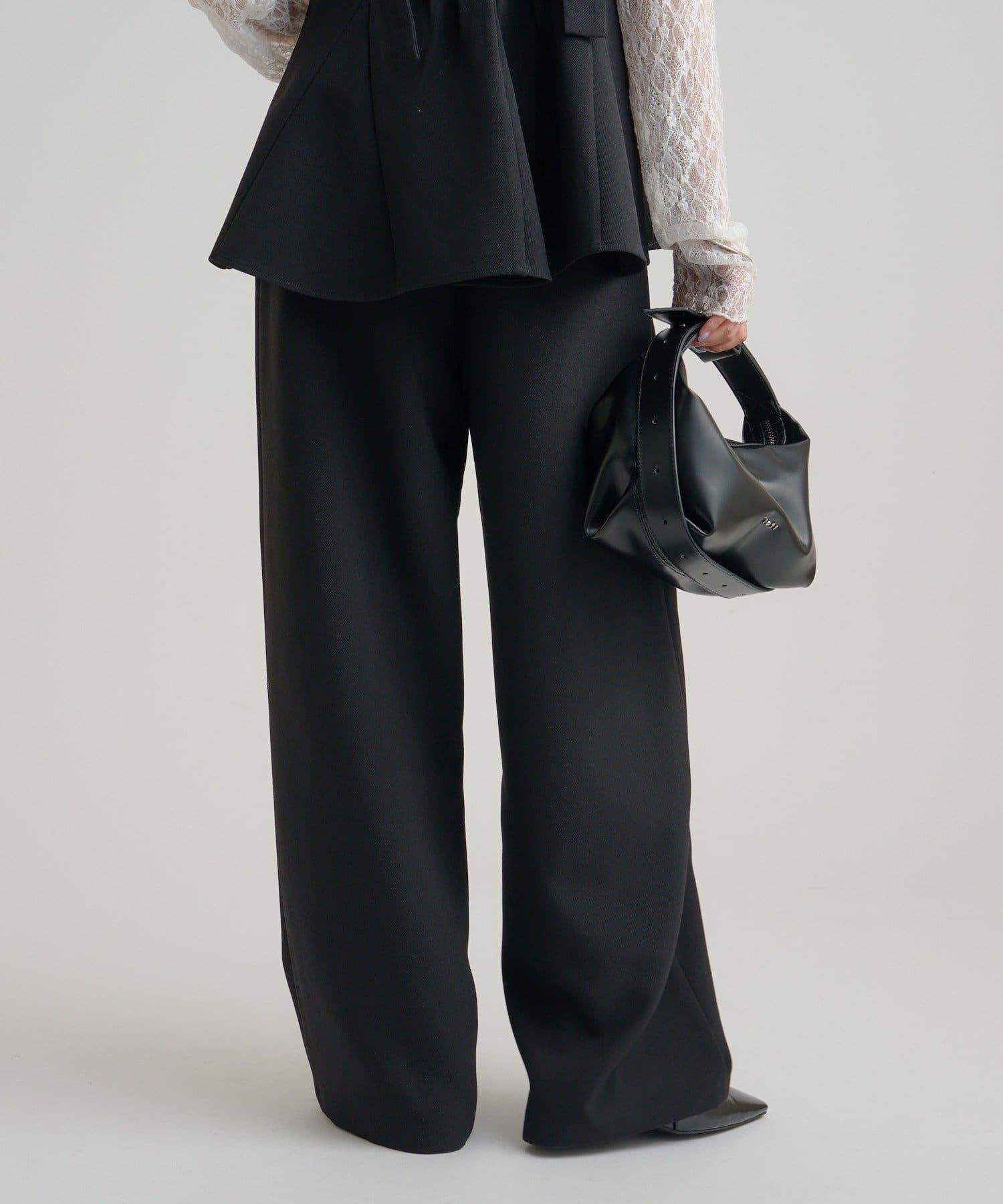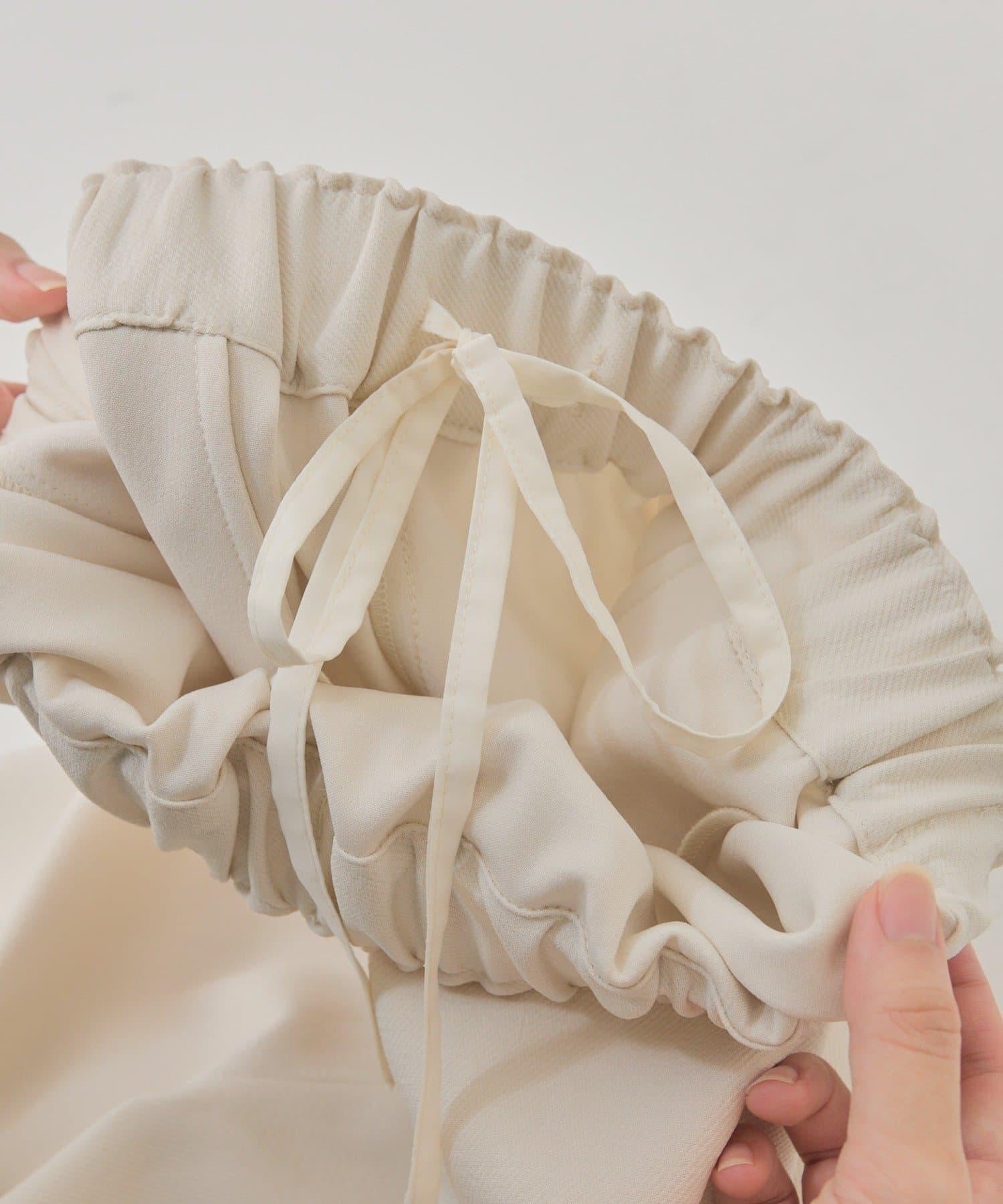 套裝下裝的輪廓寬鬆。腰部有鬆緊帶,可以用繩子收緊,穿起來毫無壓力。