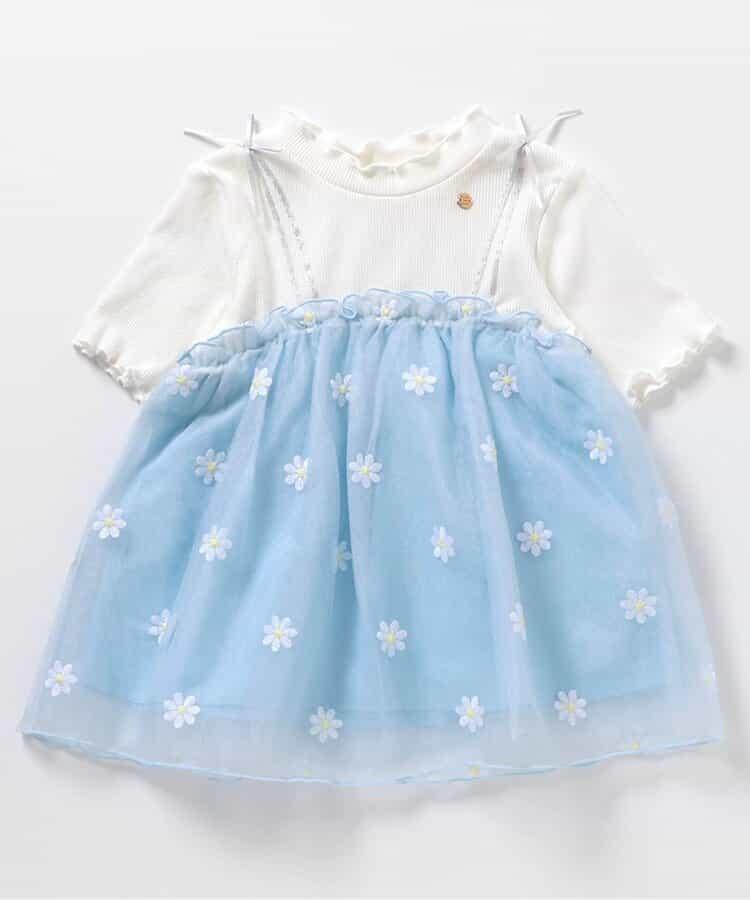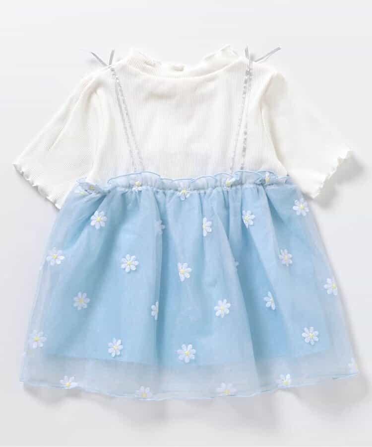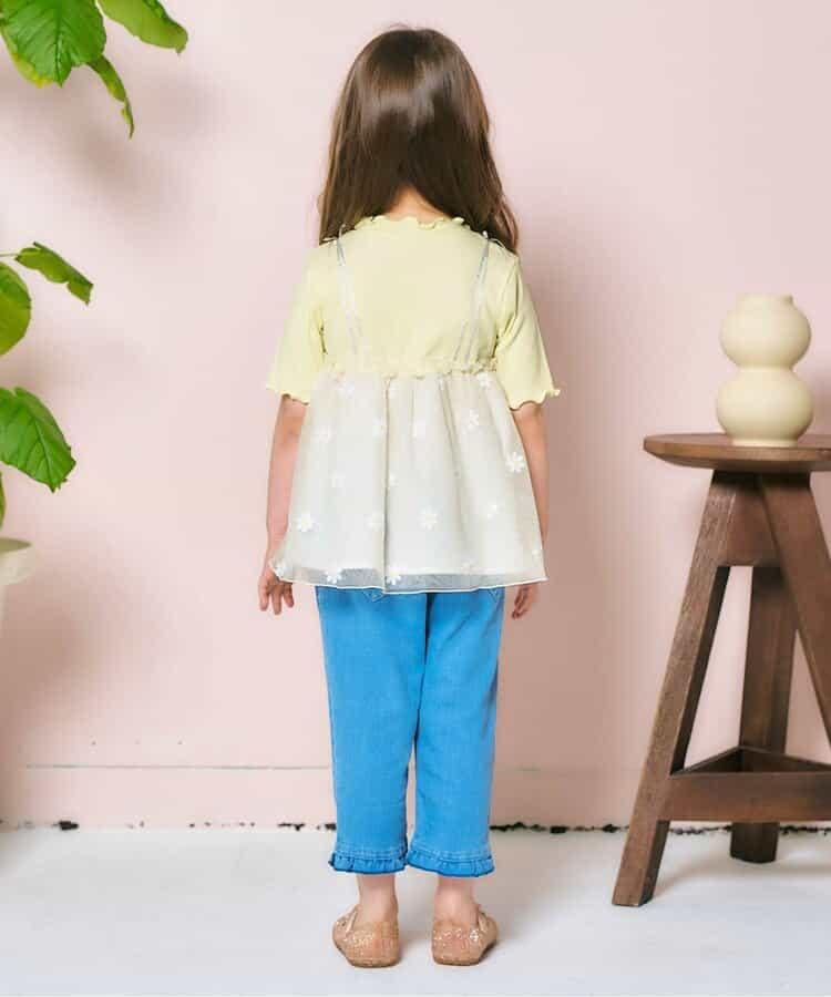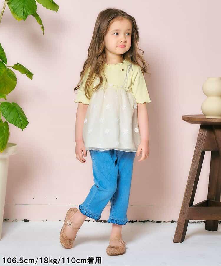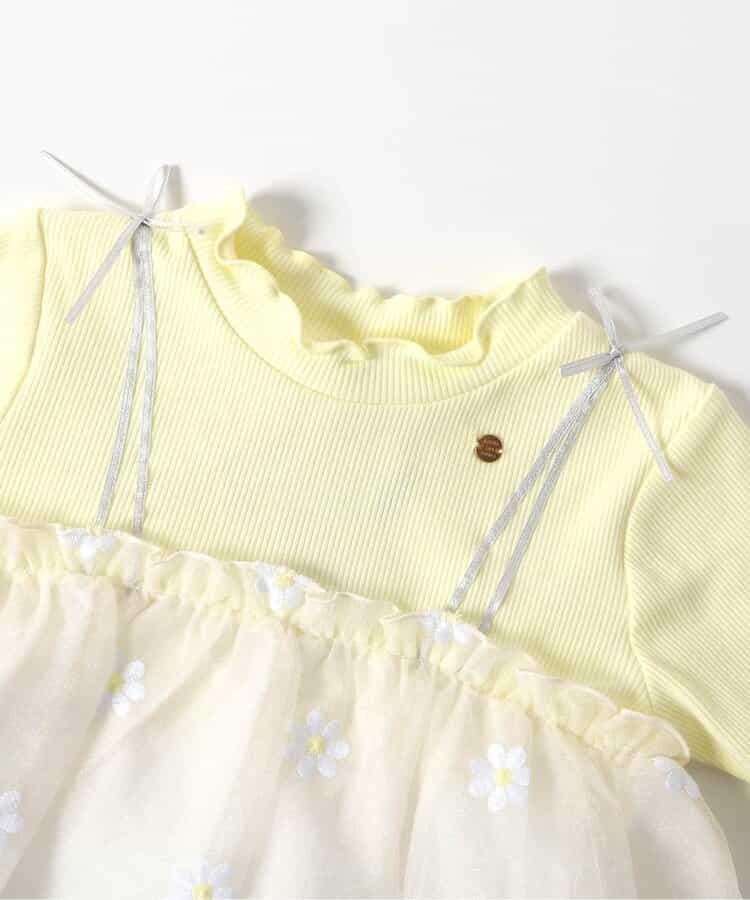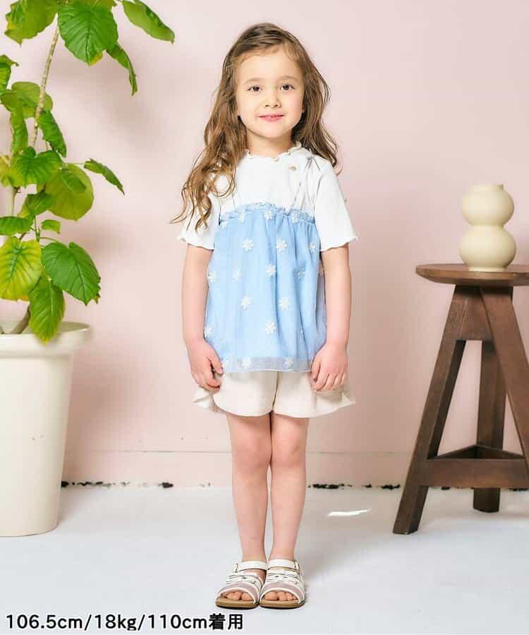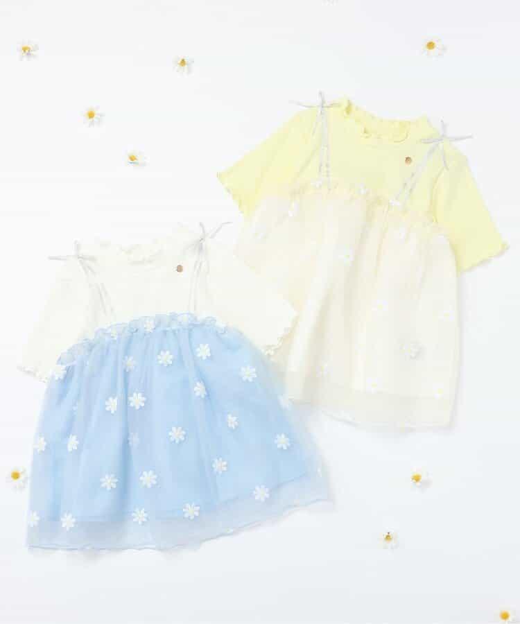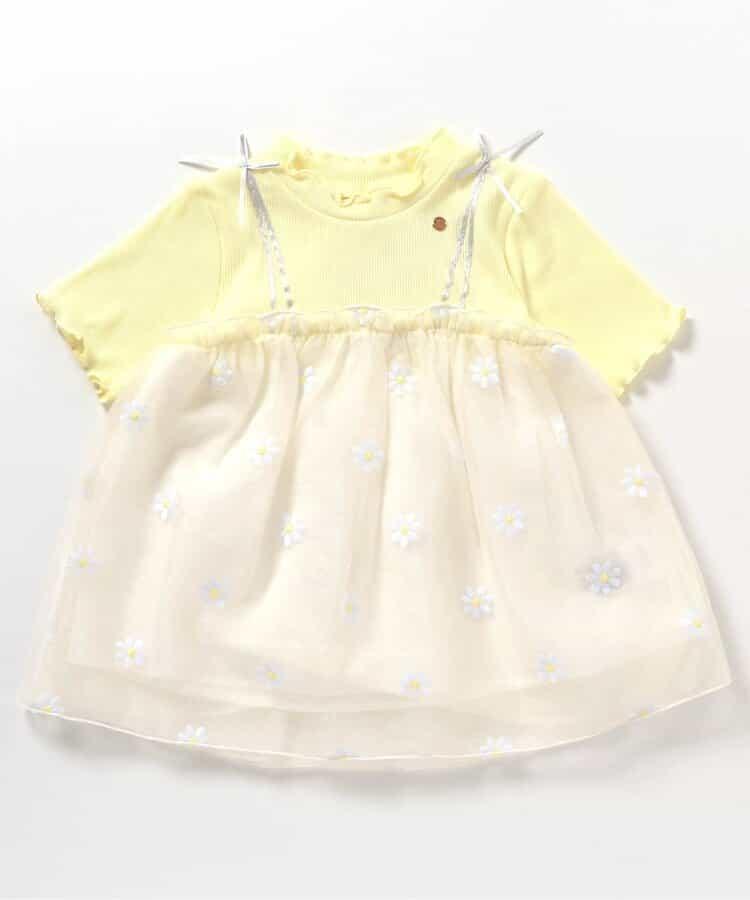 apres les cours 短袖 T 恤 "花朵刺繡對接薄紗上衣 "是一款時尚單品,為自然風格增添了微妙的設計感*。