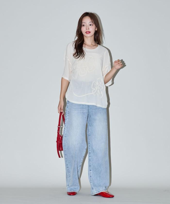透明感和花朵圖案賦予了它甜美的設計感,因此可以搭配牛仔褲、運動褲和其他類似男裝的單品,打造出均衡的造型。
