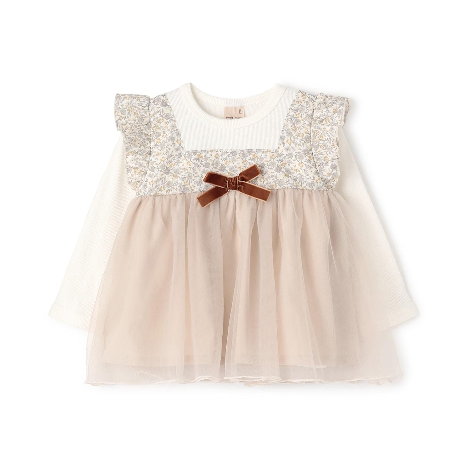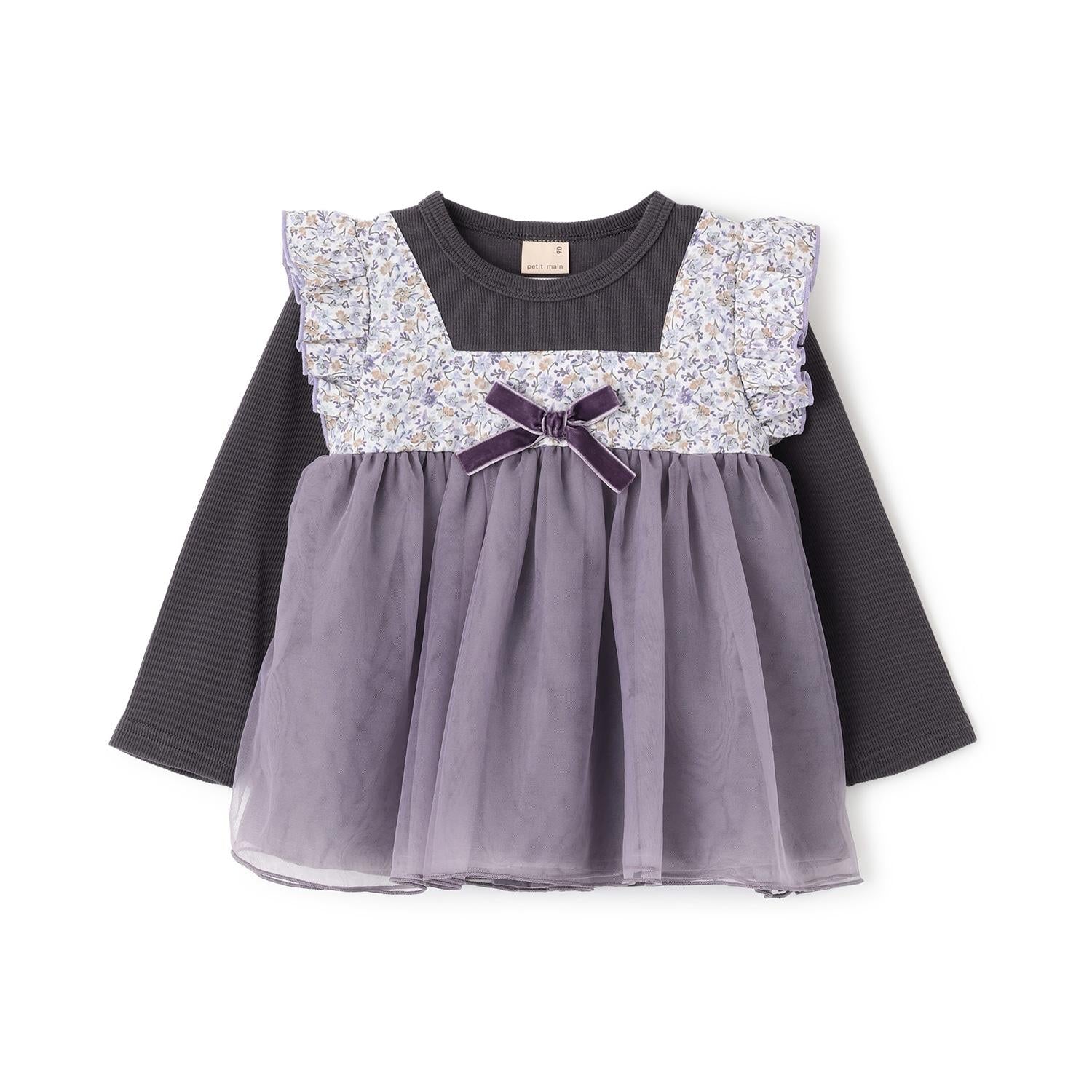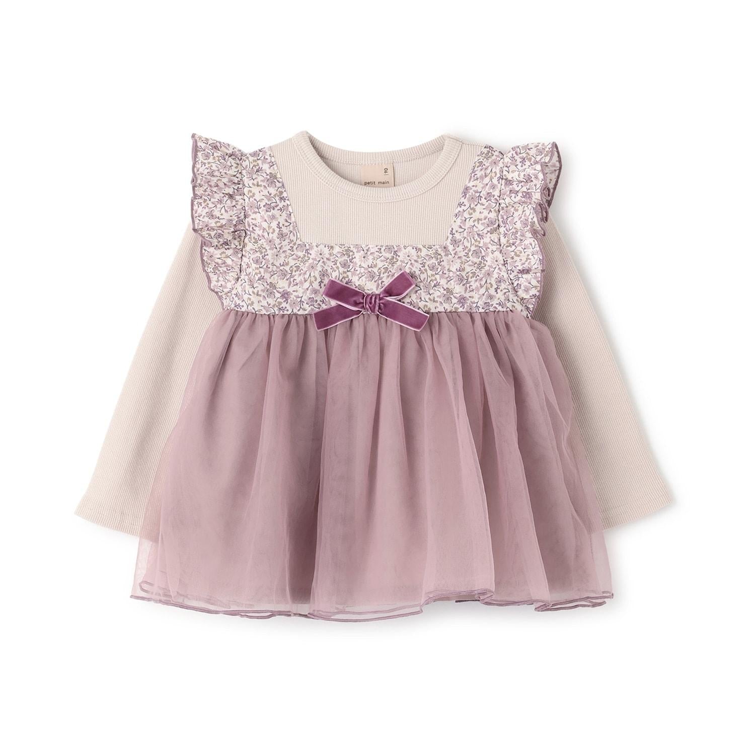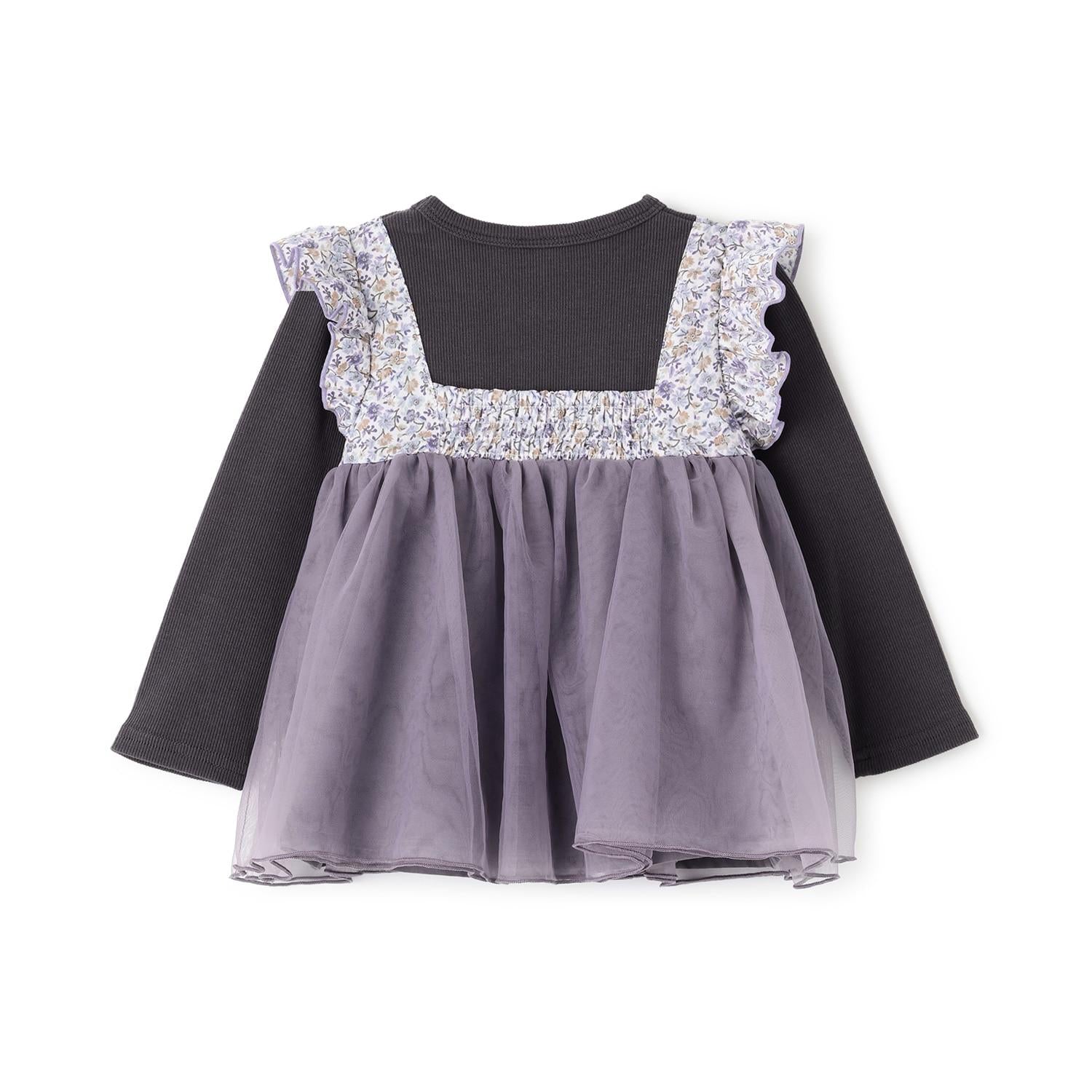 花朵圖案和薄紗面料對接的多層款式 T 恤。