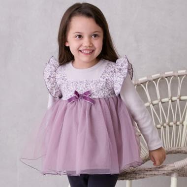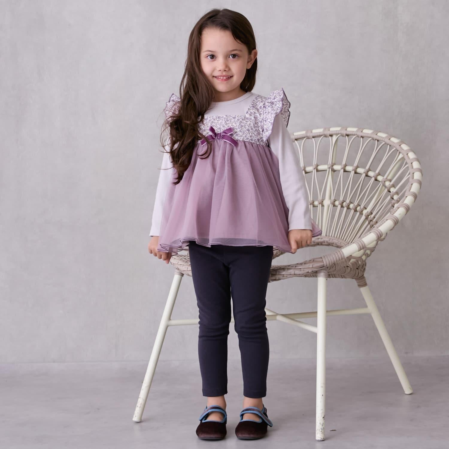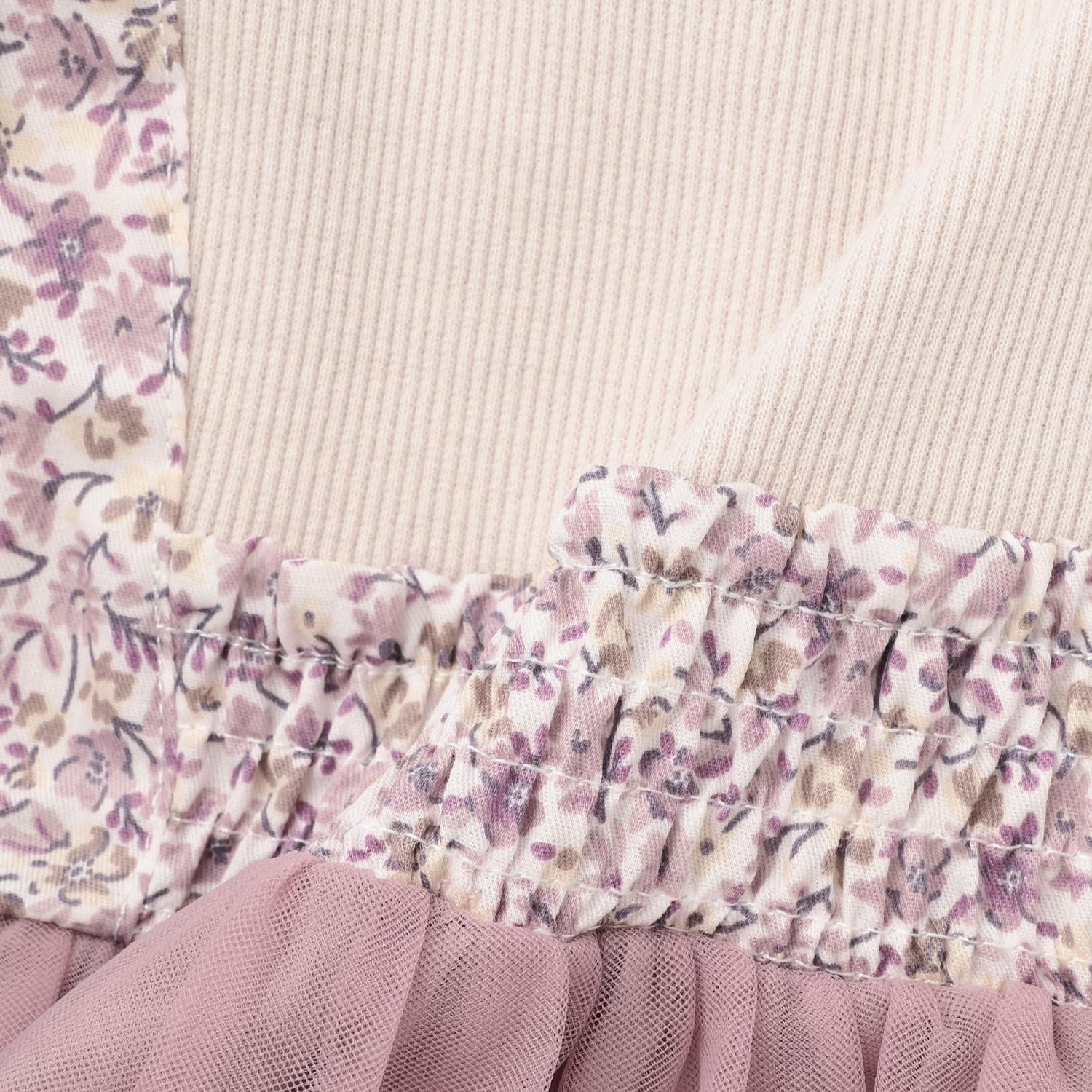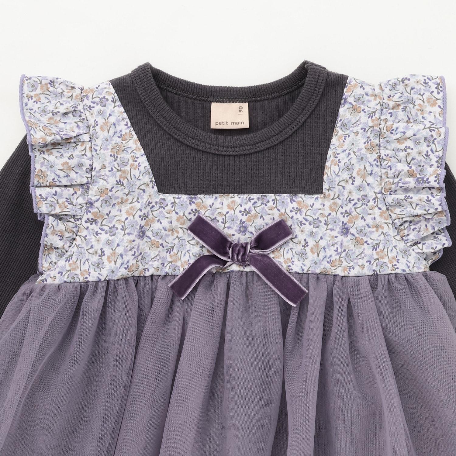 花朵圖案和薄紗面料對接的多層款式 T 恤。