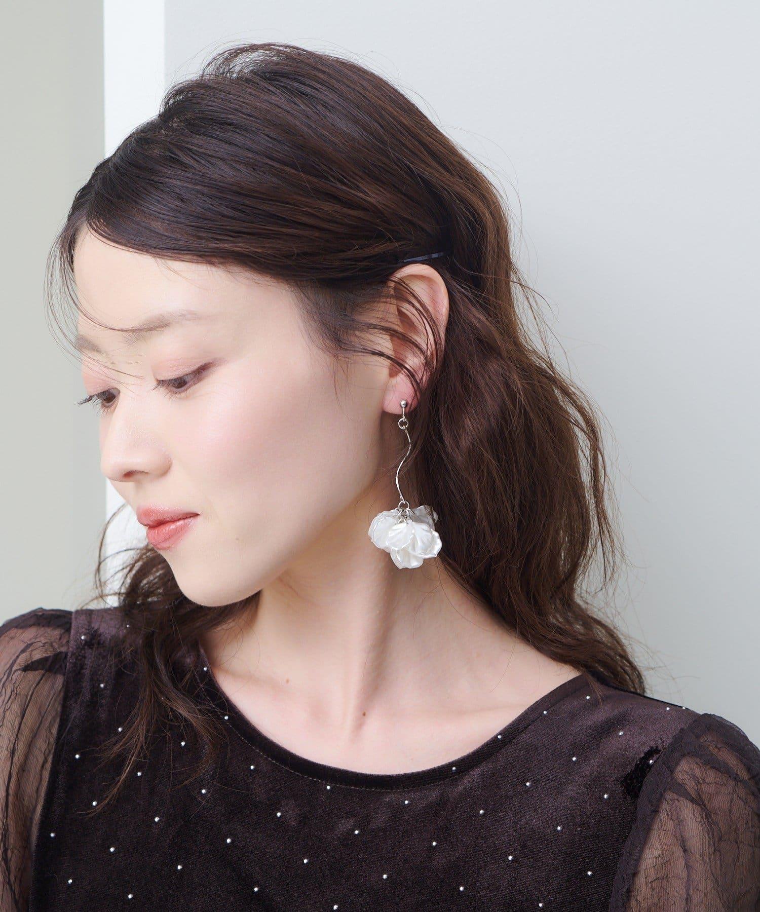 精緻的花瓣一片片搖曳,形成立體花朵圖案耳環。