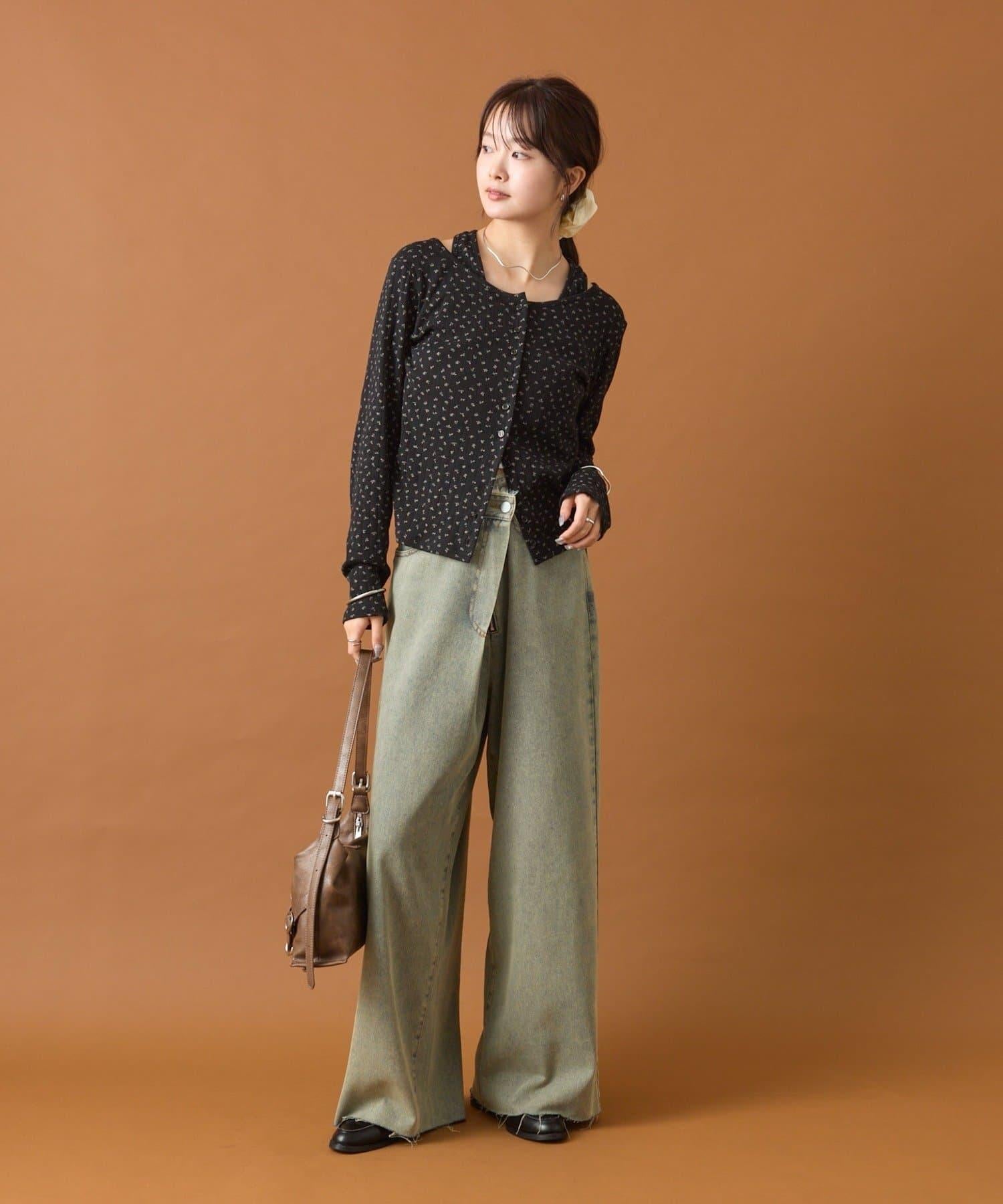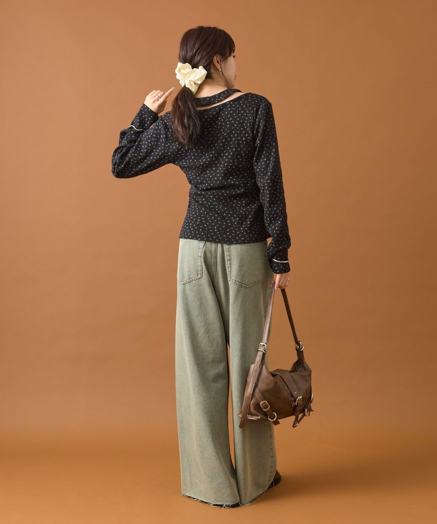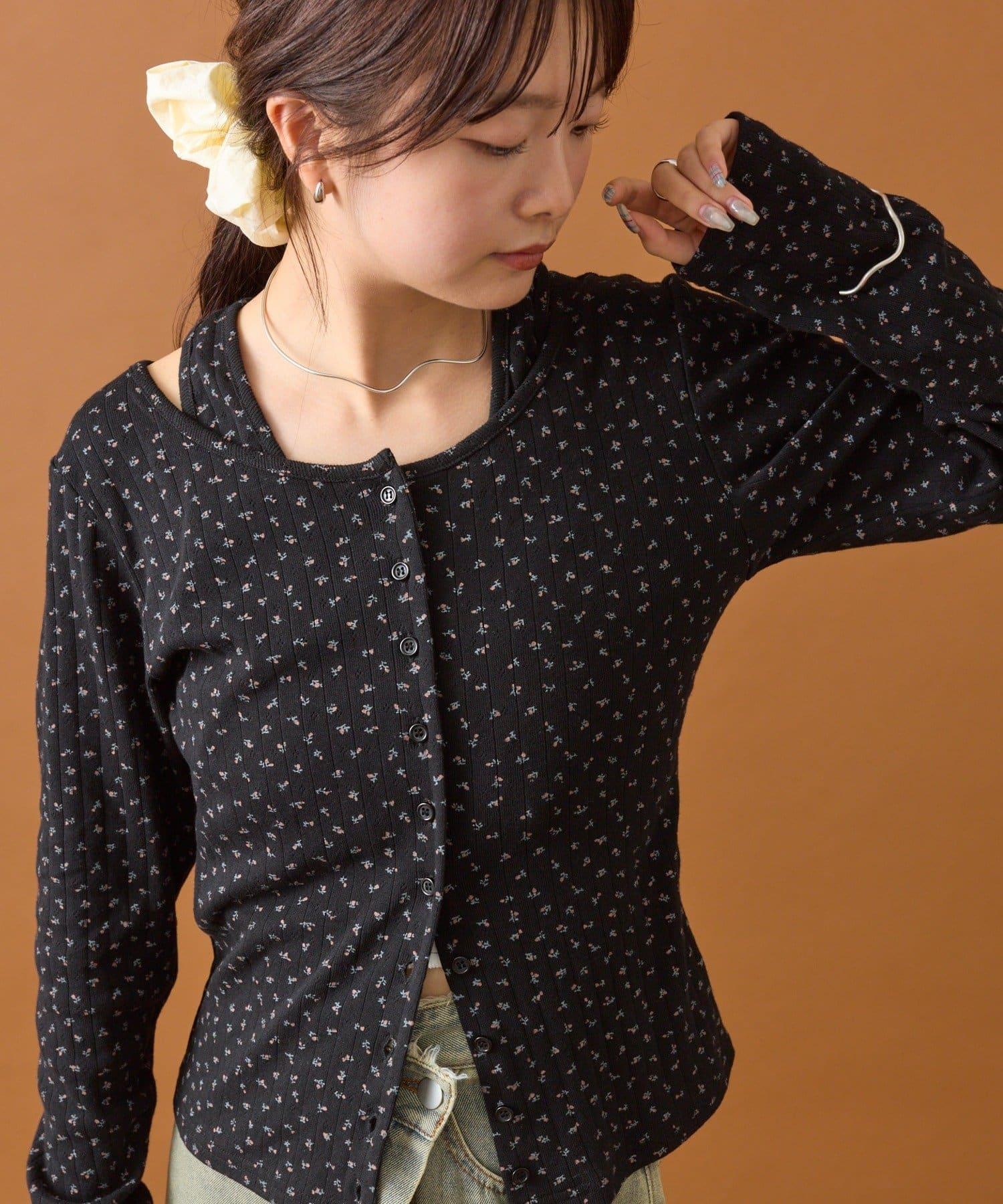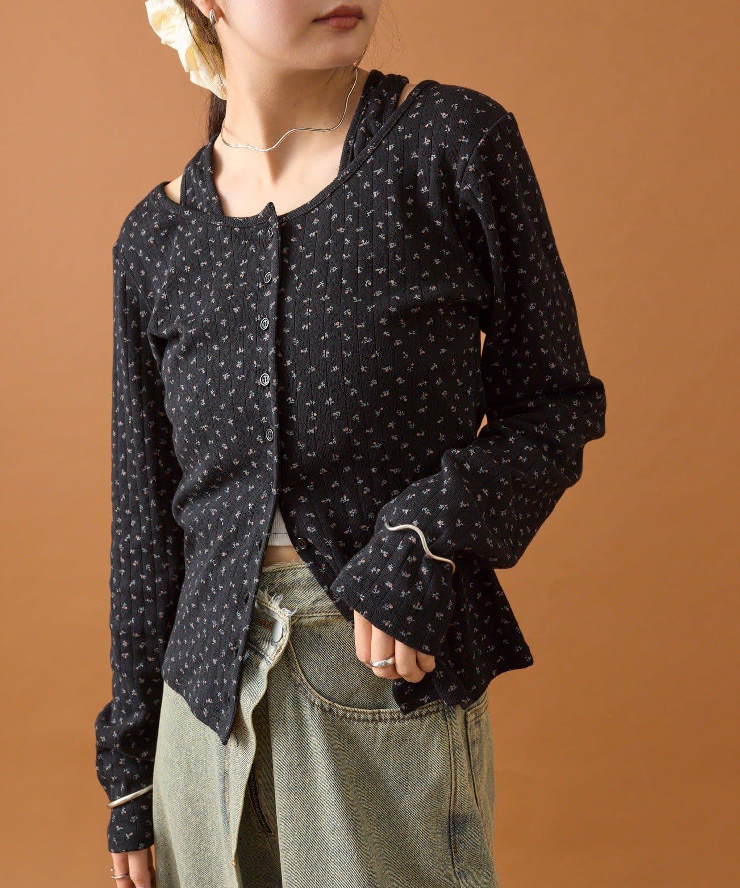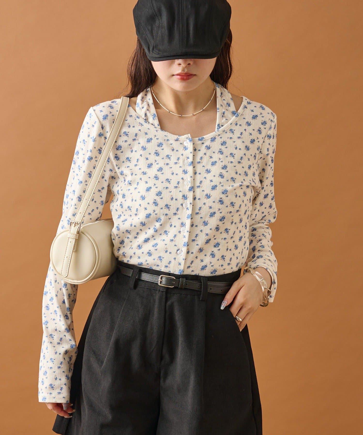 可愛的花朵圖案和露領設計給人寬鬆的感覺。