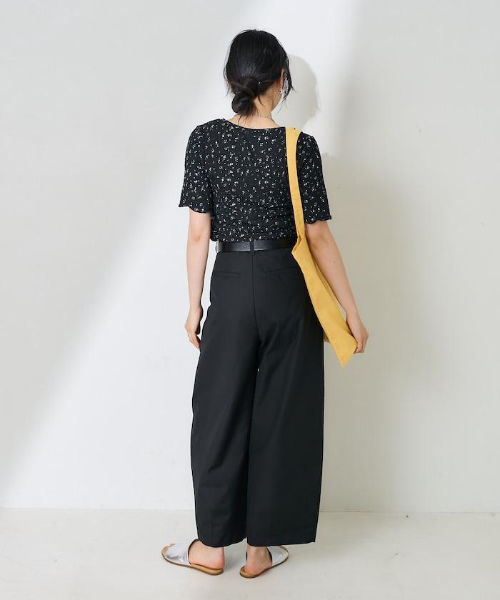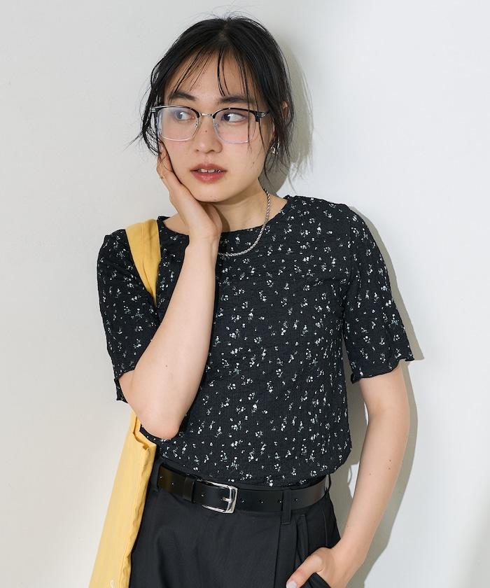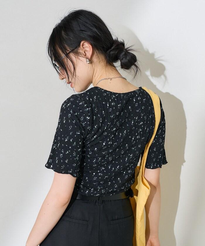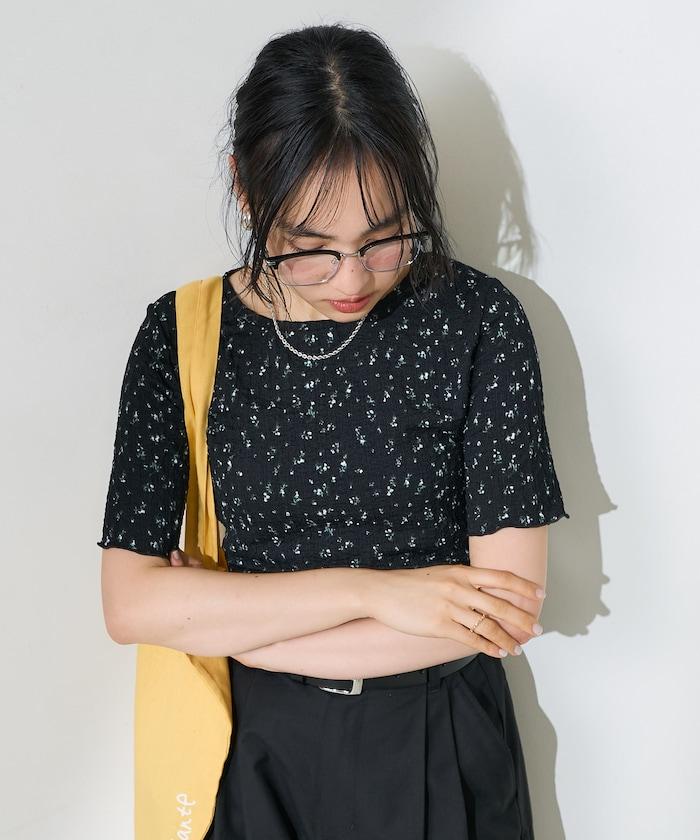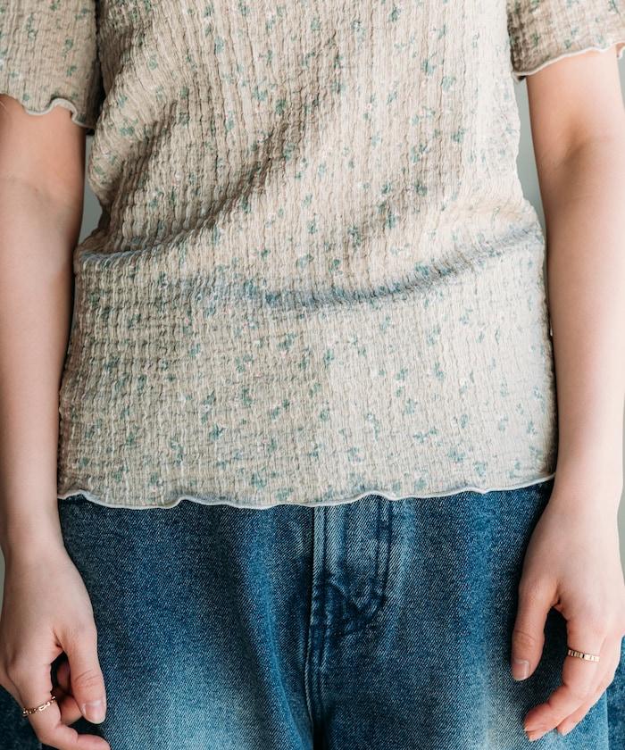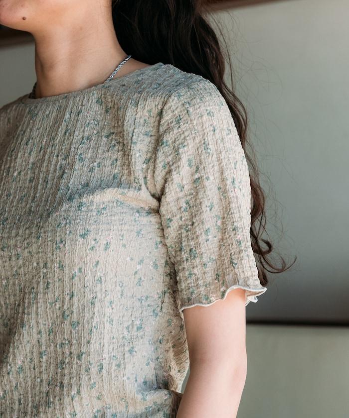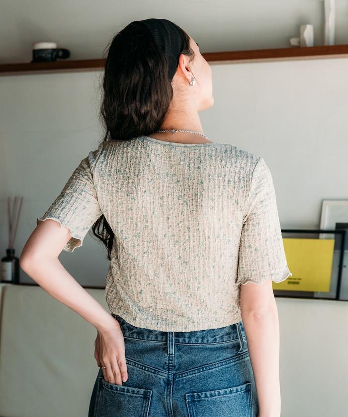 剪裁縫製的短袖上衣,印有原創花卉圖案。