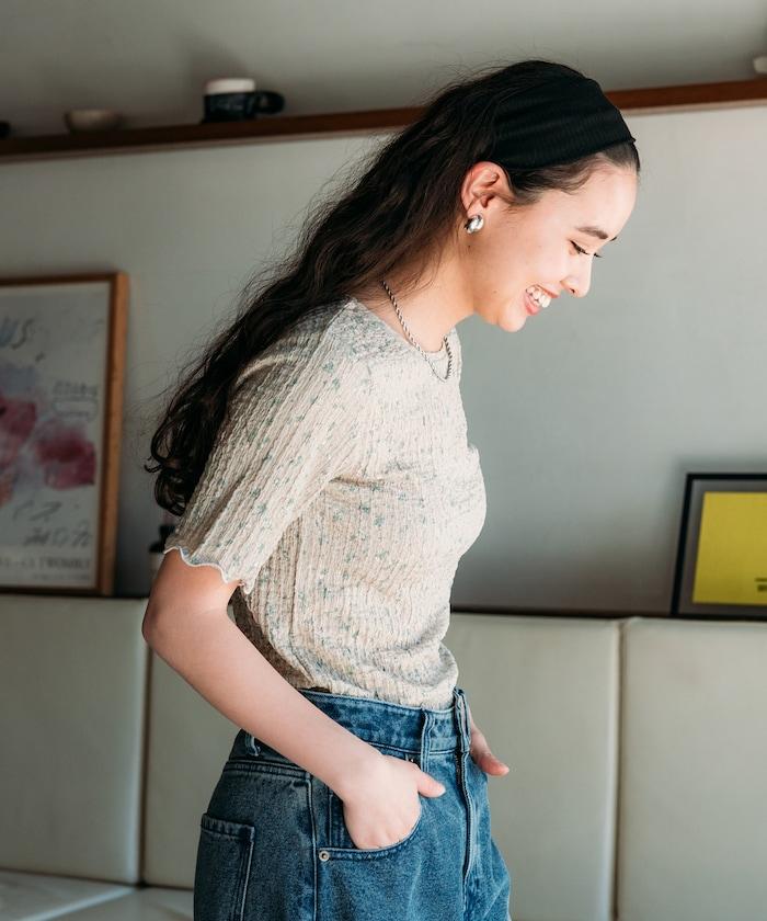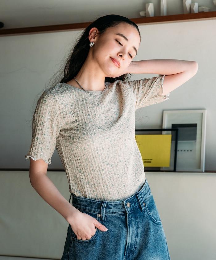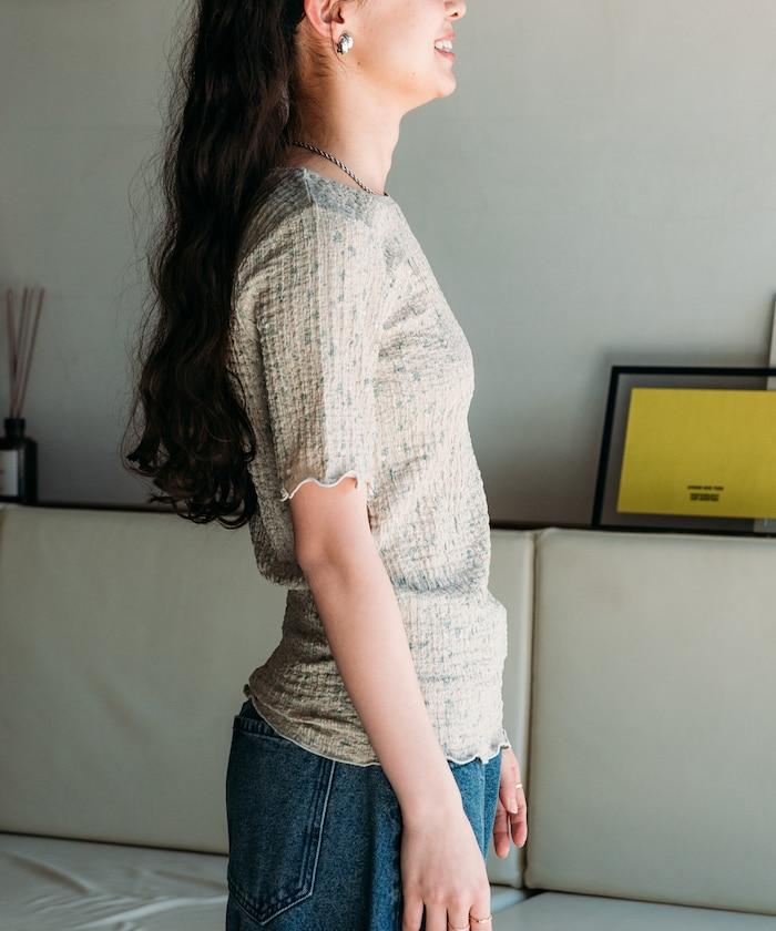 花紋 彈力 短袖上衣